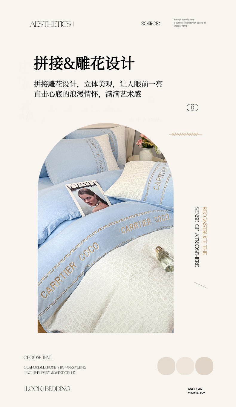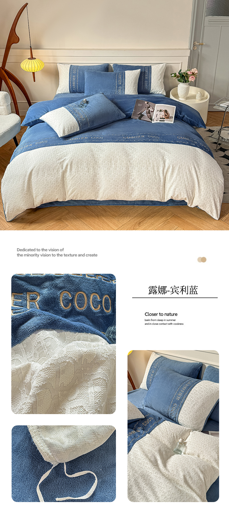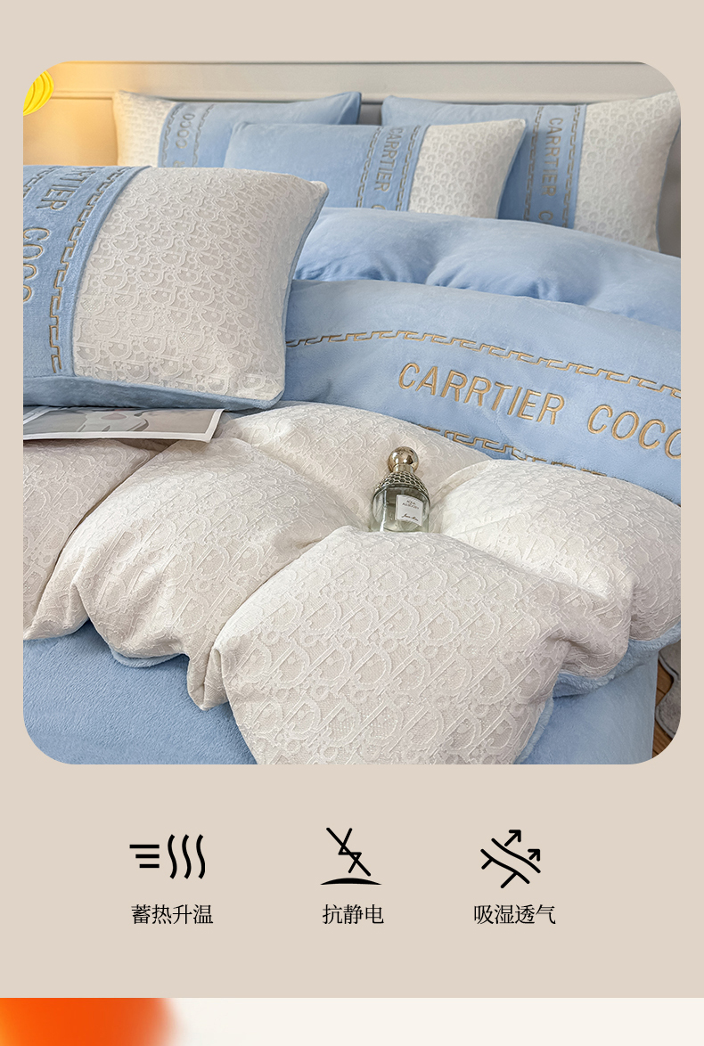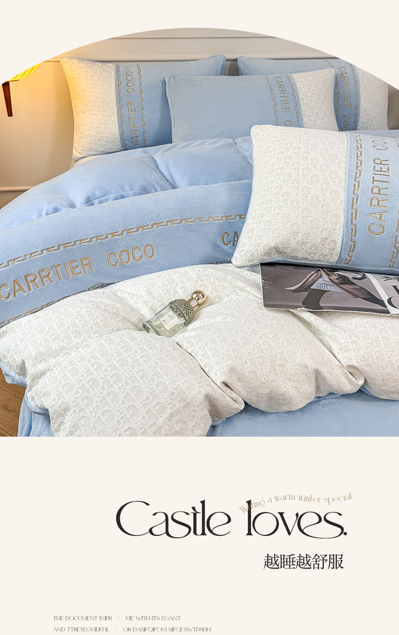 当前位置: 91家纺网 > 商品网购 > 床品套件 > 四件套 > 牛奶绒四件套 > 灰鲸 2025新款牛奶绒拼接刺绣雕花套件-露娜 露娜-繁星蓝