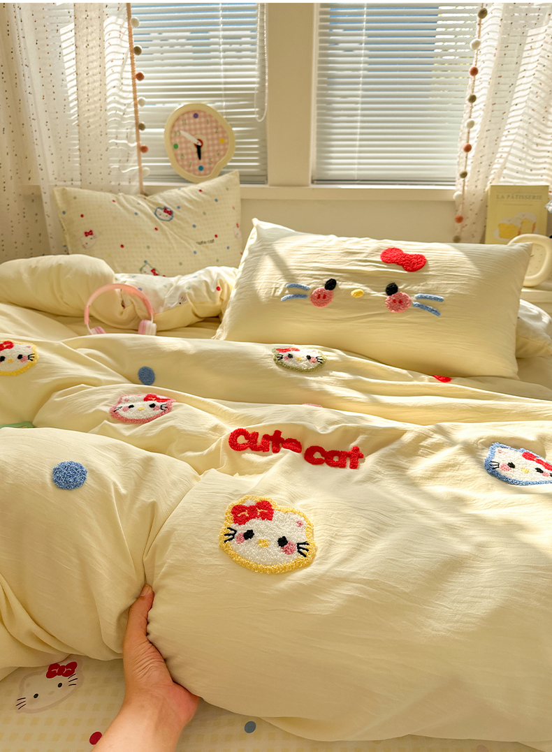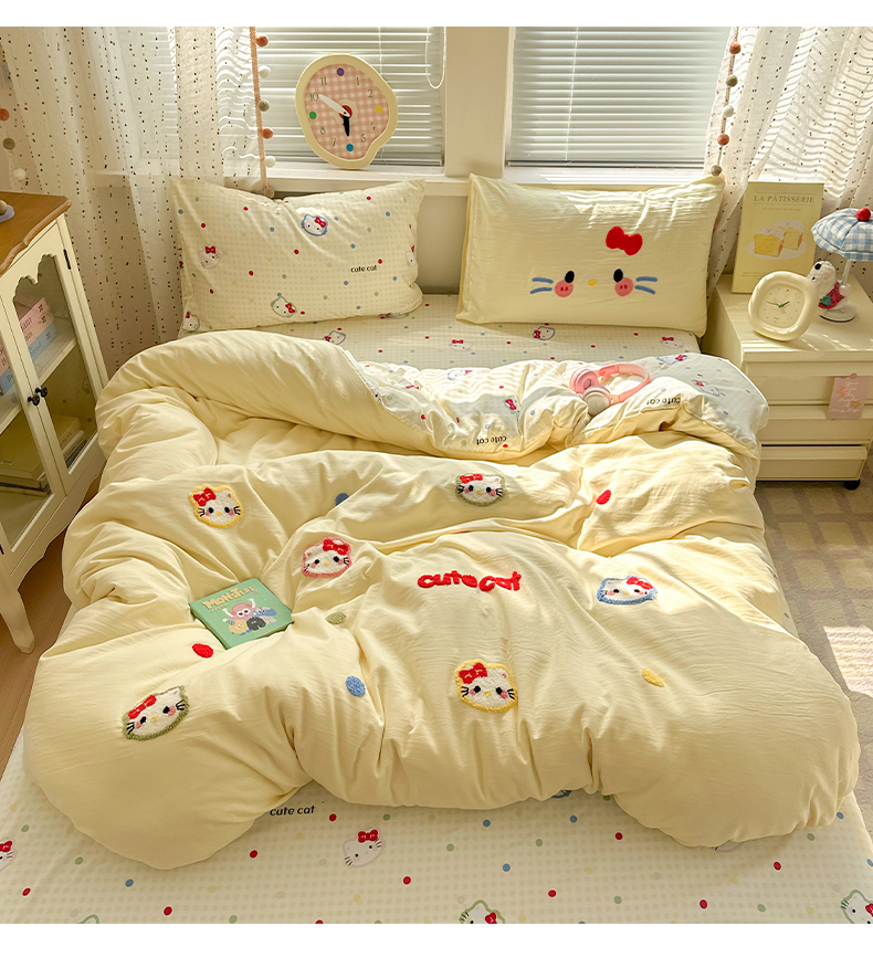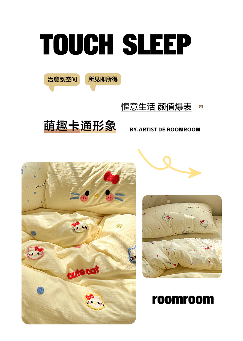 当前位置: 91家纺网 > 商品网购 > 床品套件 > 四件套 > 毛巾绣四件套 > 卡迪熊家纺 2025新款水洗棉毛巾绣可爱猫咪系列 晚安喵-黄