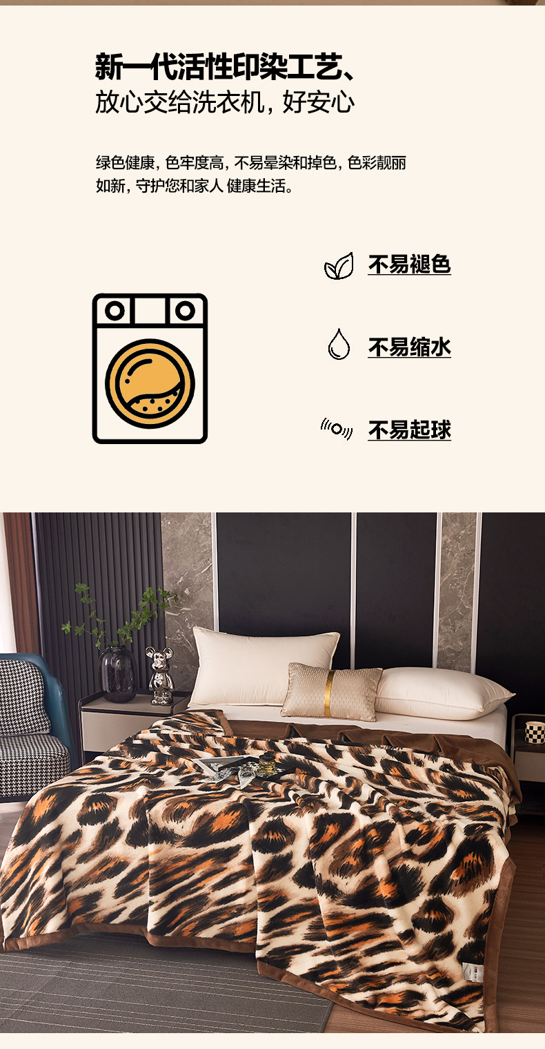 2025新款仿水貂绒兔毛绒雪棉绒云貂绒拉舍尔双层复合毛毯子 美拉德-豹纹灰
