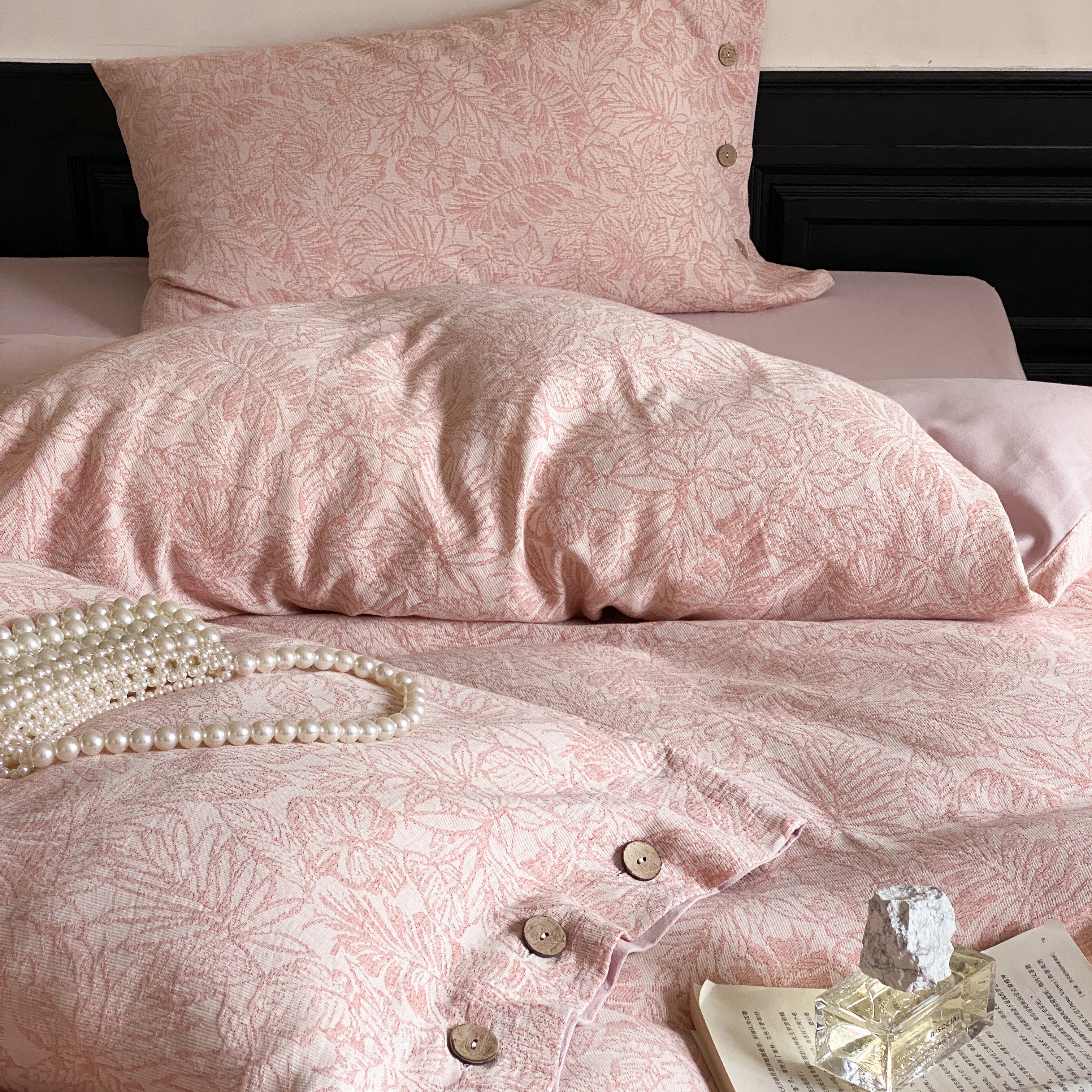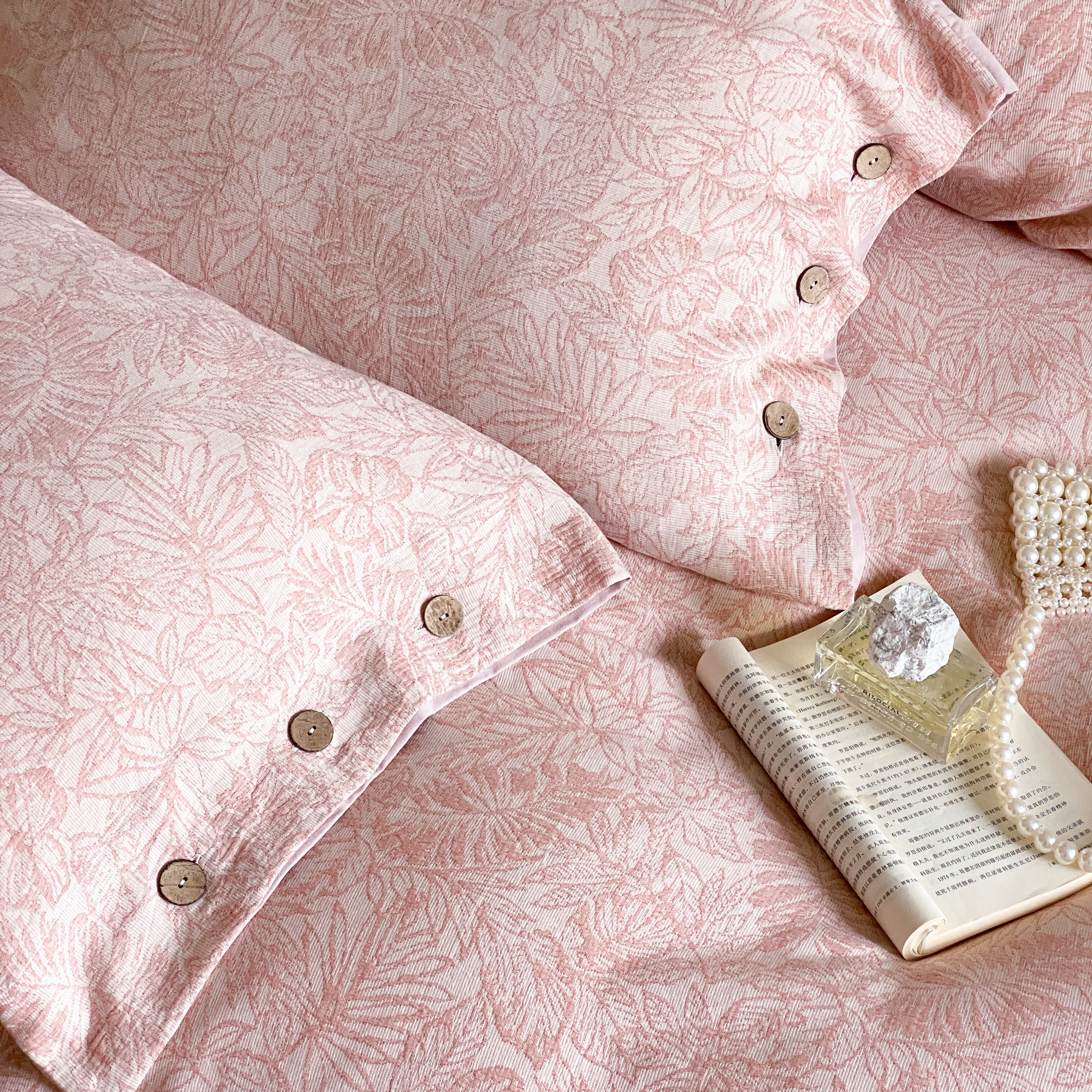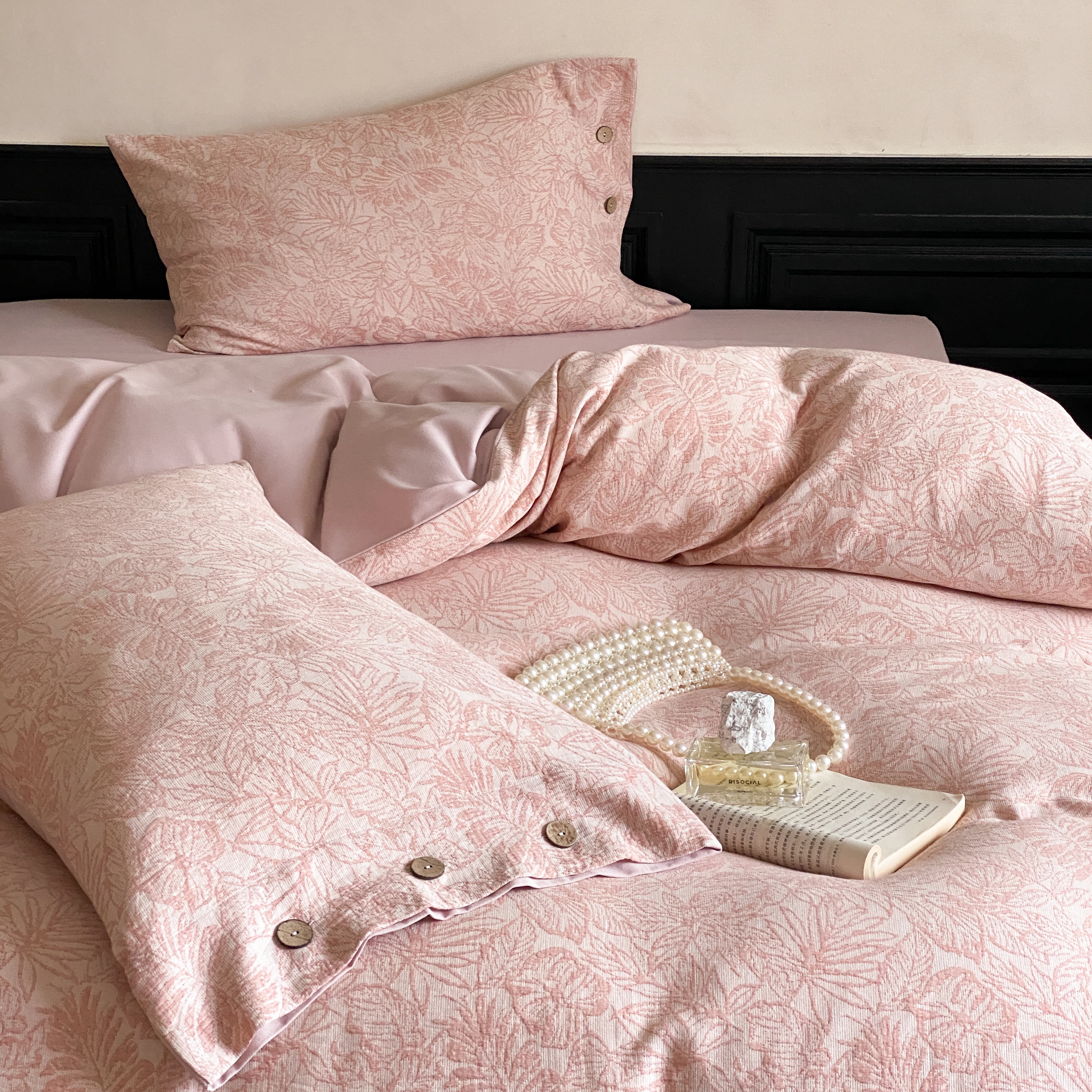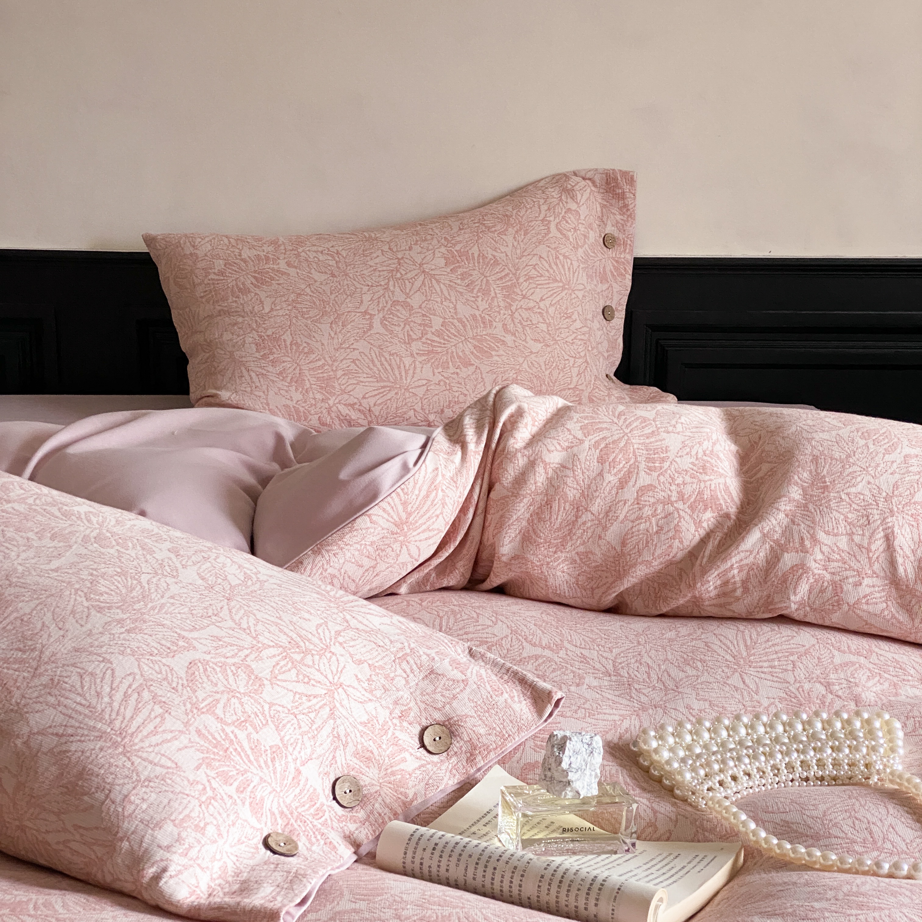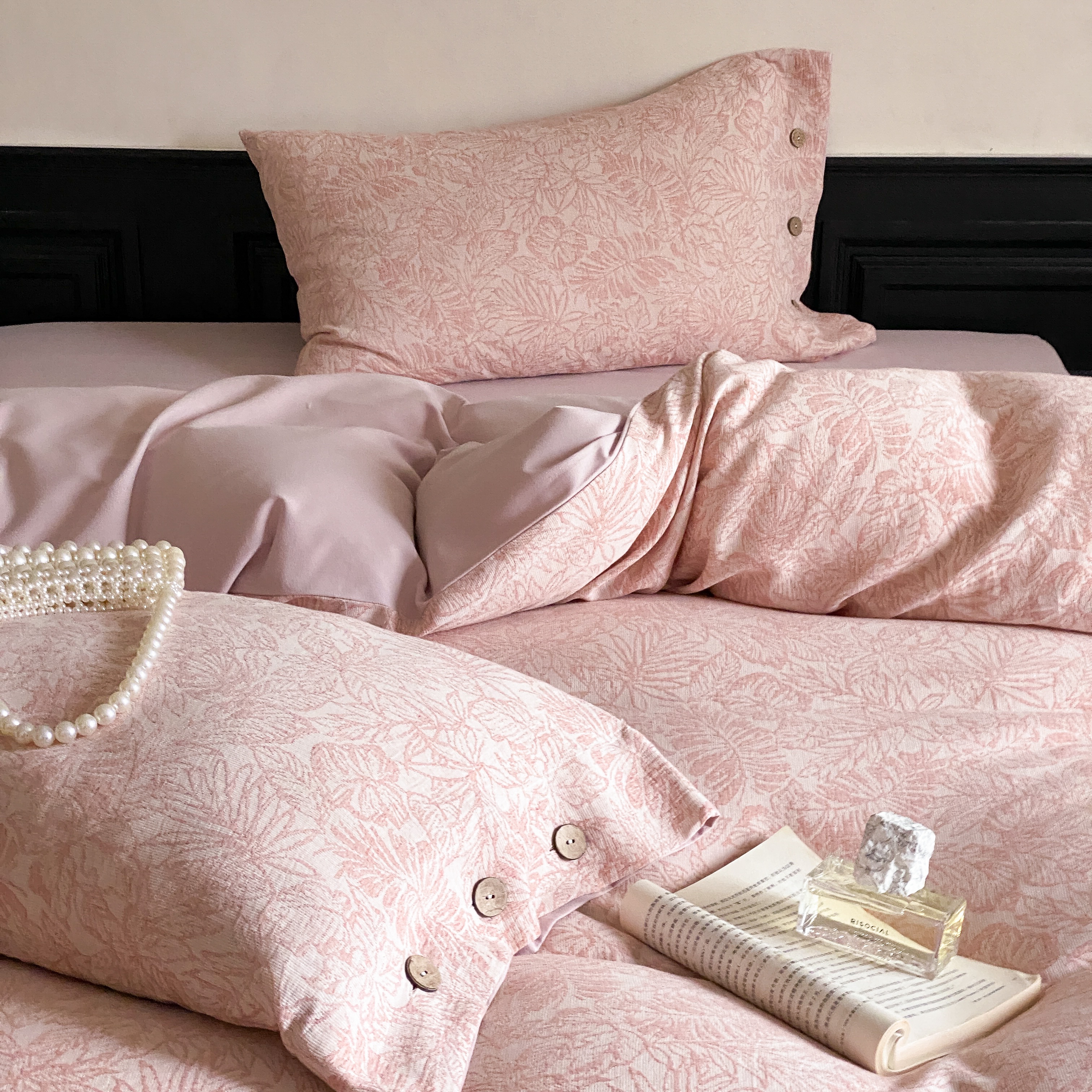 商品名称:旷野 2025新款全棉色织大提花100支磨毛四件套 晚枫林-粉