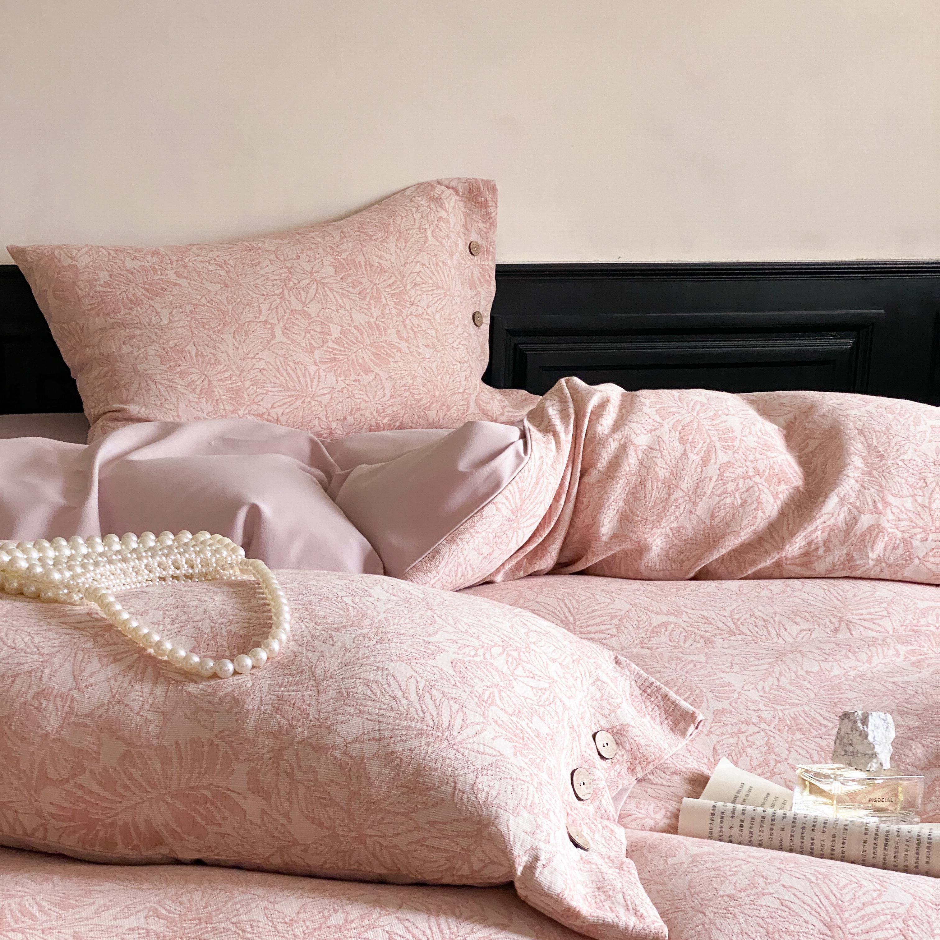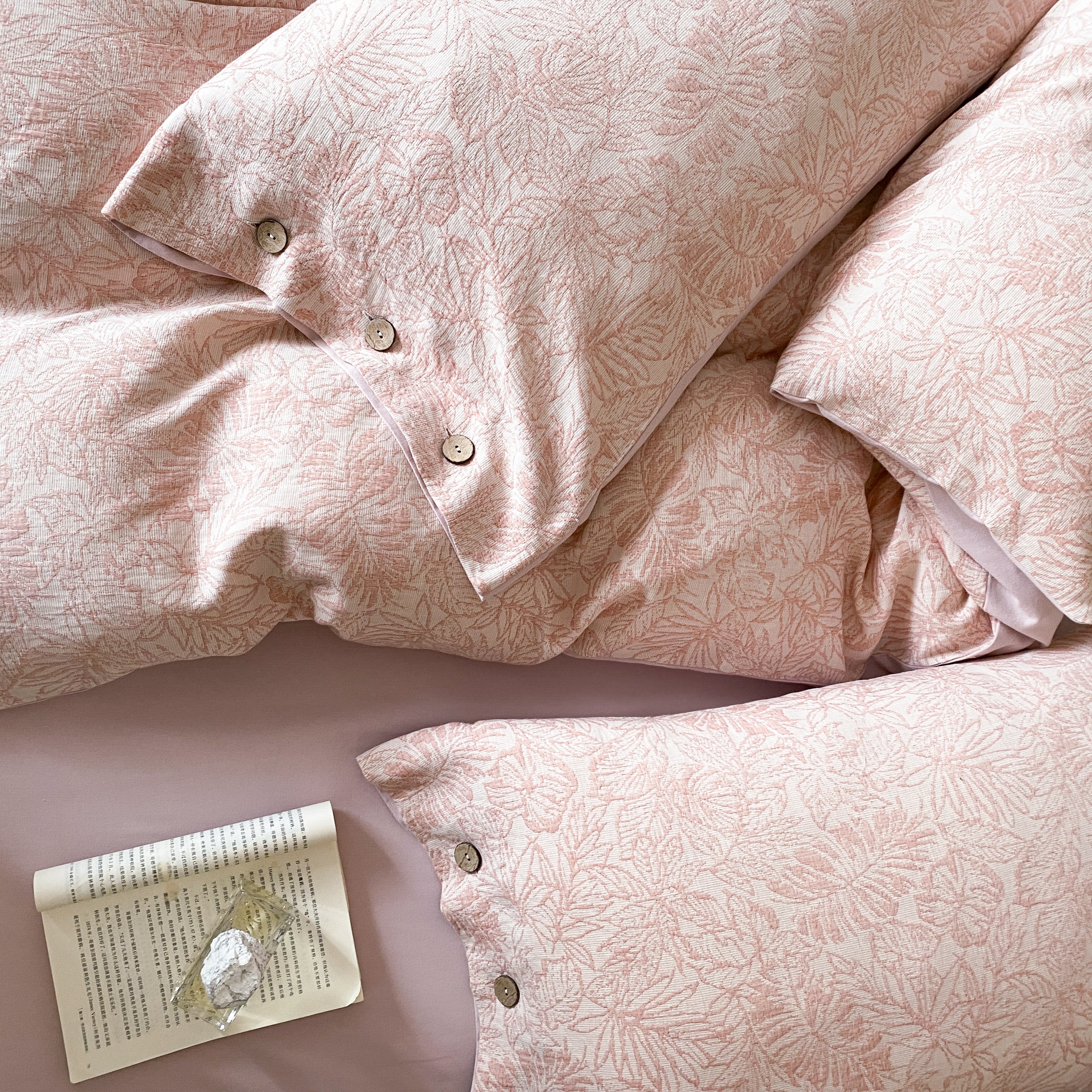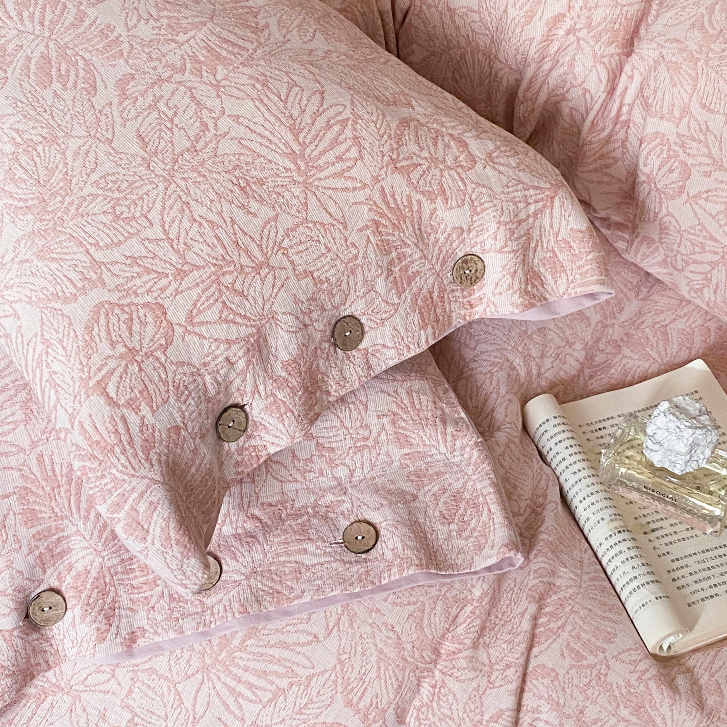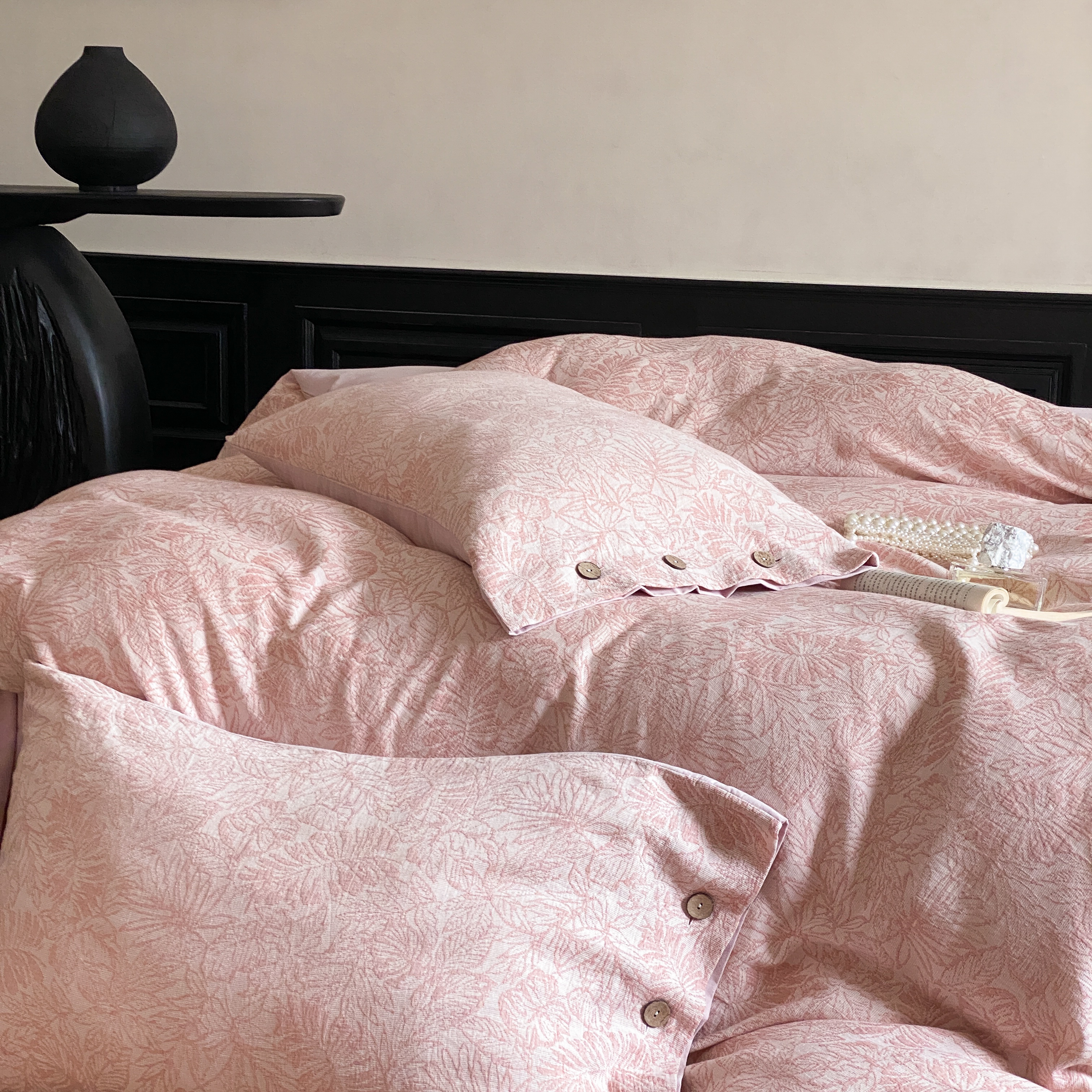 商品名称:旷野 2025新款全棉色织大提花100支磨毛四件套 晚枫林-粉