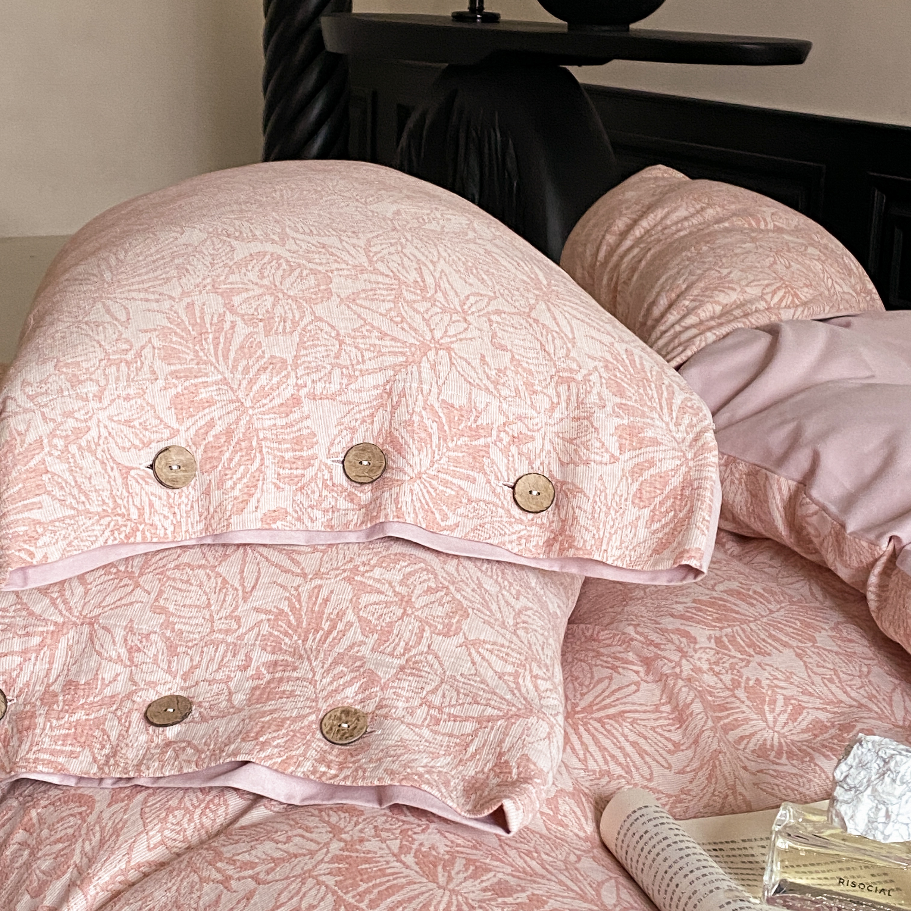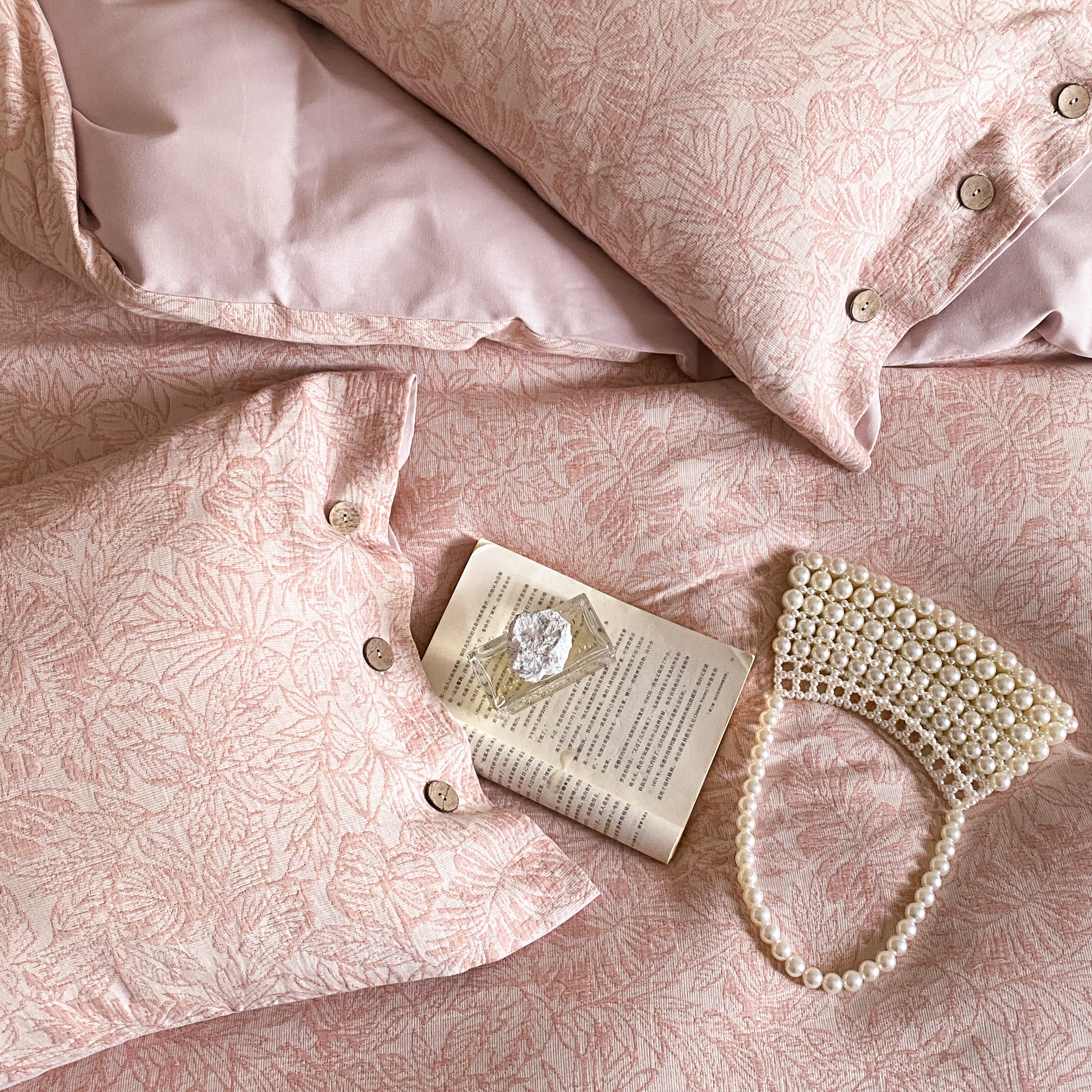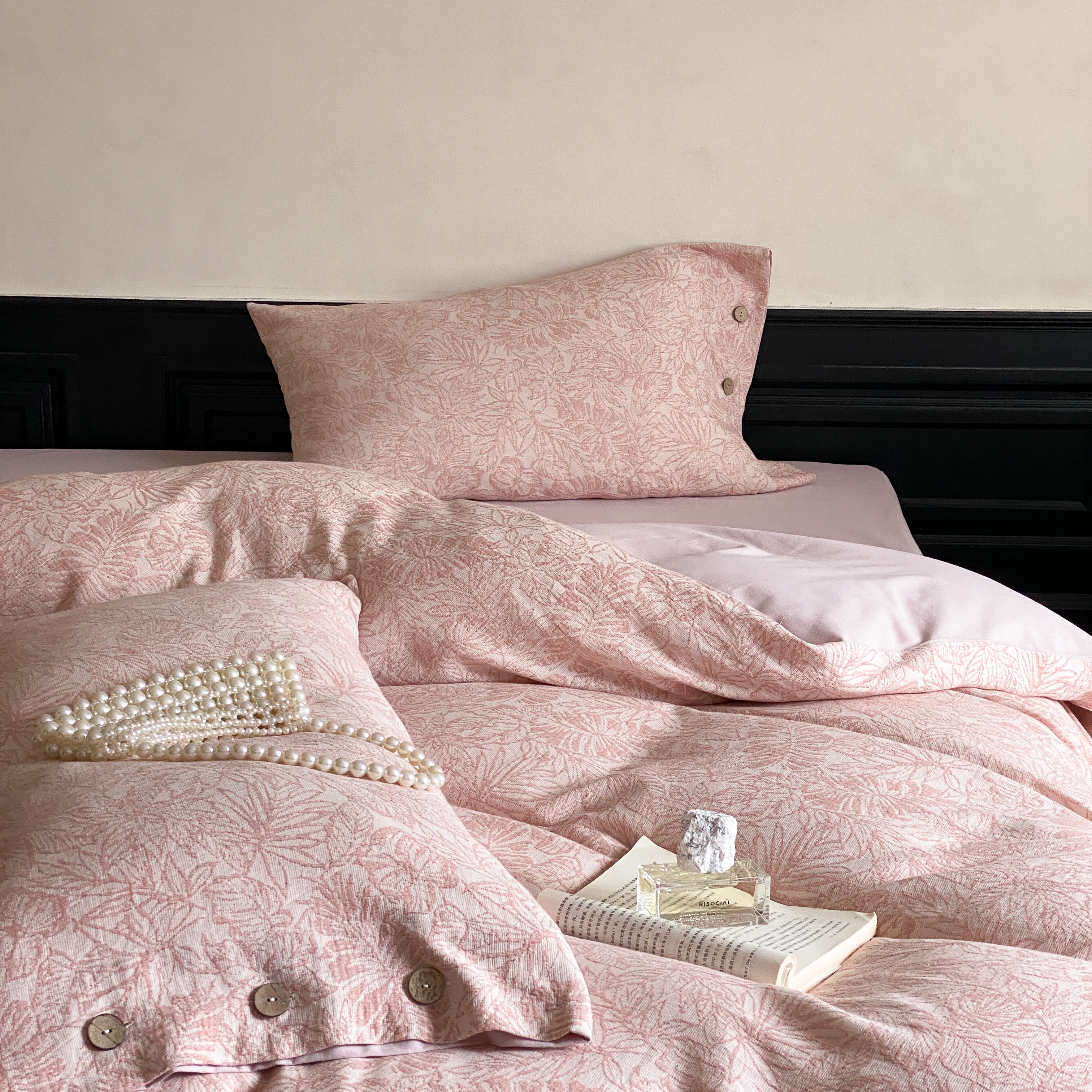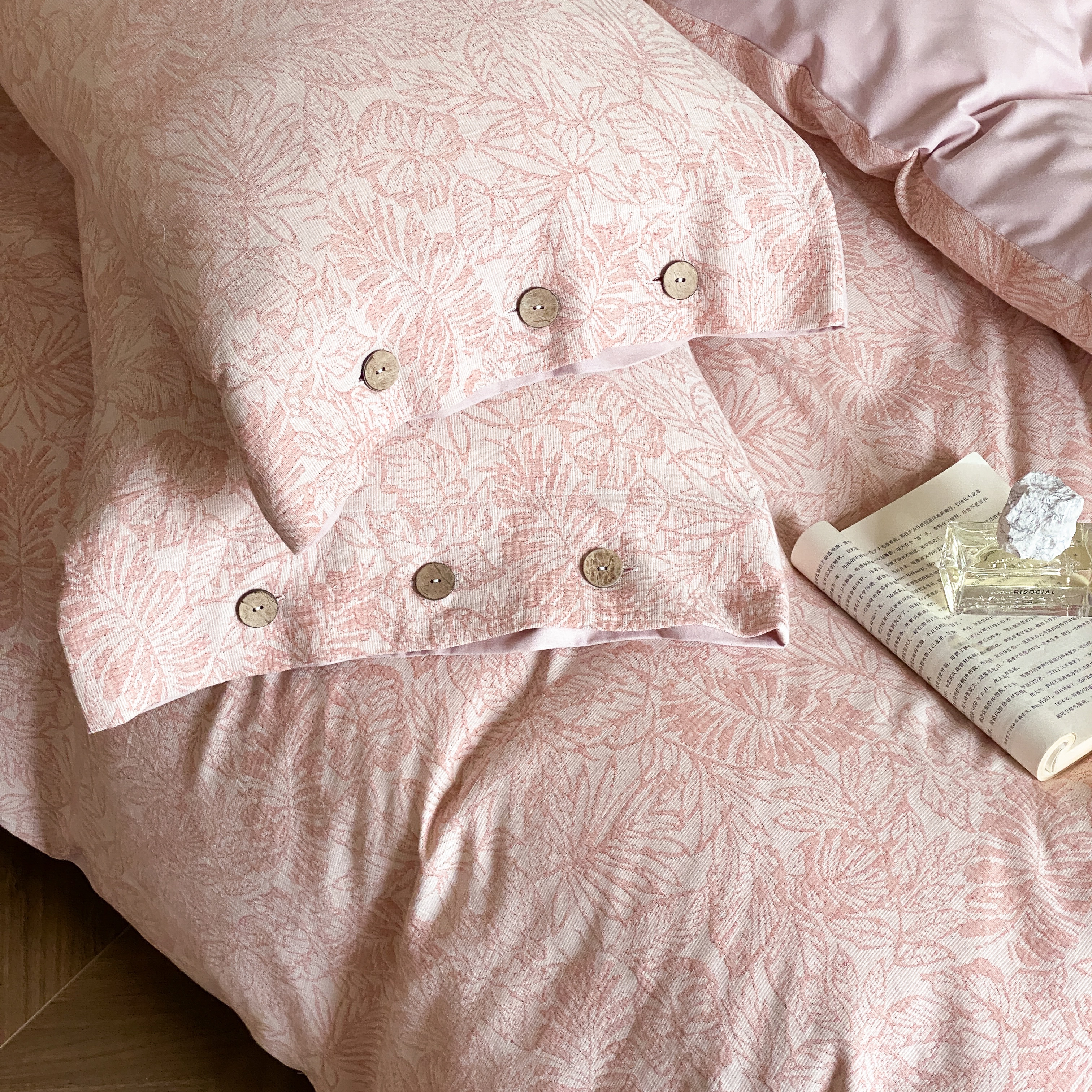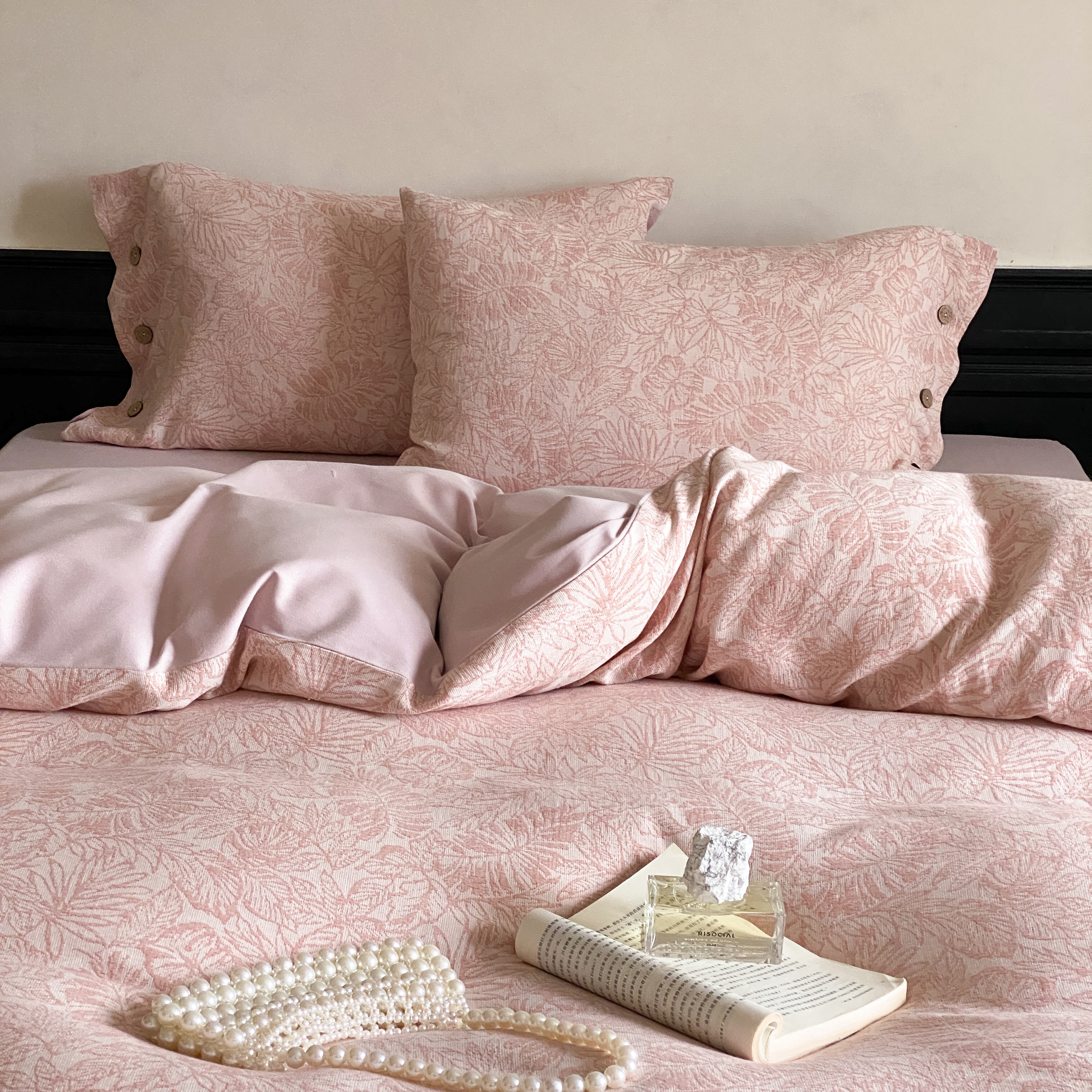 商品名称:旷野 2025新款全棉色织大提花100支磨毛四件套 晚枫林-粉