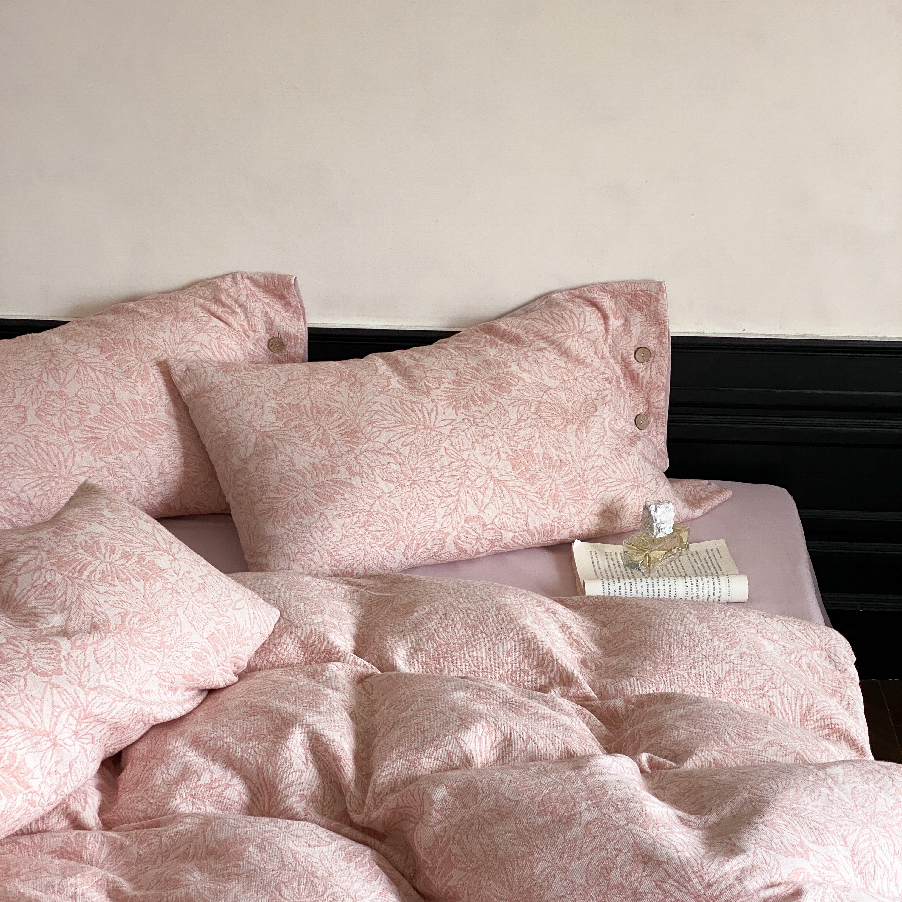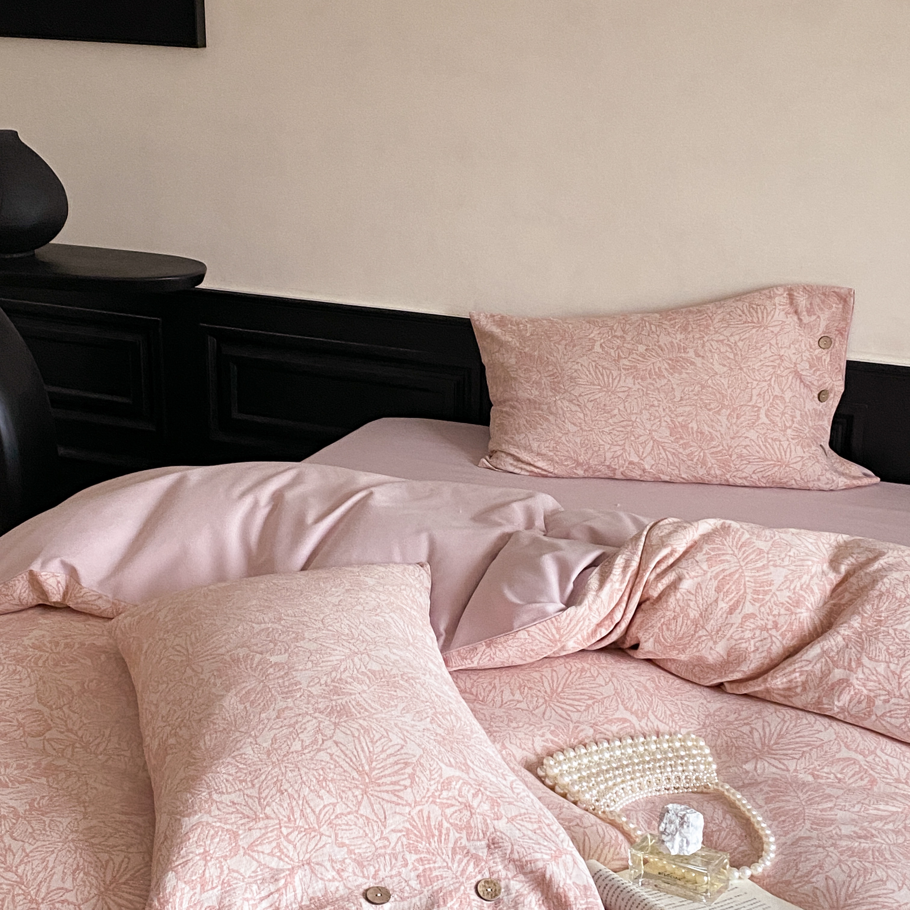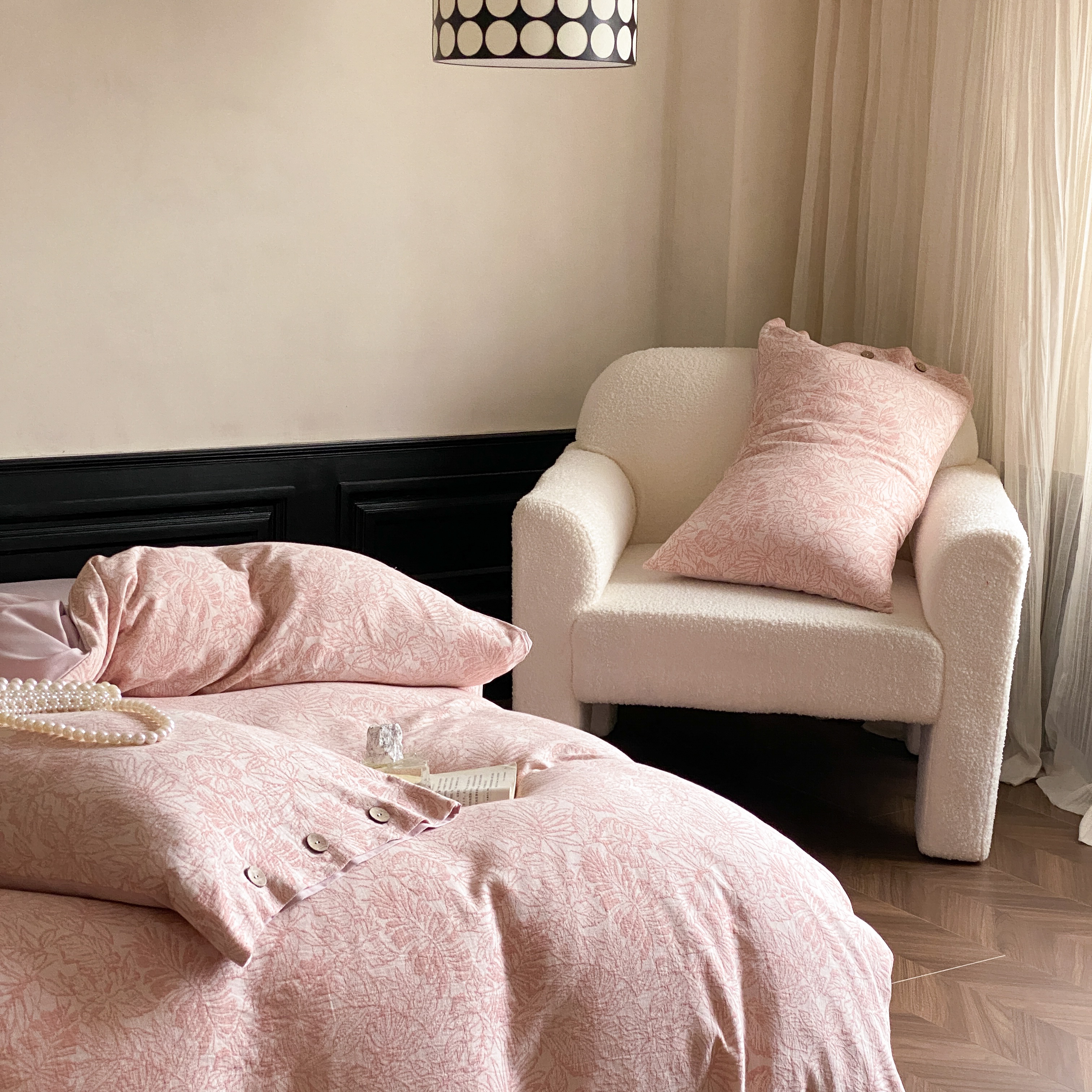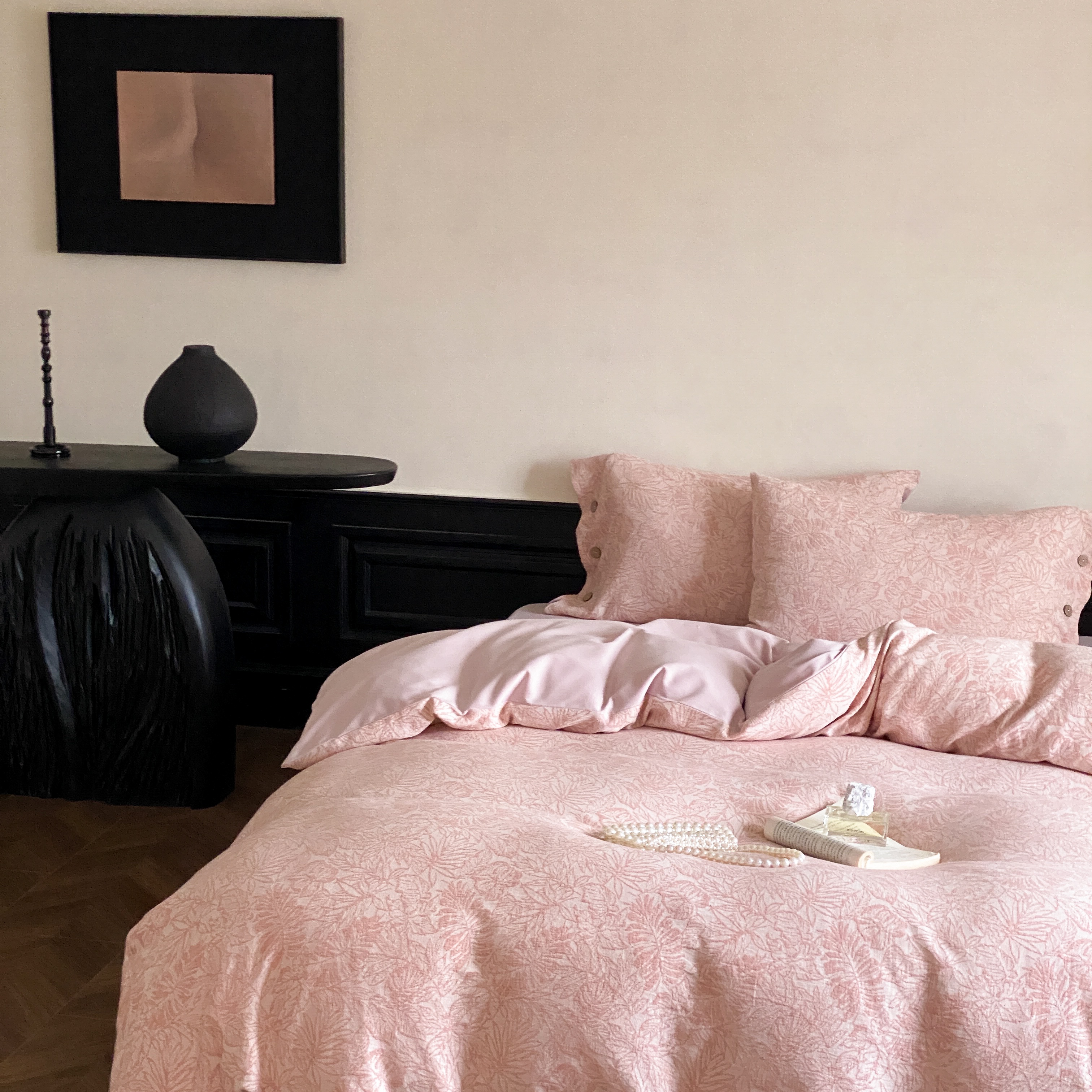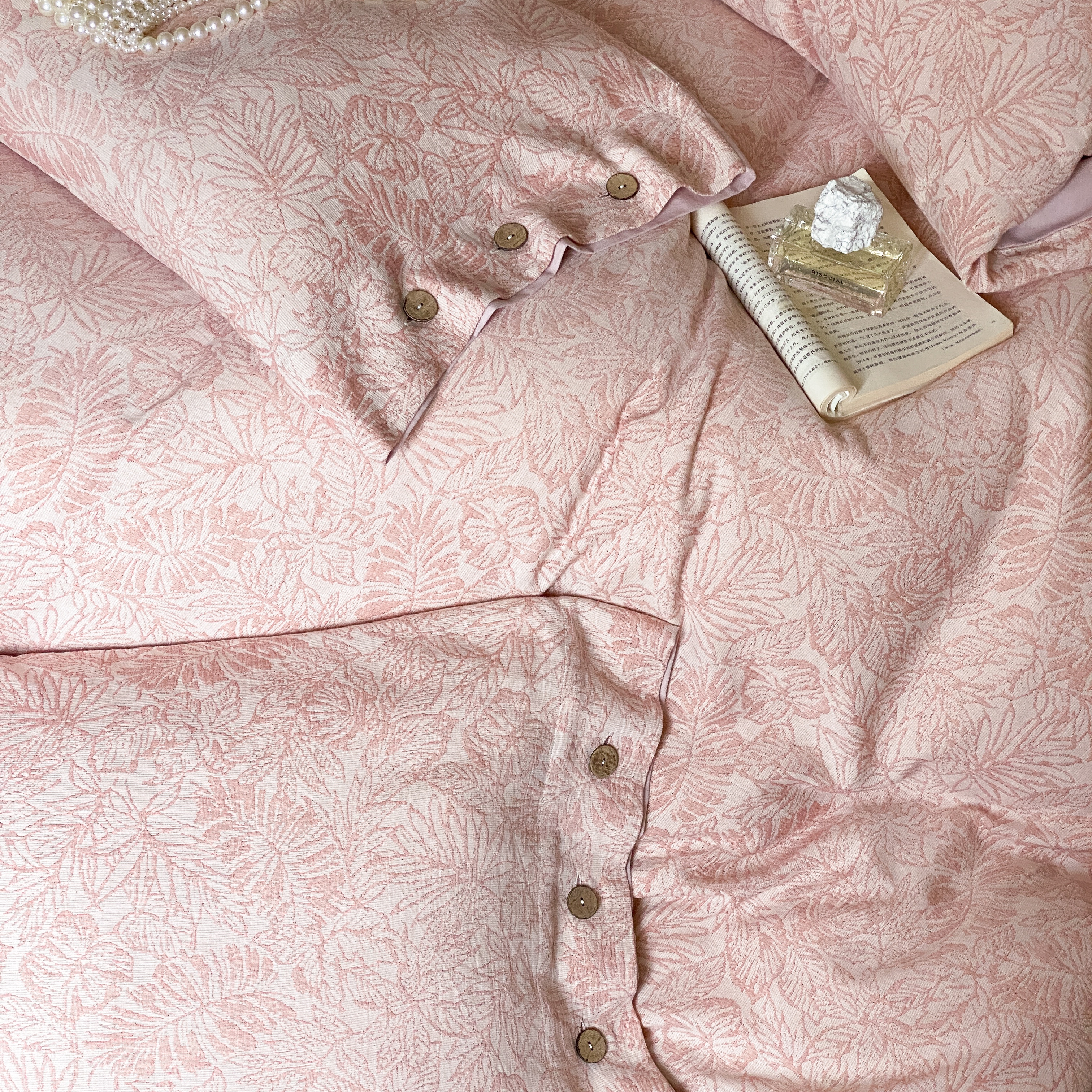 商品名称:旷野 2025新款全棉色织大提花100支磨毛四件套 晚枫林-粉