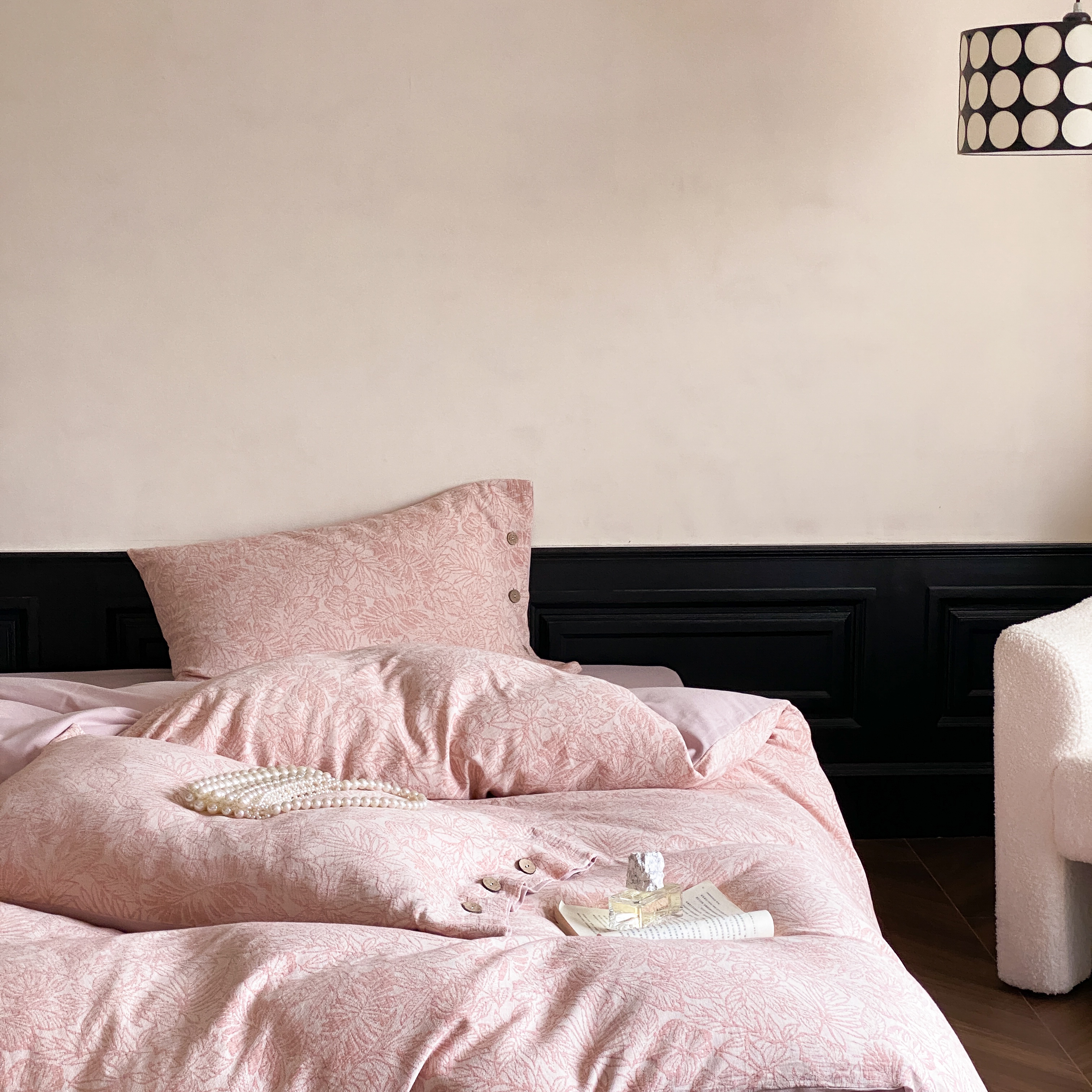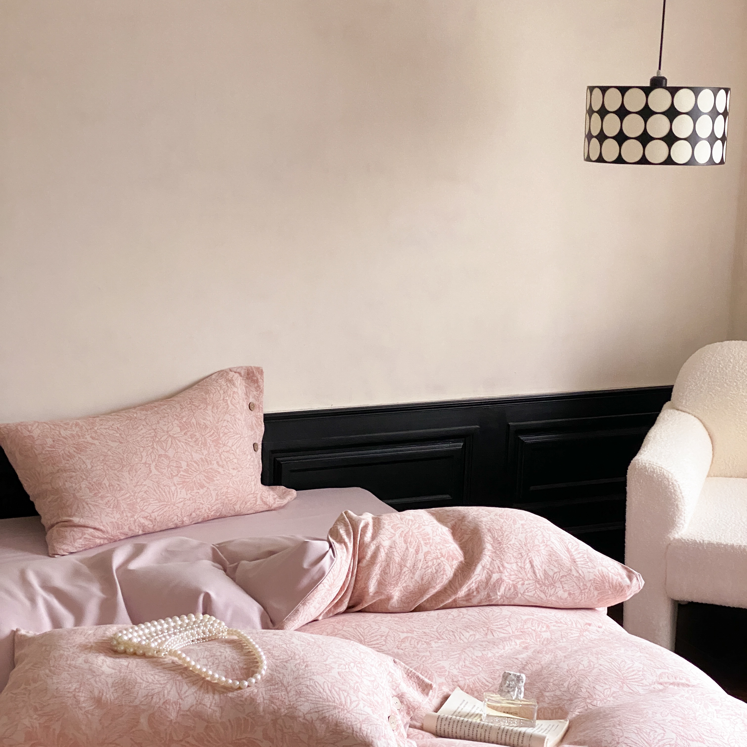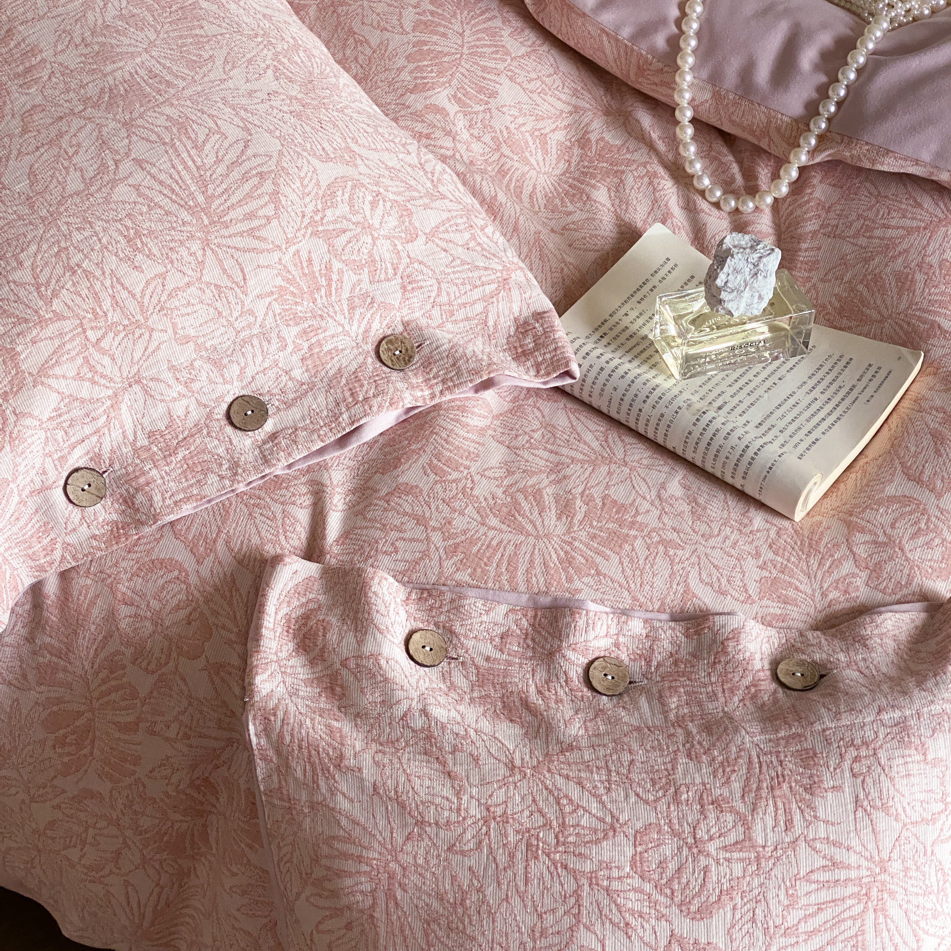 旷野 2025新款全棉色织大提花100支磨毛四件套 晚枫林-粉