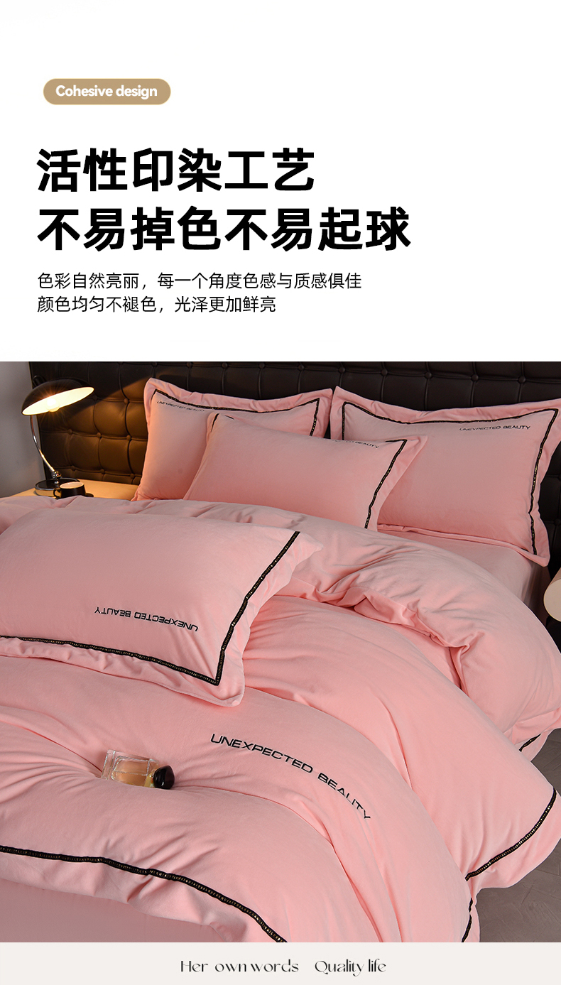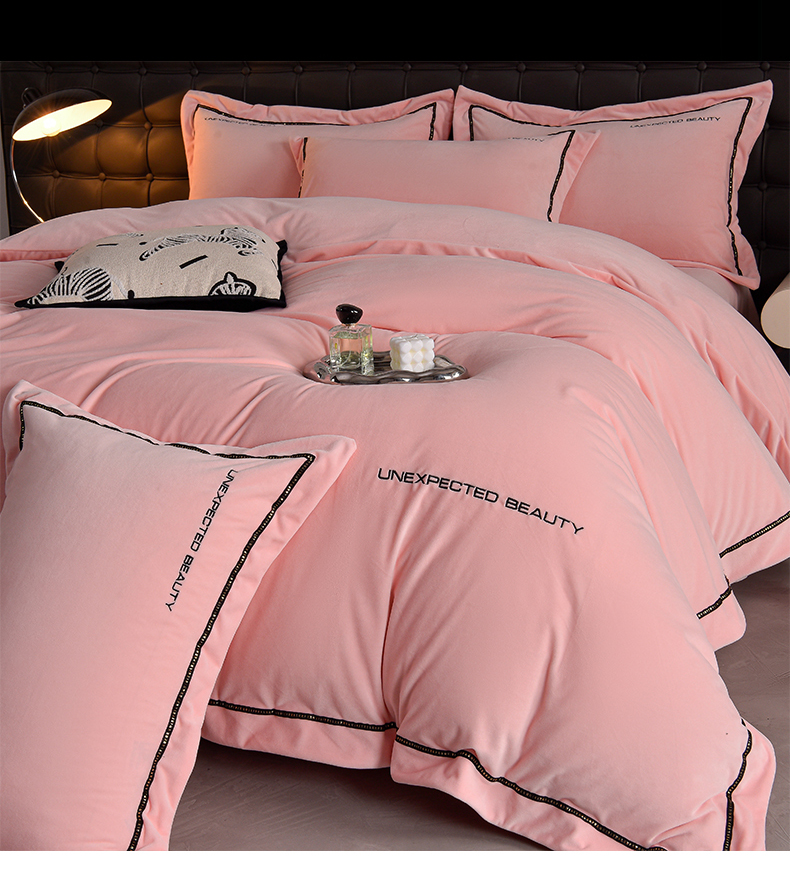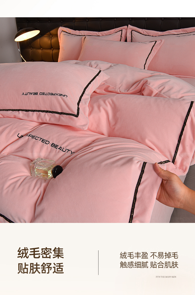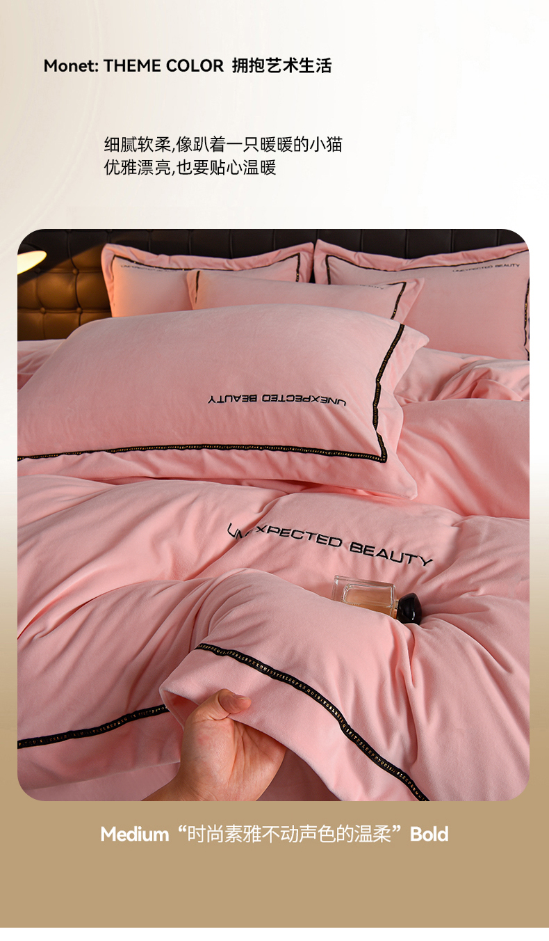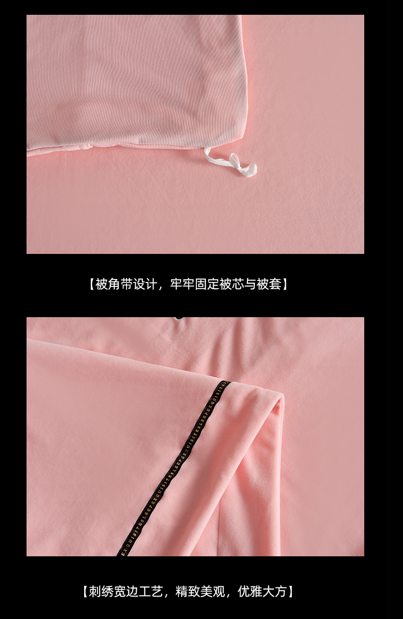 米奈家居 2025新款宝宝绒压线织带四件套-法拉 法拉-少女粉