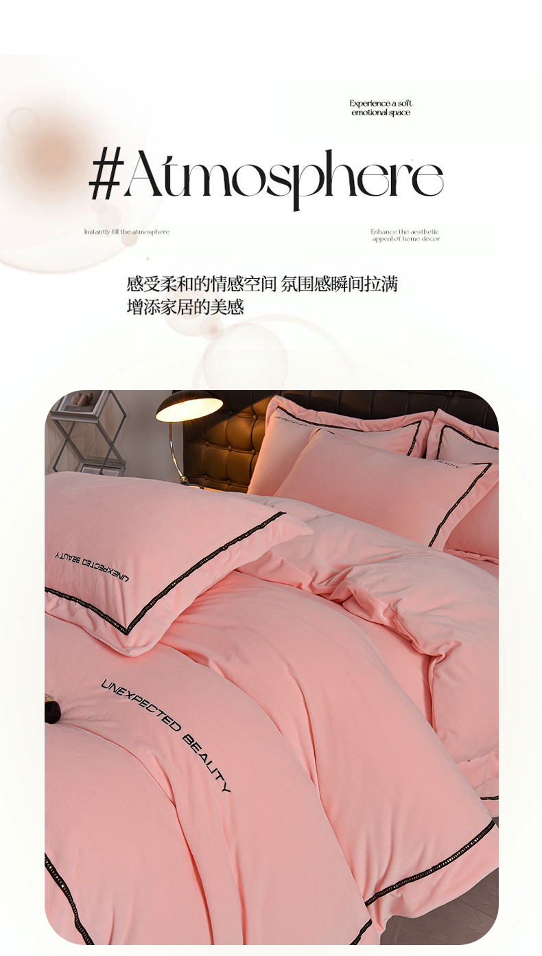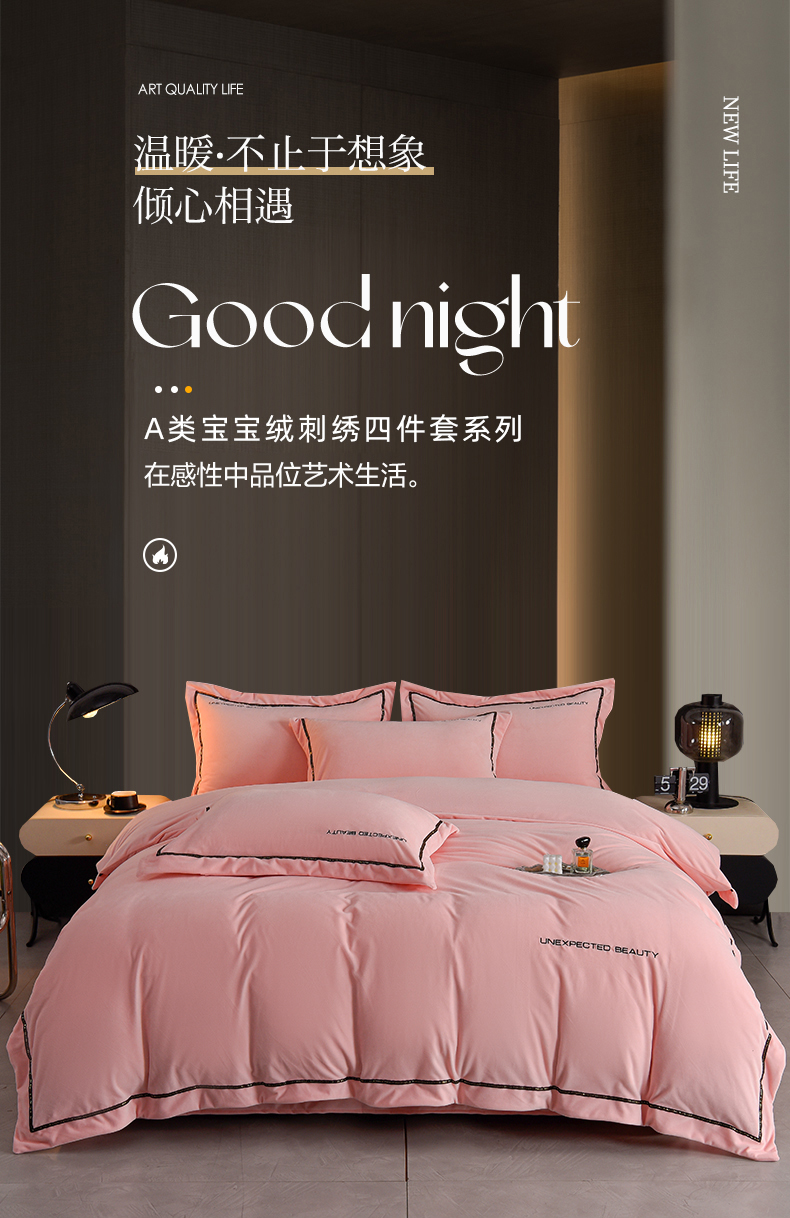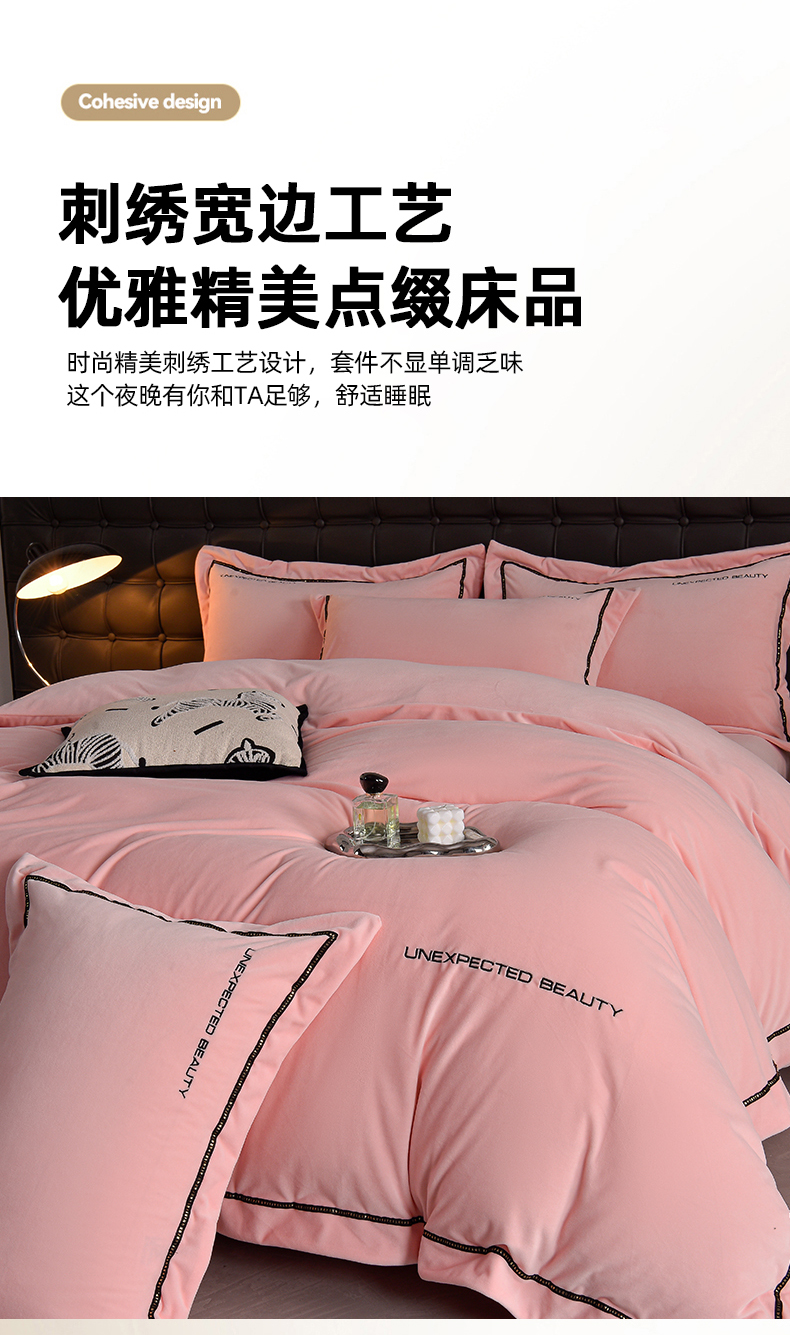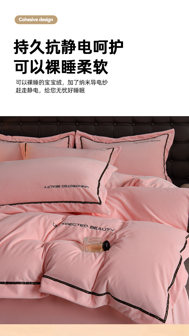 米奈家居 2025新款宝宝绒压线织带四件套-法拉 法拉-少女粉
