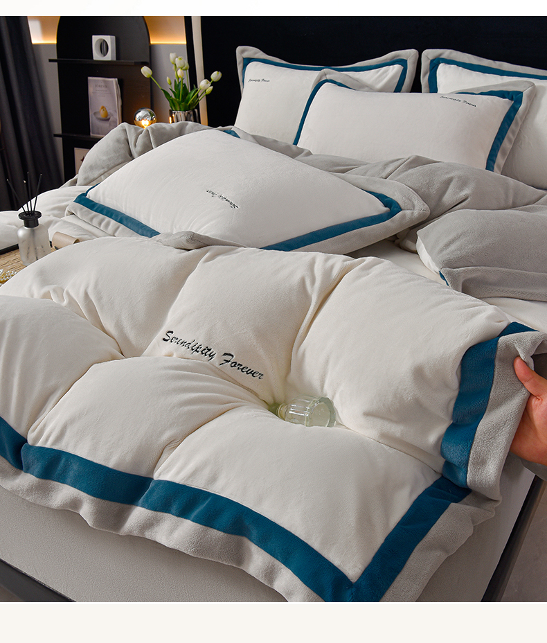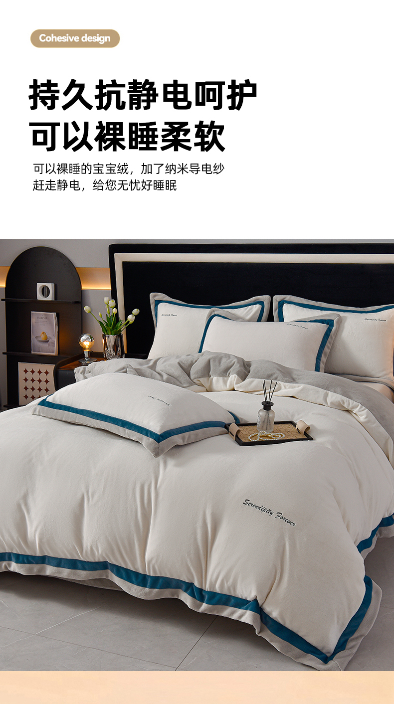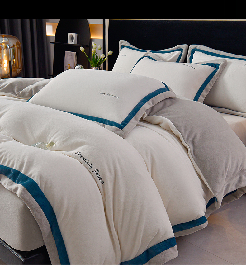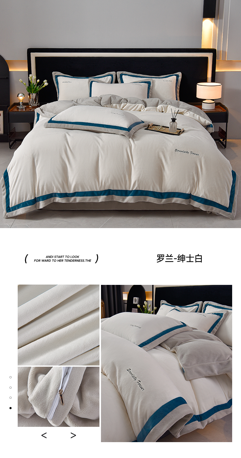米奈家居 2025新款宝宝绒撞色拼角四件套-罗兰 绅士白