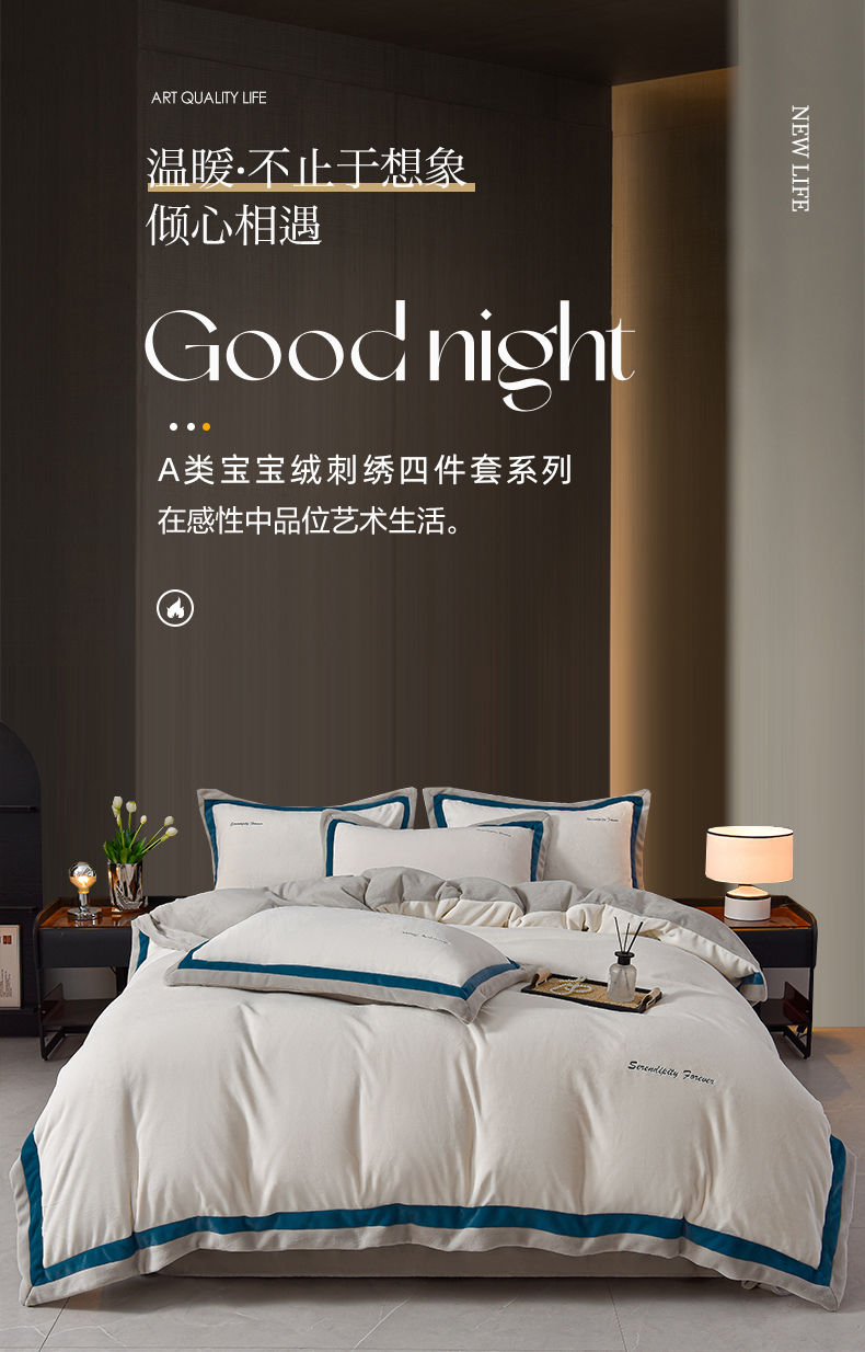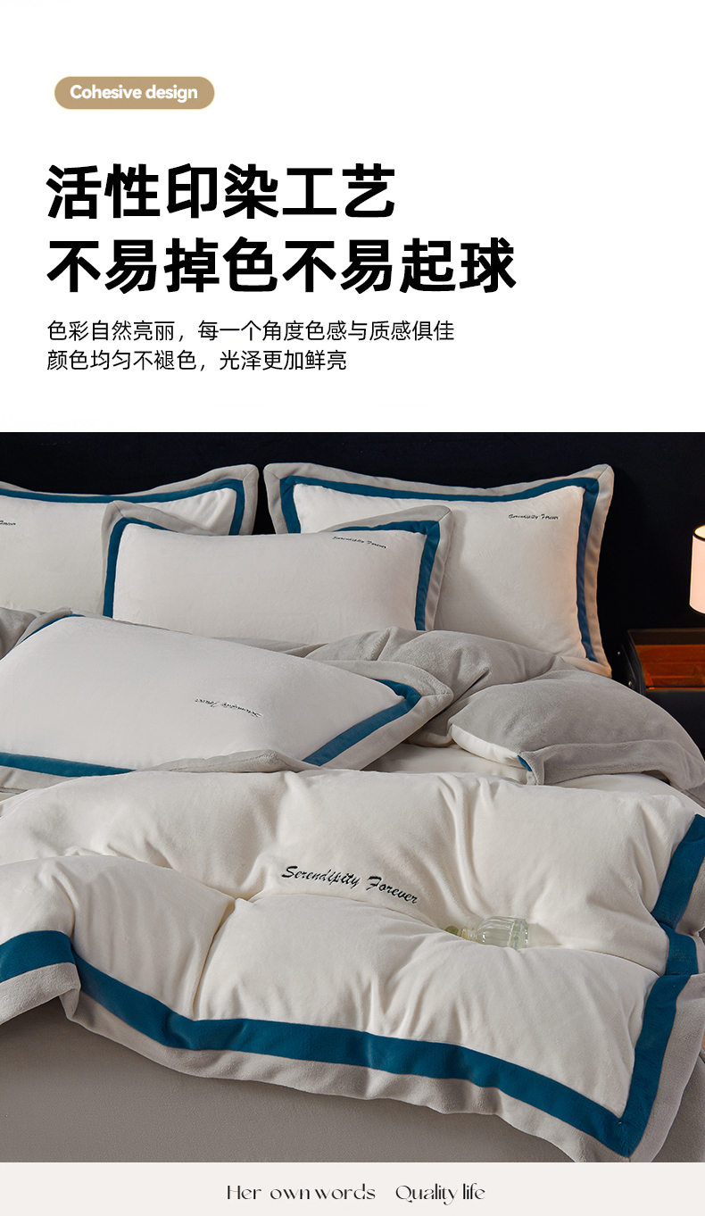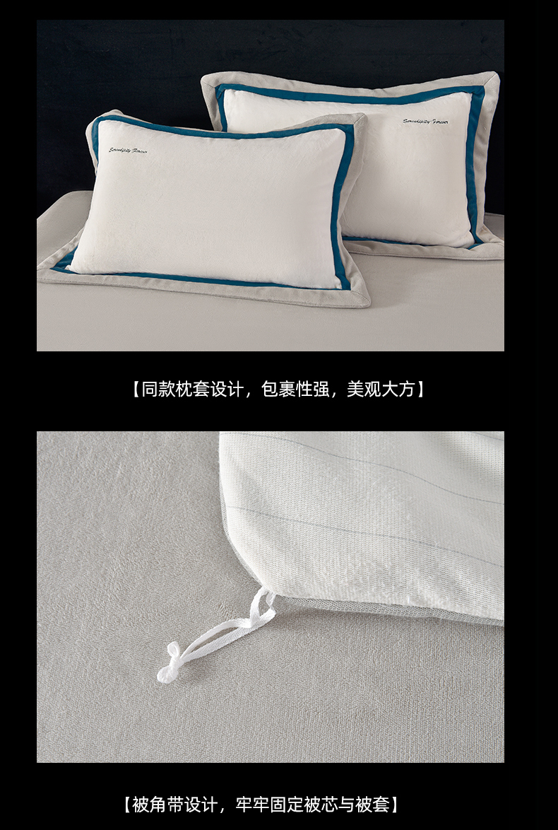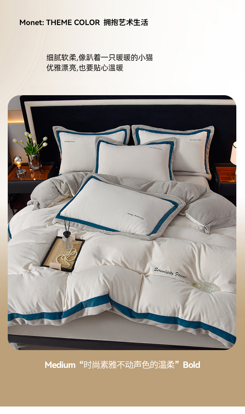 米奈家居 2025新款宝宝绒撞色拼角四件套-罗兰 绅士白