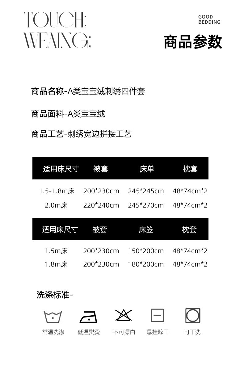 [{"sp_id":11,"sp_name":"\u989c\u8272","sp_format":2,"sp_list":[{"sp_value_id":1664,"sp_value_name":"\u7ec5\u58eb\u767d","sp_value_image":{"id":999,"path":"https:\/\/img3.91jf.com\/ghelp\/2025\/20251007\/20251007125016_922594.jpeg"},"sp_value_video":{"id":0,"img":"","path":"","time":0,"download_num":0,"play_num":0},"price":"190.00","storage":2500,"weight":"4.100","is_check_weight":0,"plus_price":"","sp_sort":0}]},{"sp_id":10,"sp_name":"\u5c3a\u5bf8","sp_format":1,"sp_list":[{"sp_value_id":41,"sp_value_name":"\u3010\u5e8a\u5355\u6b3e\u30111.5\u56db\u4ef6\u5957-\u88ab\u5957200x230","sp_value_image":{"id":0,"path":""},"sp_value_video":{"id":0,"img":"","path":"","time":0,"download_num":0,"play_num":0},"price":"190.00","storage":500,"weight":"4.100","is_check_weight":0,"plus_price":"","sp_sort":5},{"sp_value_id":42,"sp_value_name":"\u3010\u5e8a\u5355\u6b3e\u30111.8\u56db\u4ef6\u5957-\u88ab\u5957200x230","sp_value_image":{"id":0,"path":""},"sp_value_video":{"id":0,"img":"","path":"","time":0,"download_num":0,"play_num":0},"price":"190.00","storage":500,"weight":"4.100","is_check_weight":0,"plus_price":"","sp_sort":6},{"sp_value_id":43,"sp_value_name":"\u3010\u5e8a\u5355\u6b3e\u30112.0\u56db\u4ef6\u5957-\u88ab\u5957220x240","sp_value_image":{"id":0,"path":""},"sp_value_video":{"id":0,"img":"","path":"","time":0,"download_num":0,"play_num":0},"price":"200.00","storage":500,"weight":"4.300","is_check_weight":0,"plus_price":"","sp_sort":7},{"sp_value_id":44,"sp_value_name":"\u3010\u5e8a\u7b20\u6b3e\u30111.5\u56db\u4ef6\u5957-\u88ab\u5957200x230","sp_value_image":{"id":0,"path":""},"sp_value_video":{"id":0,"img":"","path":"","time":0,"download_num":0,"play_num":0},"price":"200.00","storage":500,"weight":"4.100","is_check_weight":0,"plus_price":"","sp_sort":8},{"sp_value_id":45,"sp_value_name":"\u3010\u5e8a\u7b20\u6b3e\u30111.8\u56db\u4ef6\u5957-\u88ab\u5957200x230","sp_value_image":{"id":0,"path":""},"sp_value_video":{"id":0,"img":"","path":"","time":0,"download_num":0,"play_num":0},"price":"200.00","storage":500,"weight":"4.100","is_check_weight":0,"plus_price":"","sp_sort":9}]}]