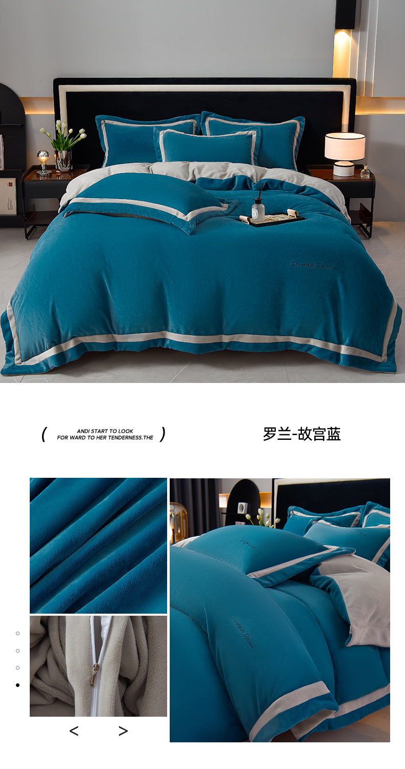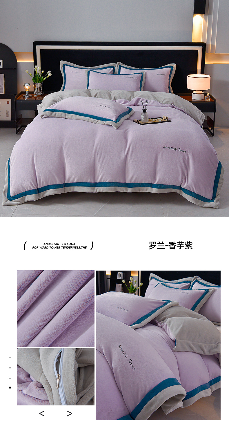 (总)米奈家居 2025新款宝宝绒撞色拼角四件套-罗兰,高级灰,故宫蓝,绅士白,香芋紫,元气粉