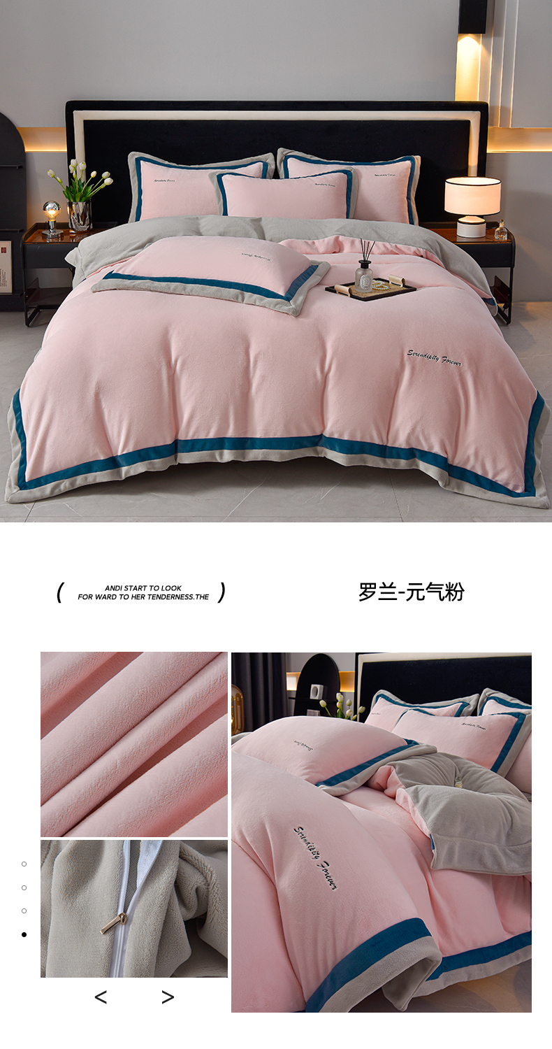 (总)米奈家居 2025新款A类高克重婴儿绒四件套-吉娜系列,淡雅粉,豆沙绿,孔雀绿,奶昔白+浅灰,浅杏色,绅士灰,西瓜粉,芋泥紫