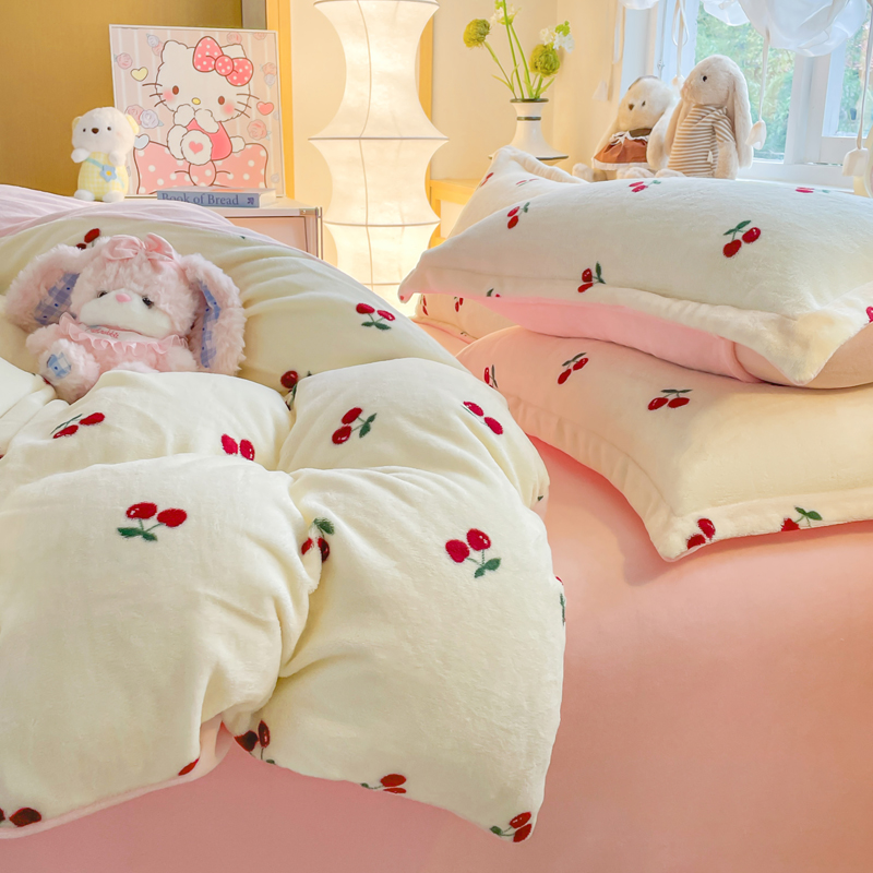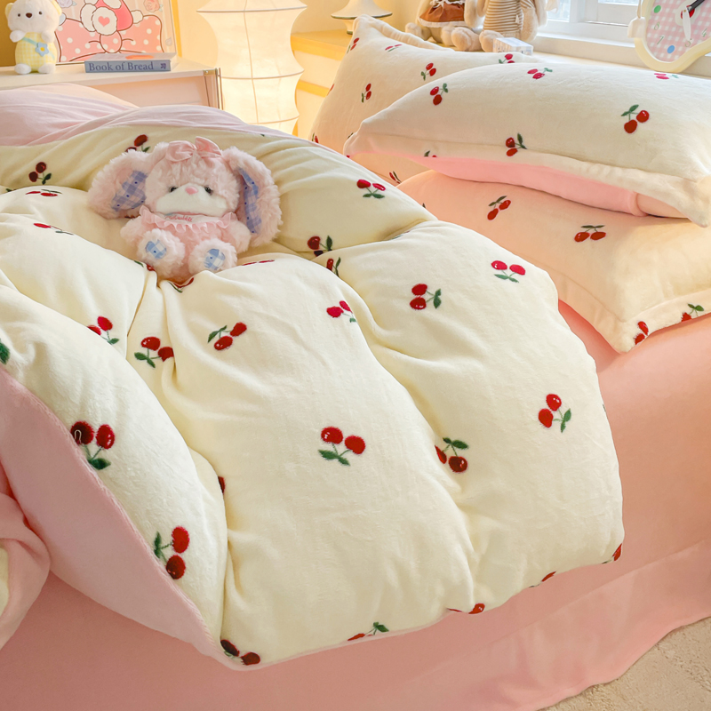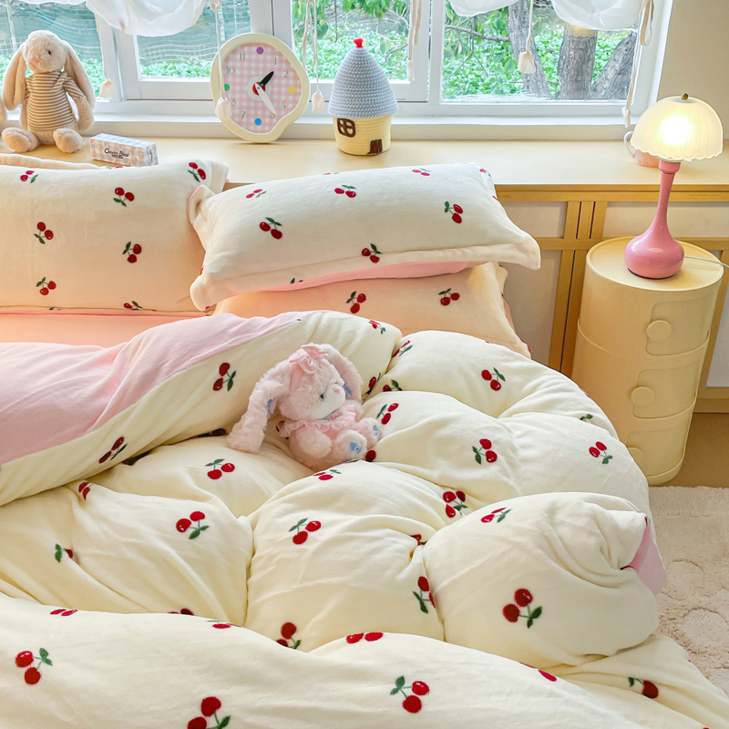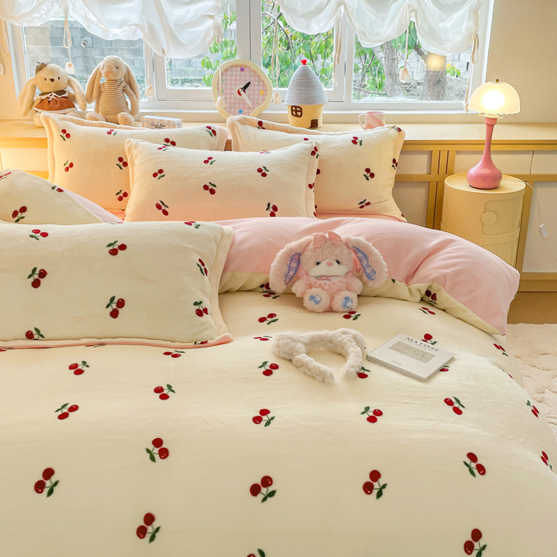 一比一 2025新款双面牛奶绒四件套 樱桃派