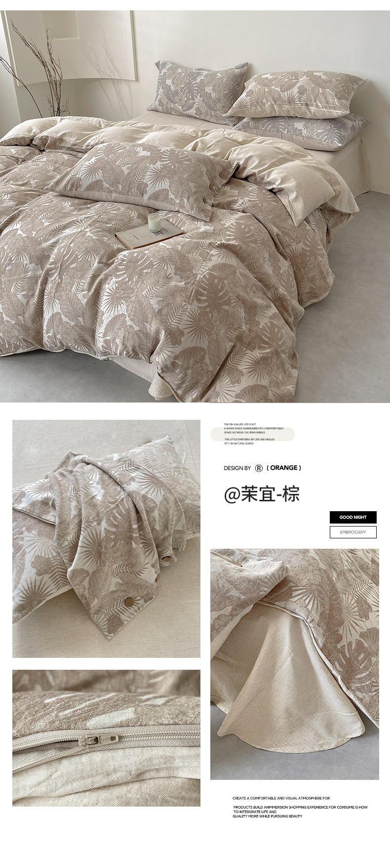 商品名称:(总) 2025新款秋冬新款色织提花棉麻四件套纯棉全棉复古风素色亚麻高级感工艺款床上用品