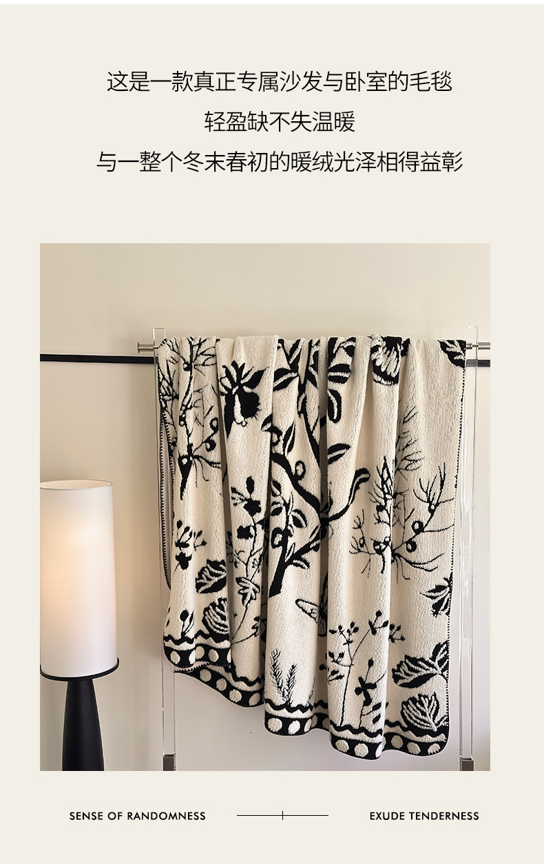 宜代光年 2025新款阳离子大提花复合绒毯子毛毯 黑白律动