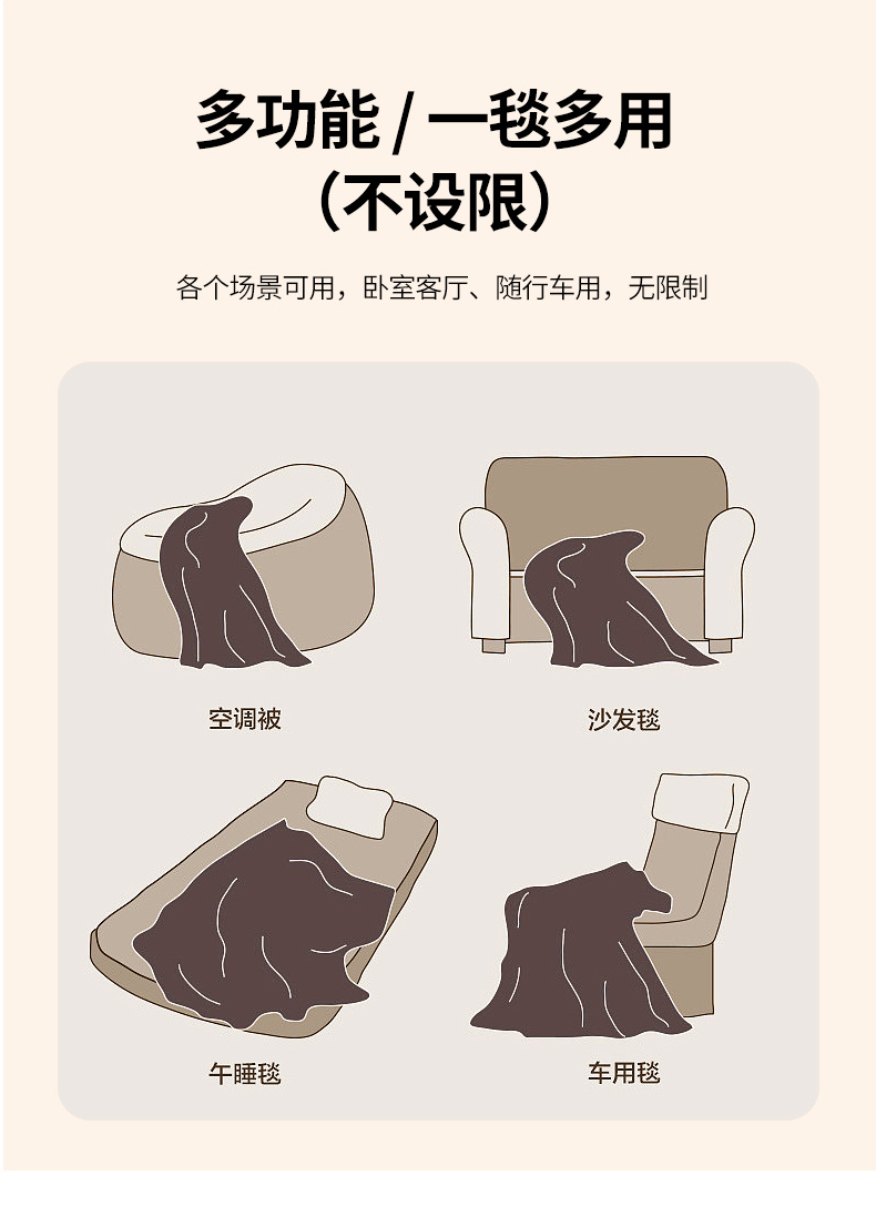 (总)宜代光年 2024新款520g全消光牛奶绒迪奥格盖毯,卡其,米白,柔粉,雾灰
