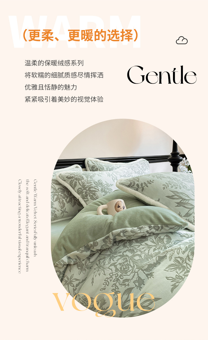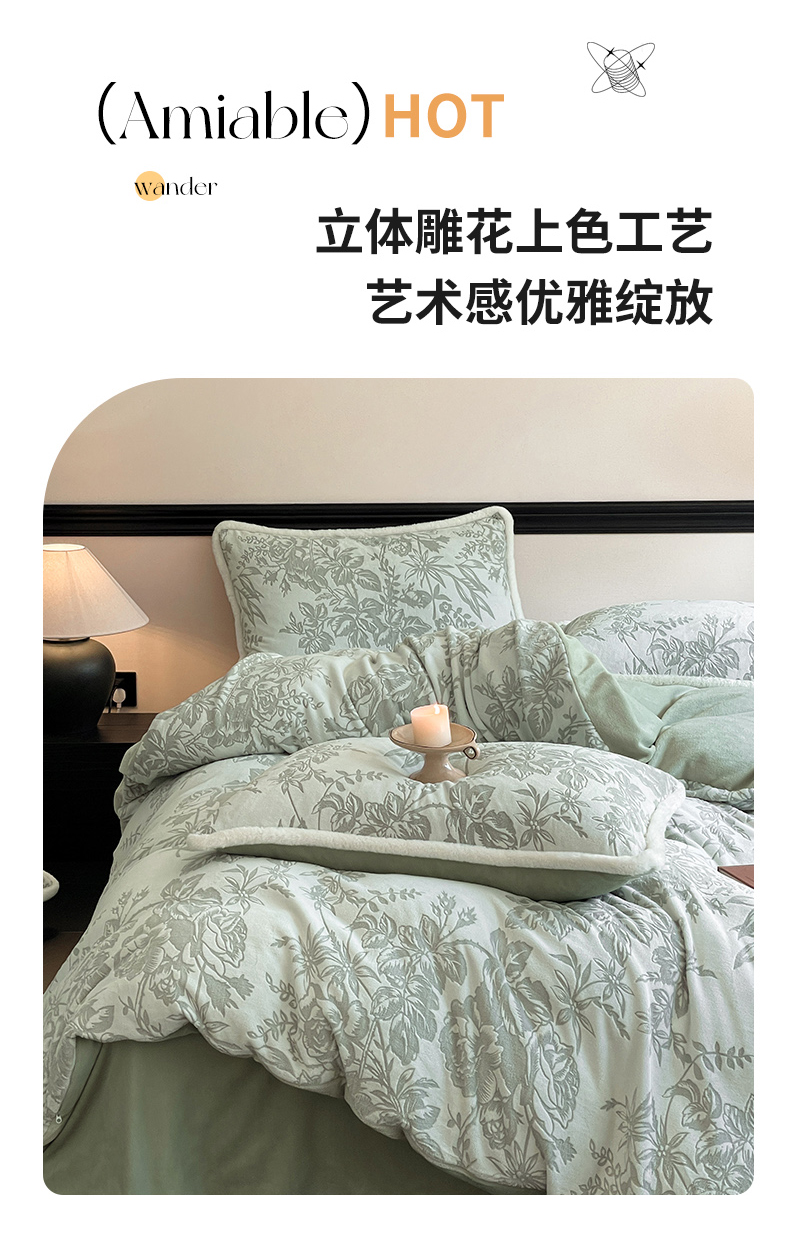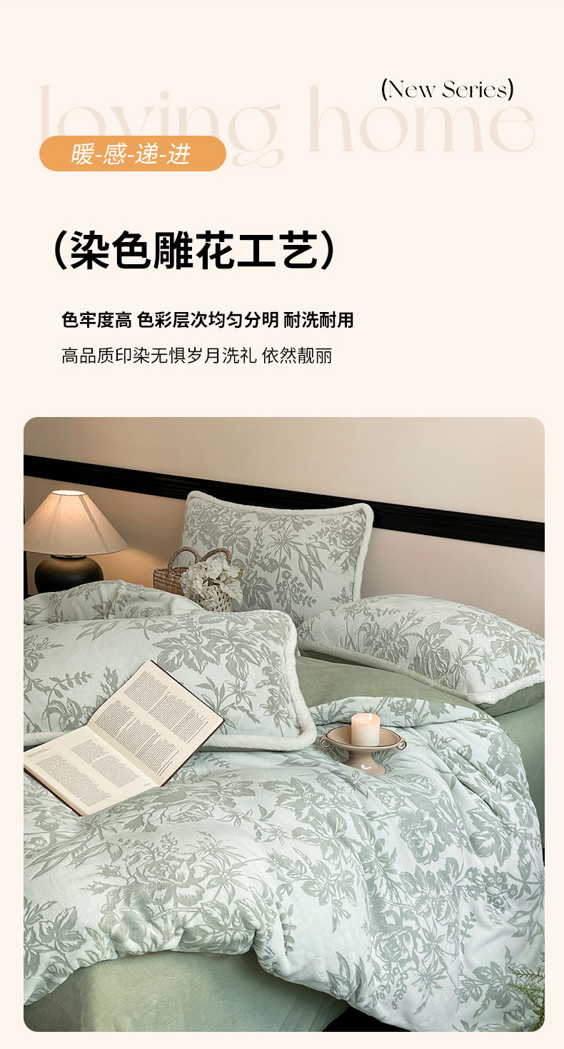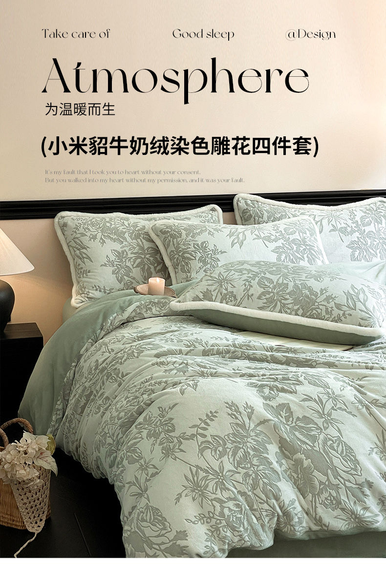 宜代光年 2025新款小米貂牛奶绒雕花四件套 繁花似锦-绿
