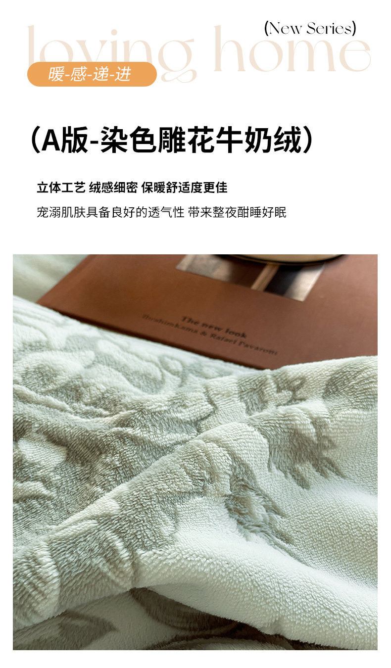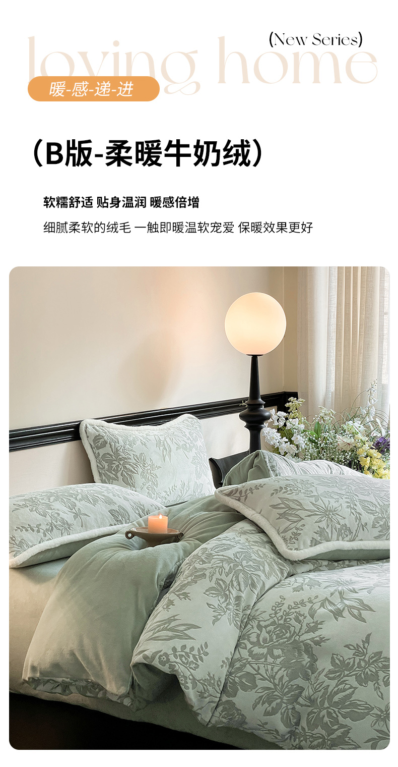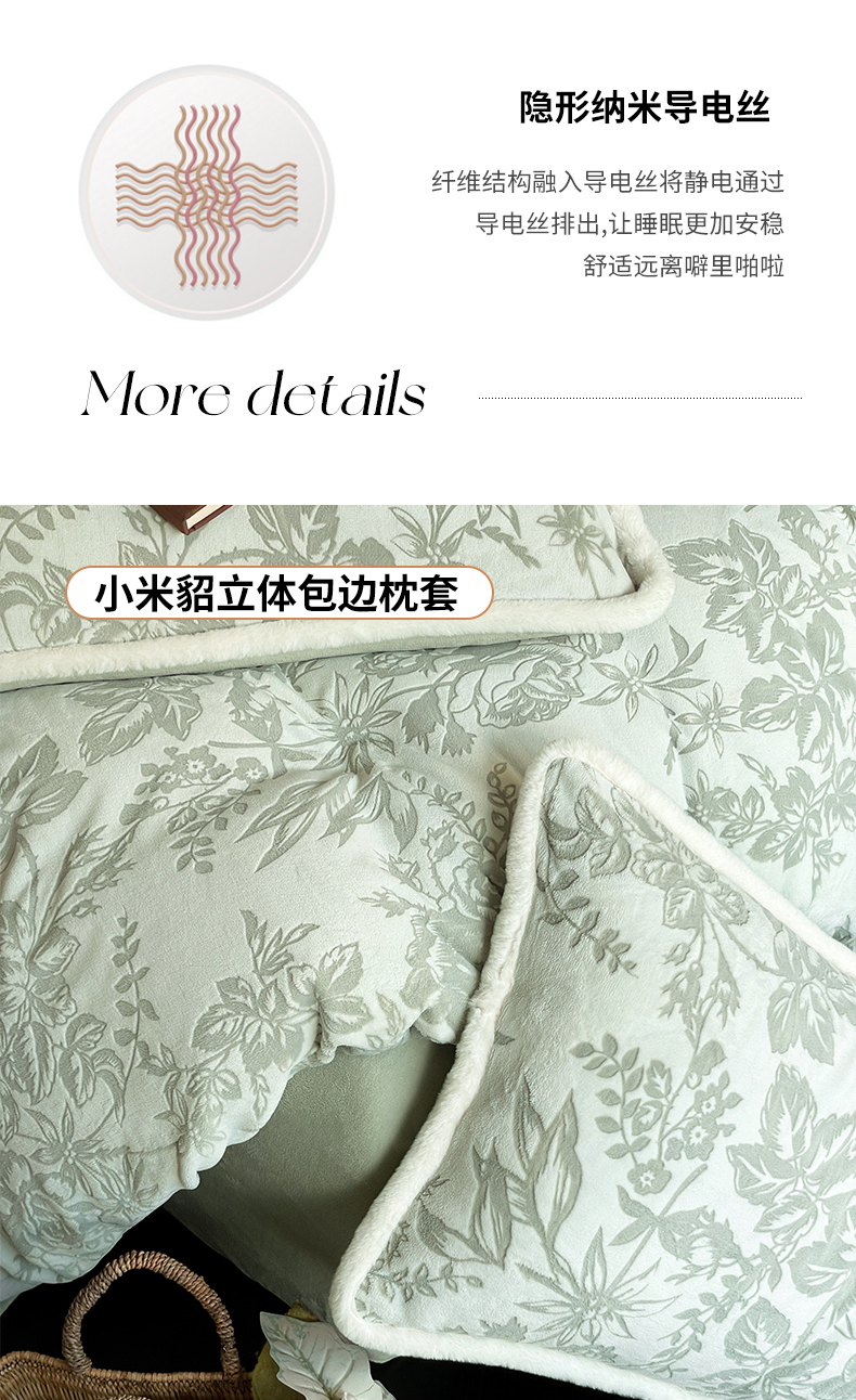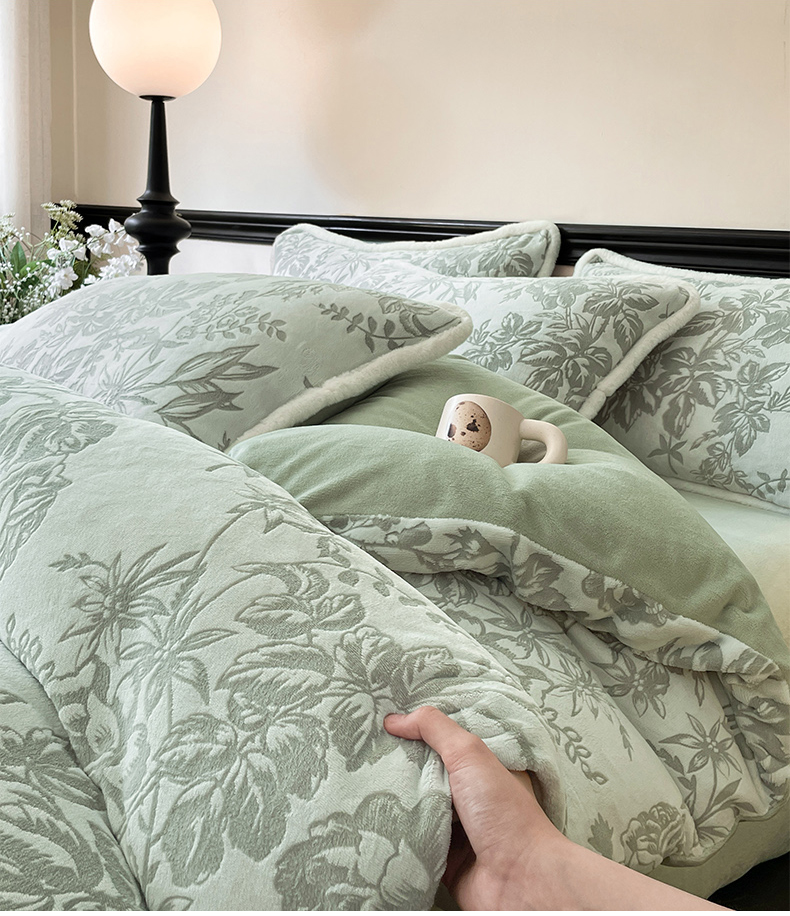 宜代光年 2025新款小米貂牛奶绒雕花四件套 繁花似锦-绿