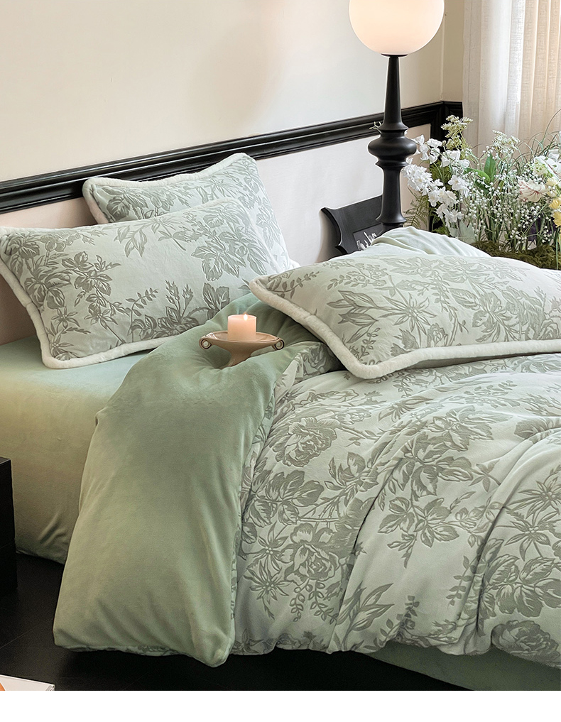 商品名称:宜代光年 2025新款小米貂牛奶绒雕花四件套 繁花似锦-绿