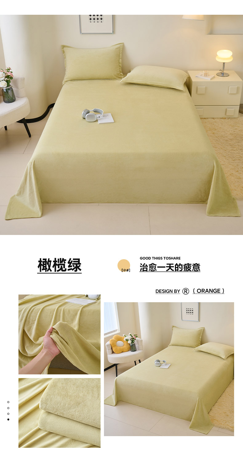 简爱家纺 2025新款高克重牛奶绒床单系列 橄榄绿