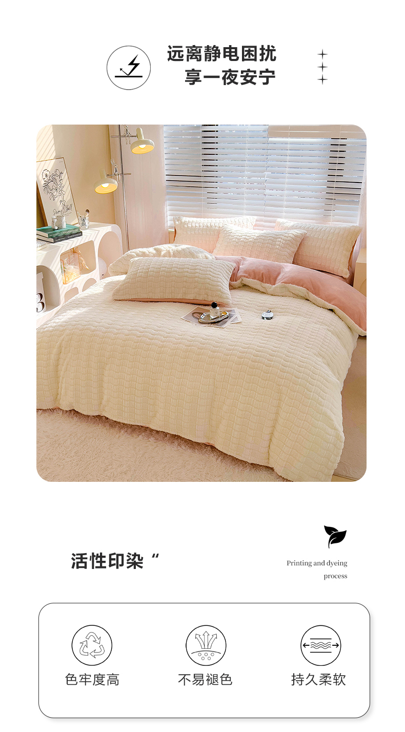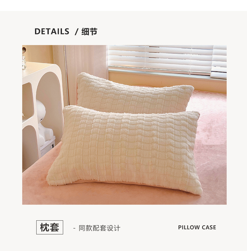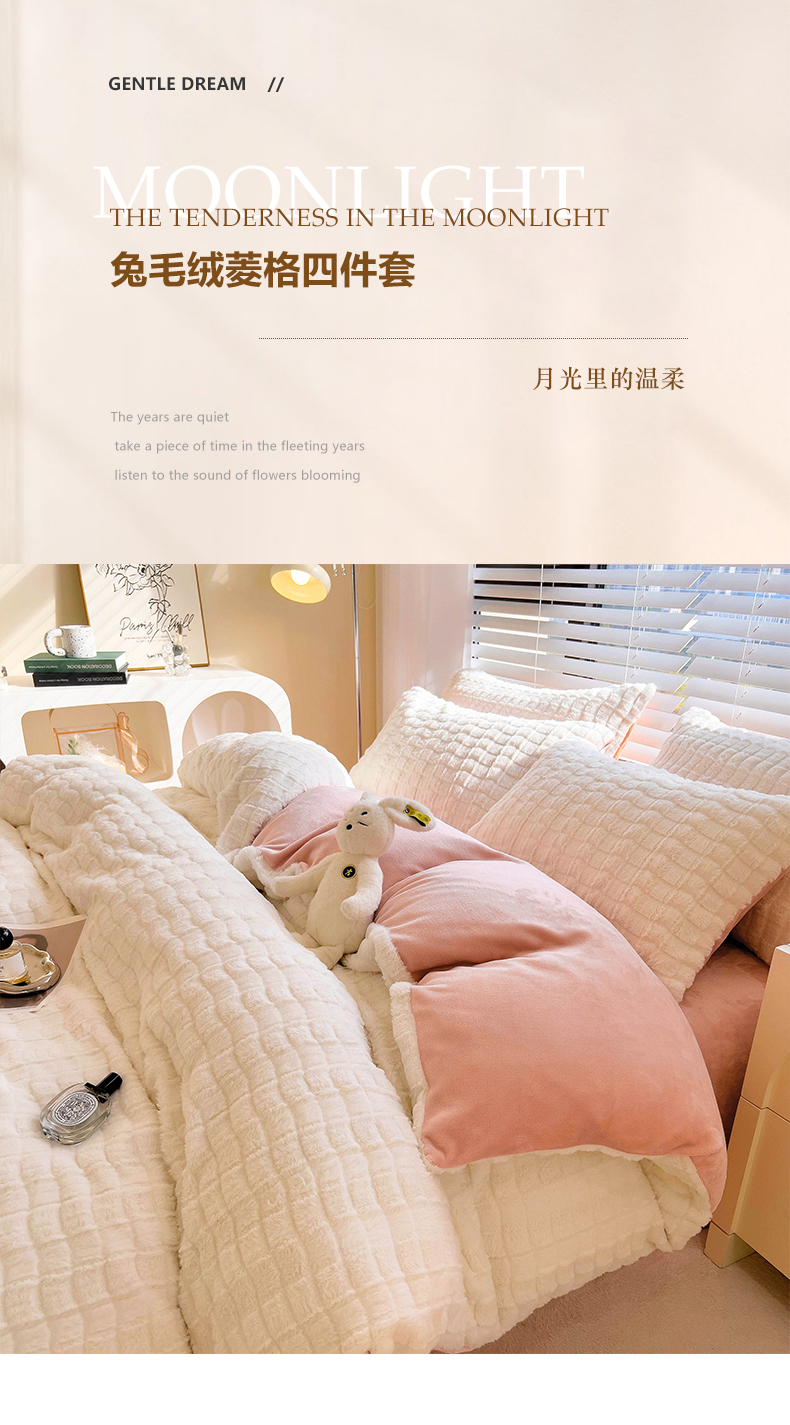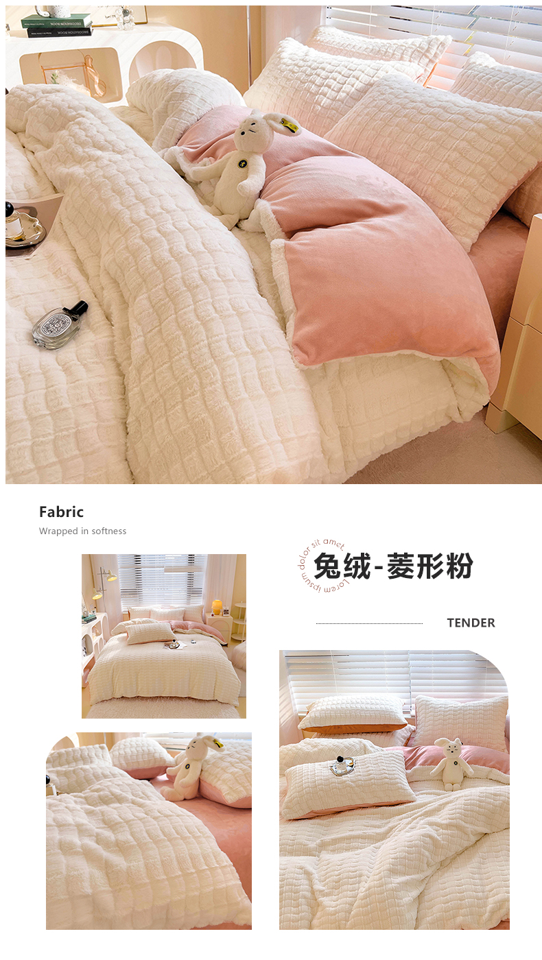商品名称:宜代光年 2025新款兔毛绒菱格纯色简约四件套 兔绒-菱形粉