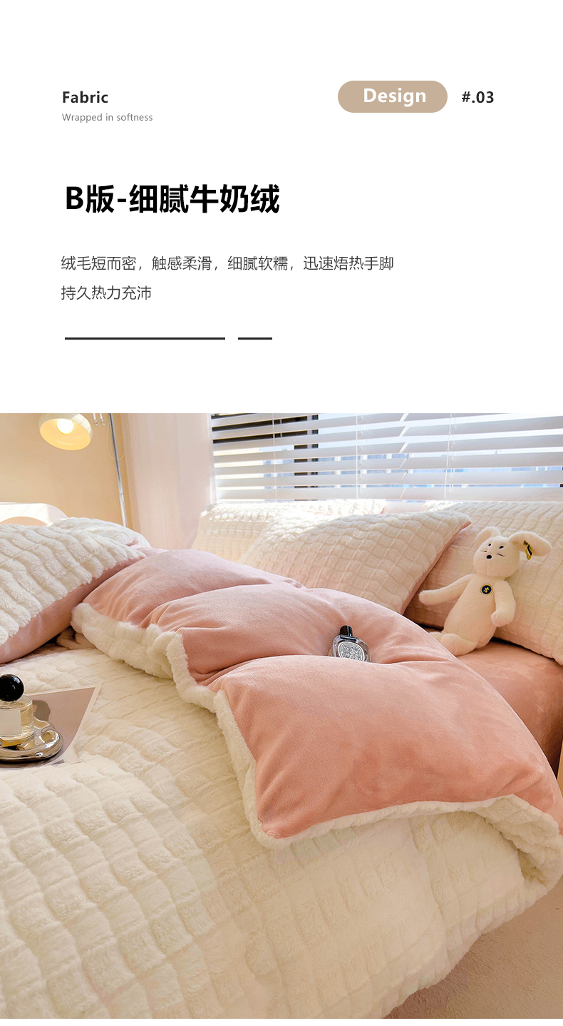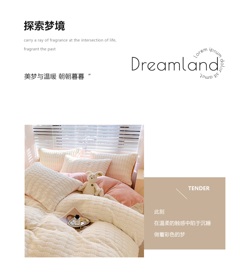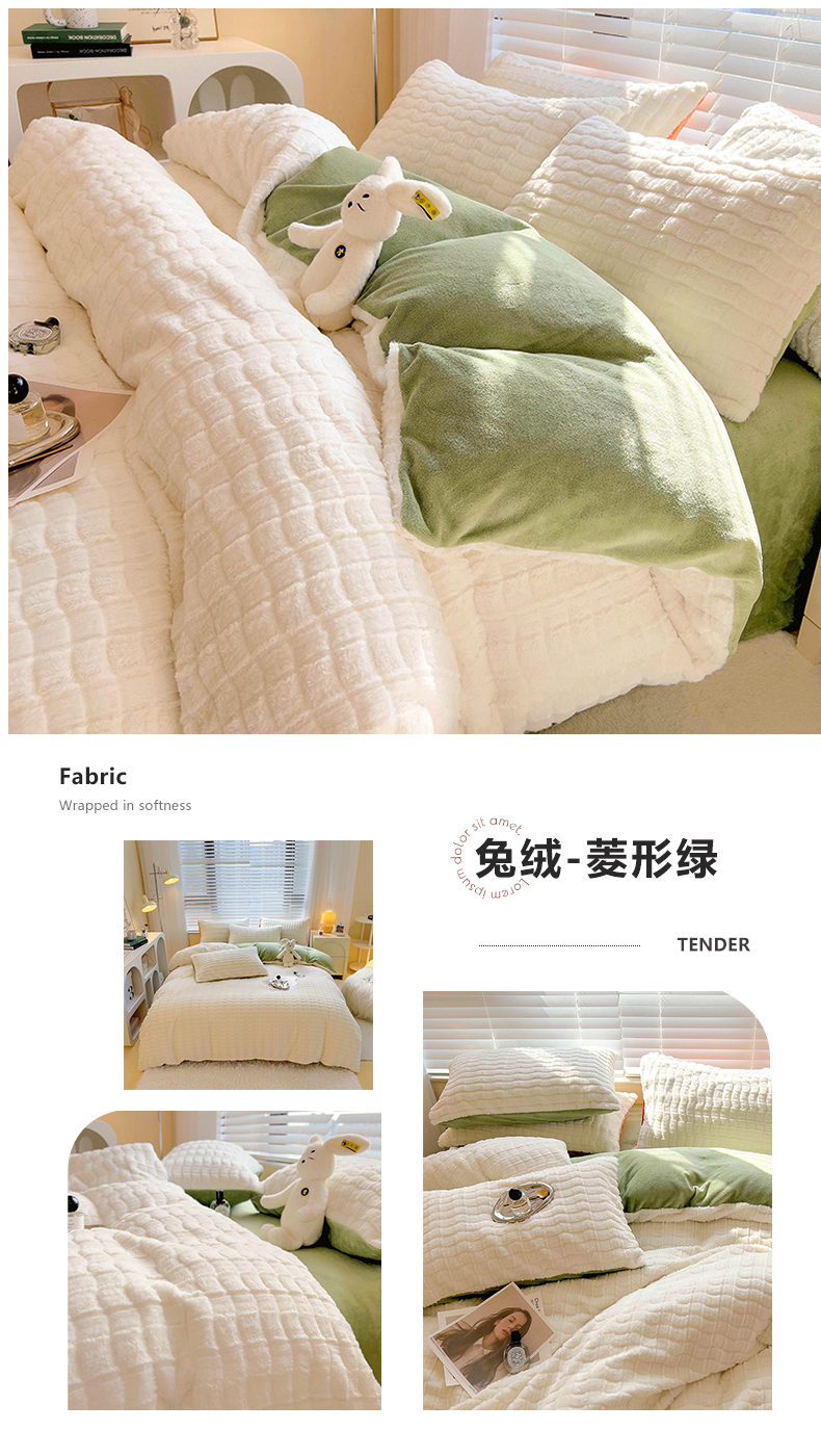商品名称:宜代光年 2025新款兔毛绒菱格纯色简约四件套 兔绒-菱形粉