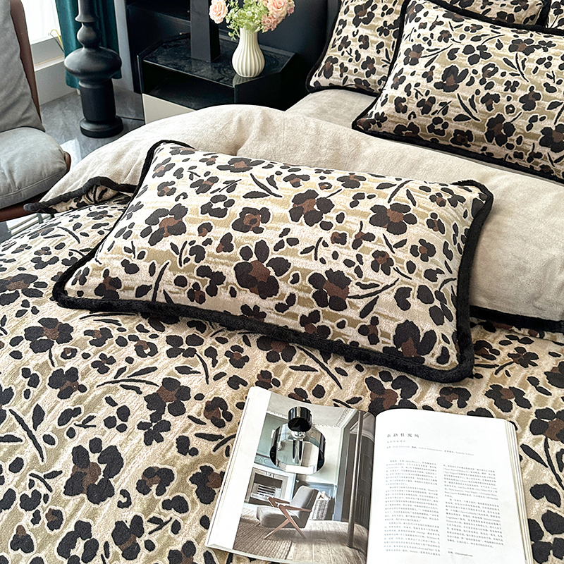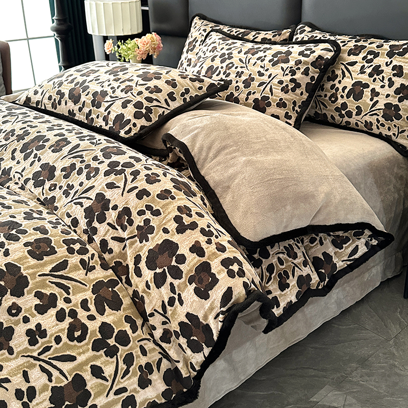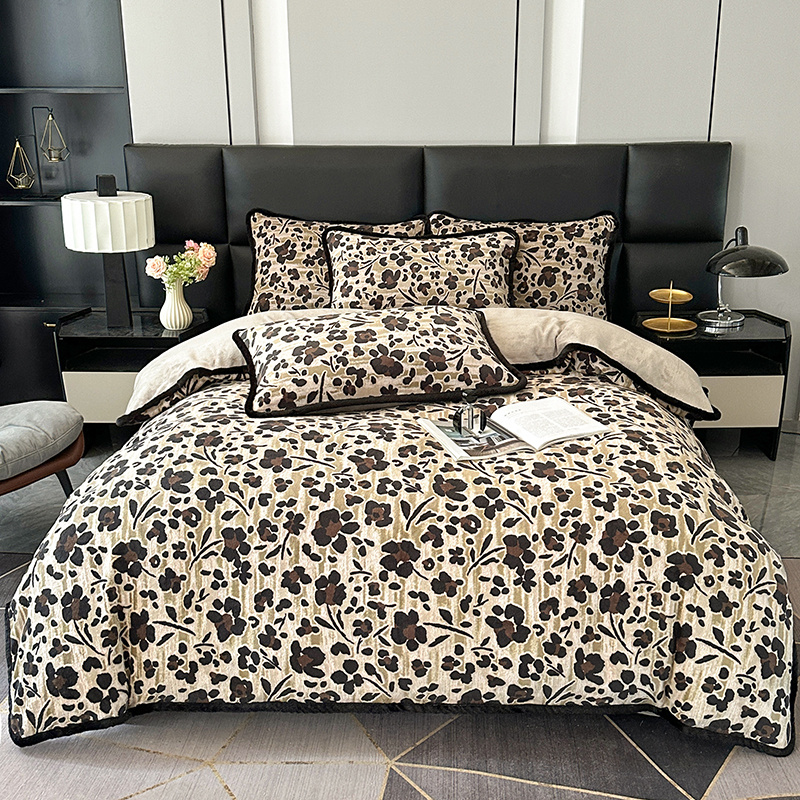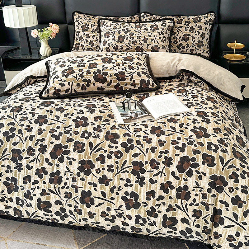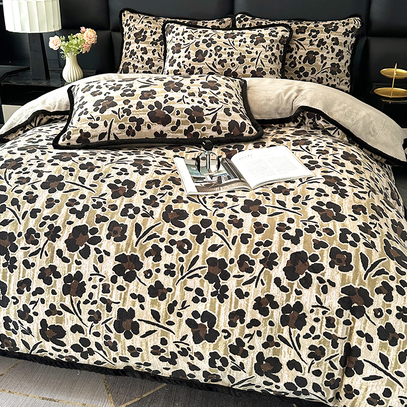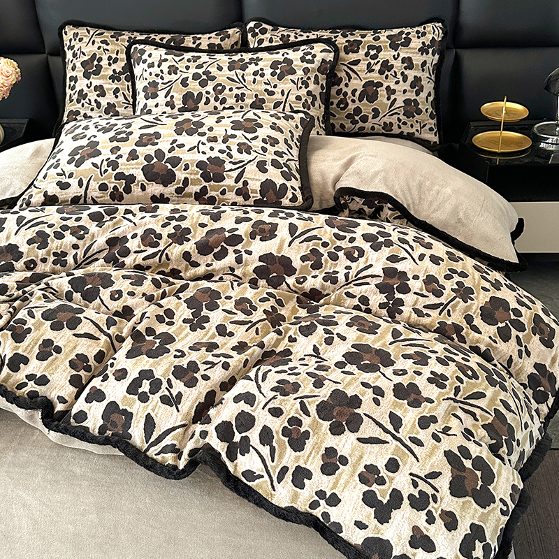 商品名称:柏薇 2025新款兔毛宽包边立体雕花牛奶绒四件套 琥珀流光
