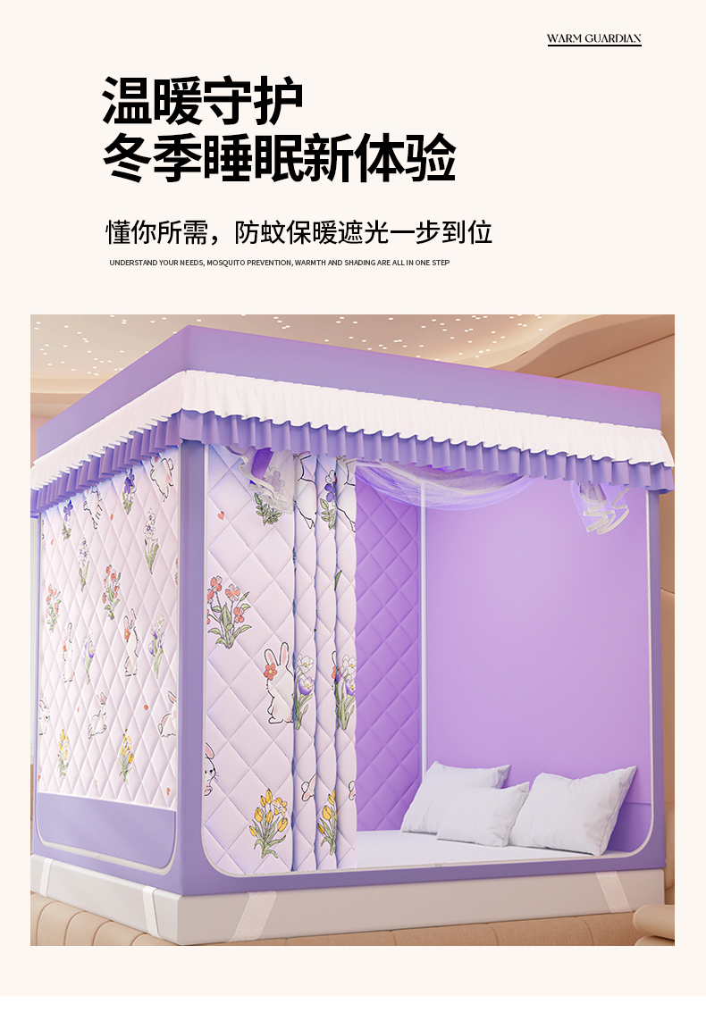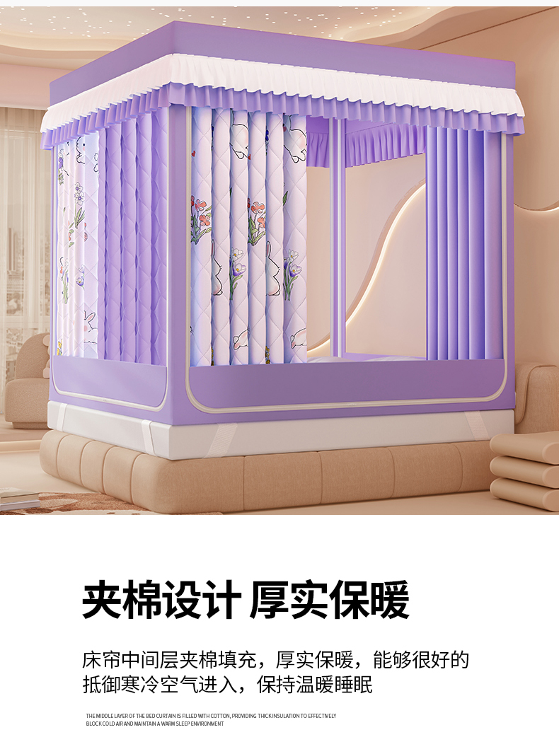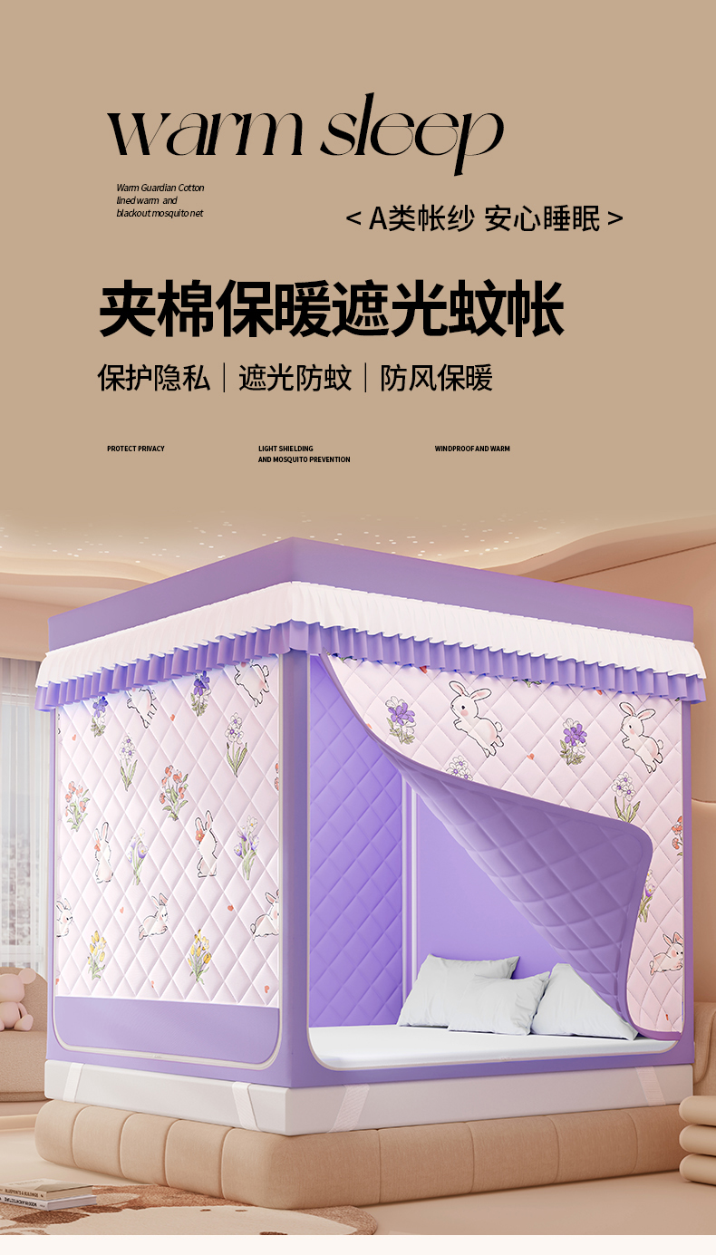 当前位置: 91家纺网 > 商品网购 > 床上用品 > 蚊帐 > 坐床式蚊帐 > 浪幔纱蚊帐 2025新款卡通印花款夹棉蚊帐 花丛小兔