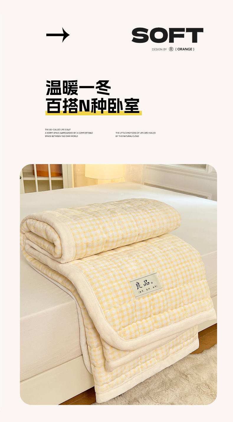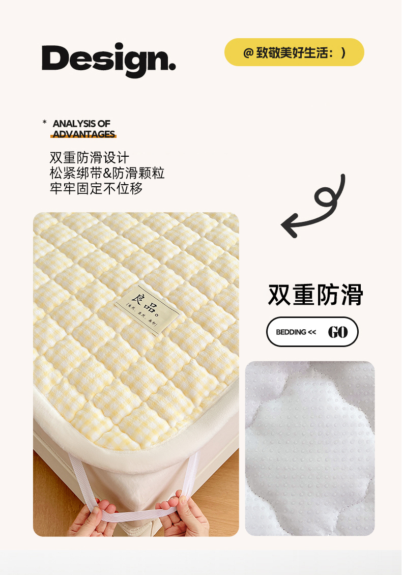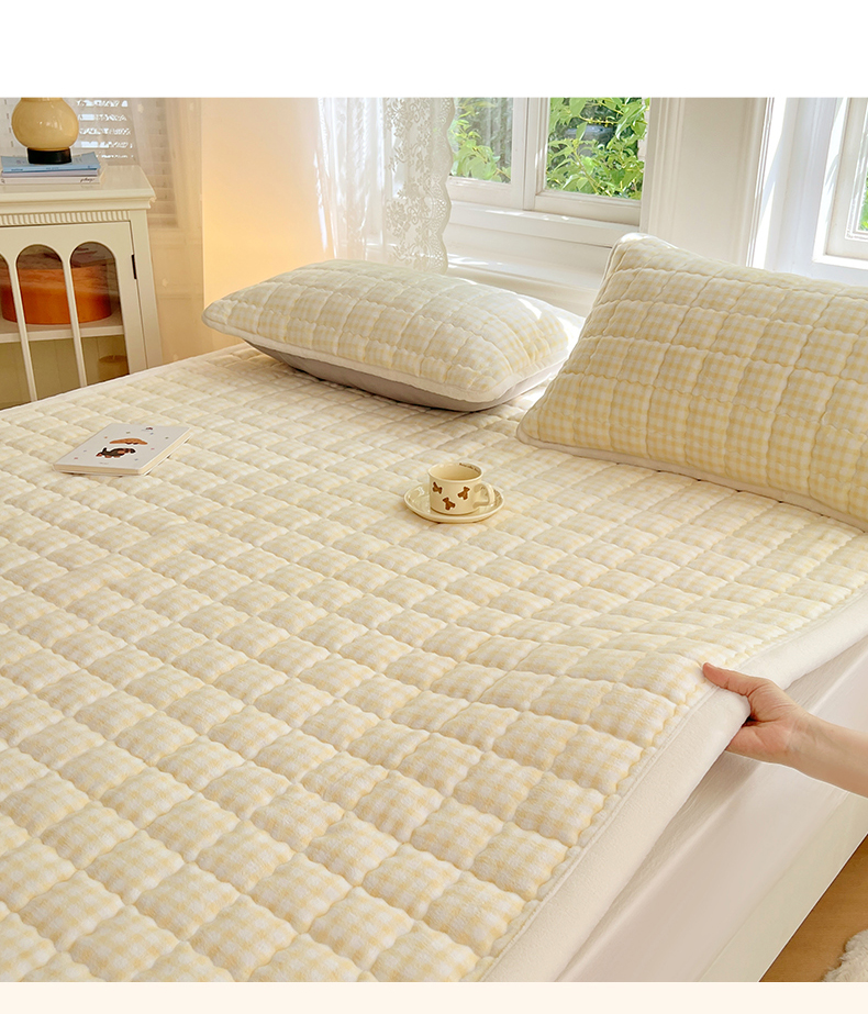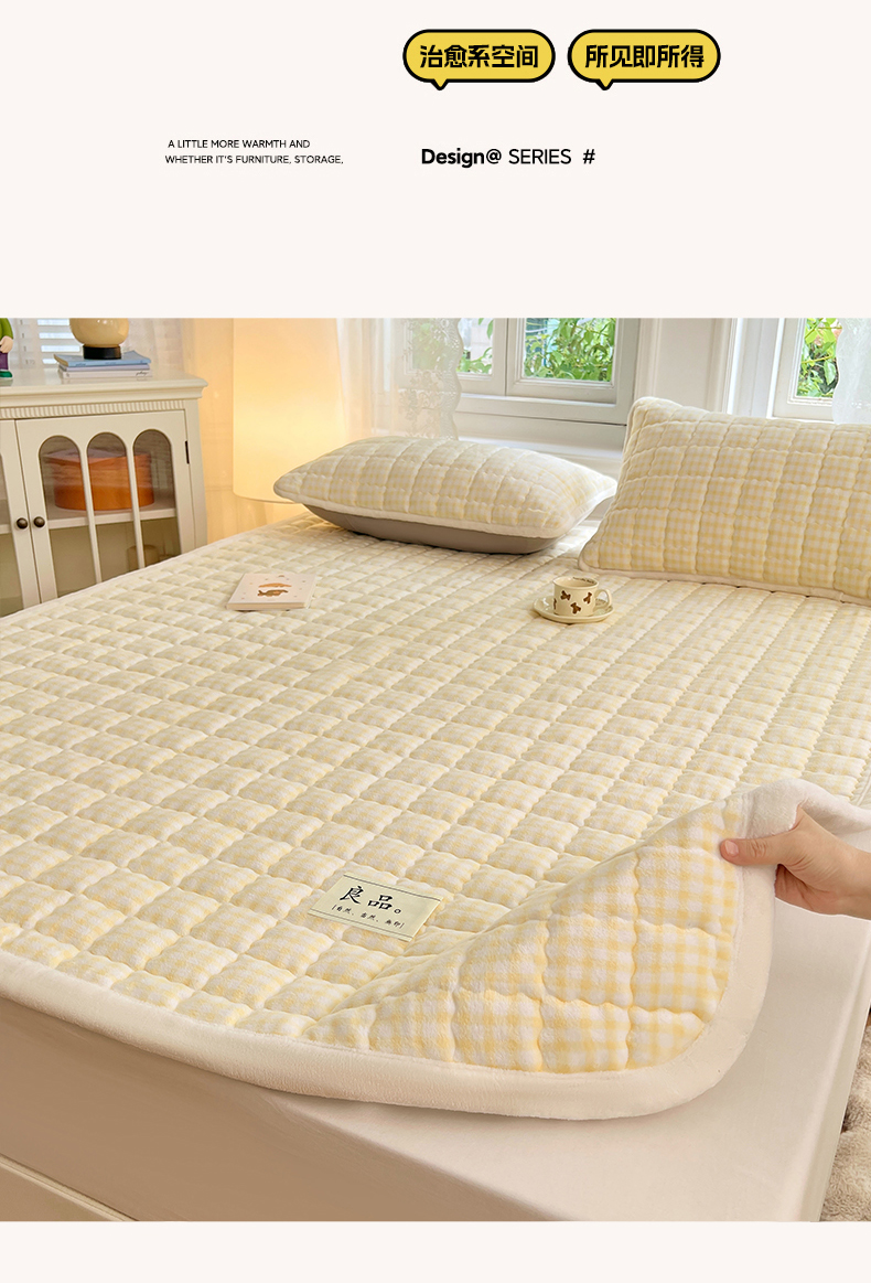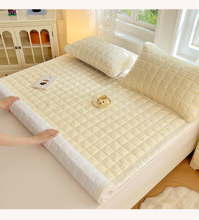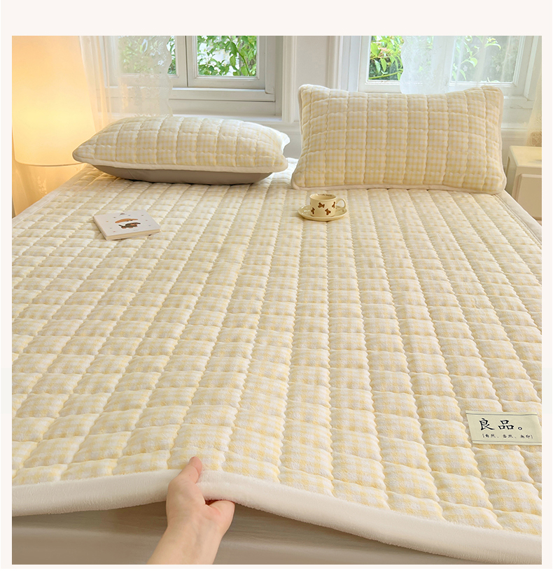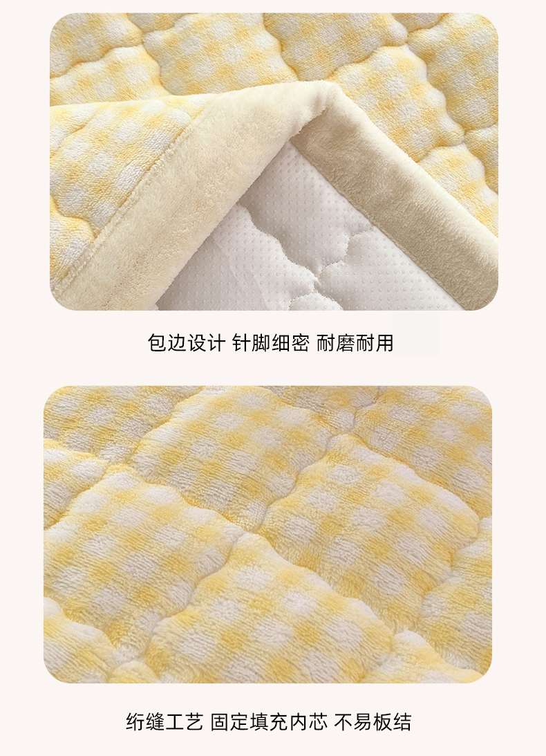 当前位置: 91家纺网 > 商品网购 > 床垫/床褥 > 普通床垫 > 三盛源 2025新款牛奶绒绗绣夹棉防滑保暖秋冬印花床护垫床褥绒床垫加厚高克重加宽包边 方格-柠檬黄