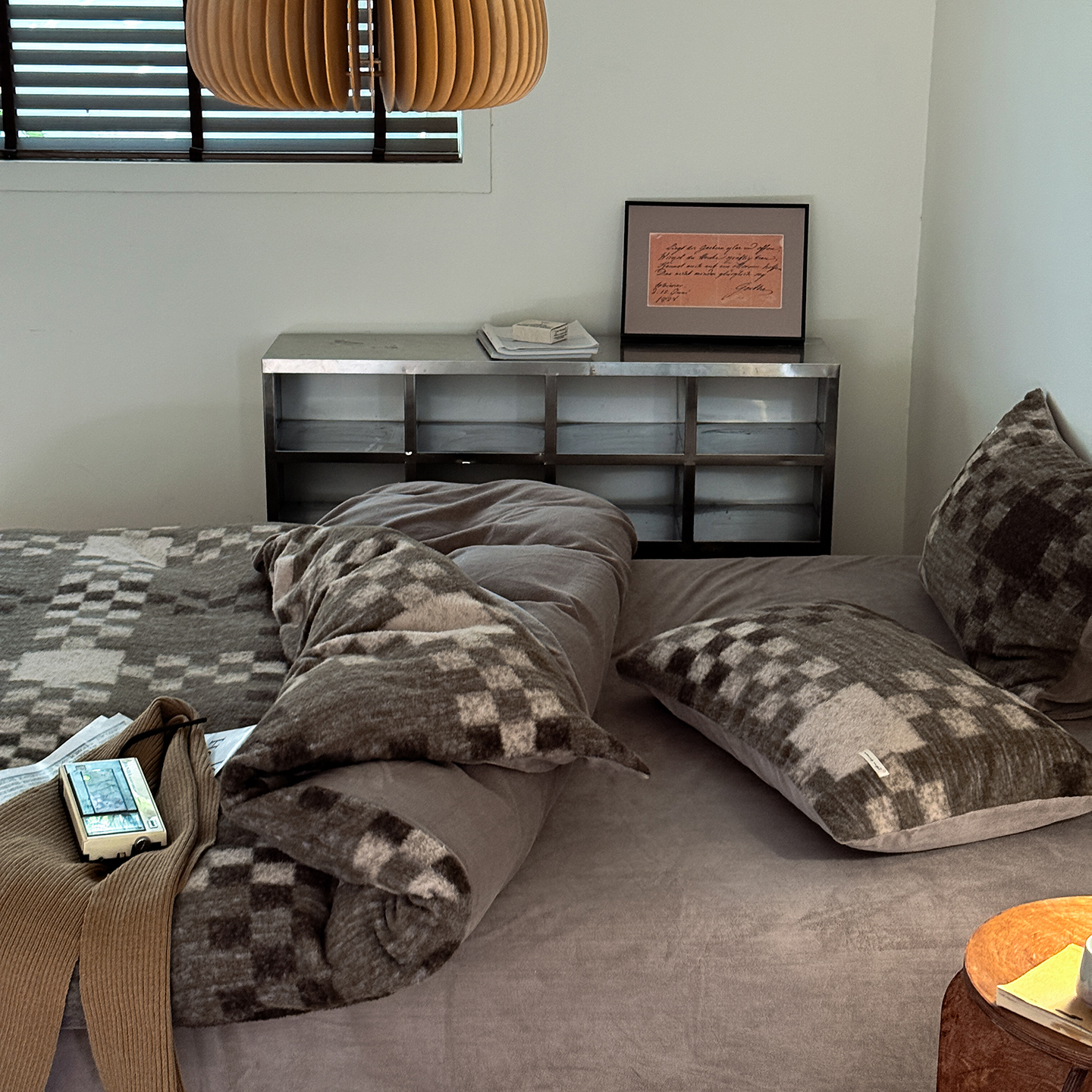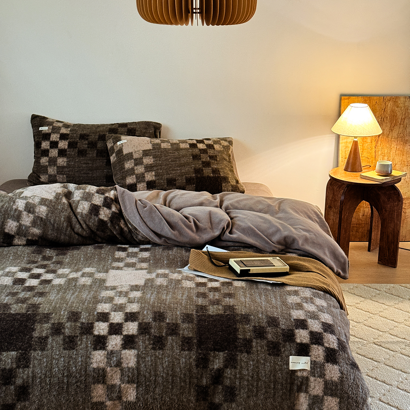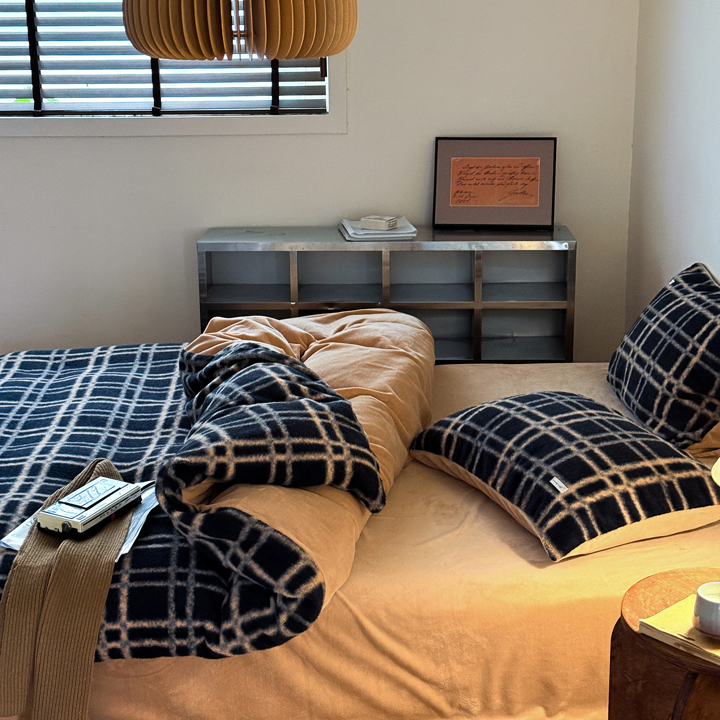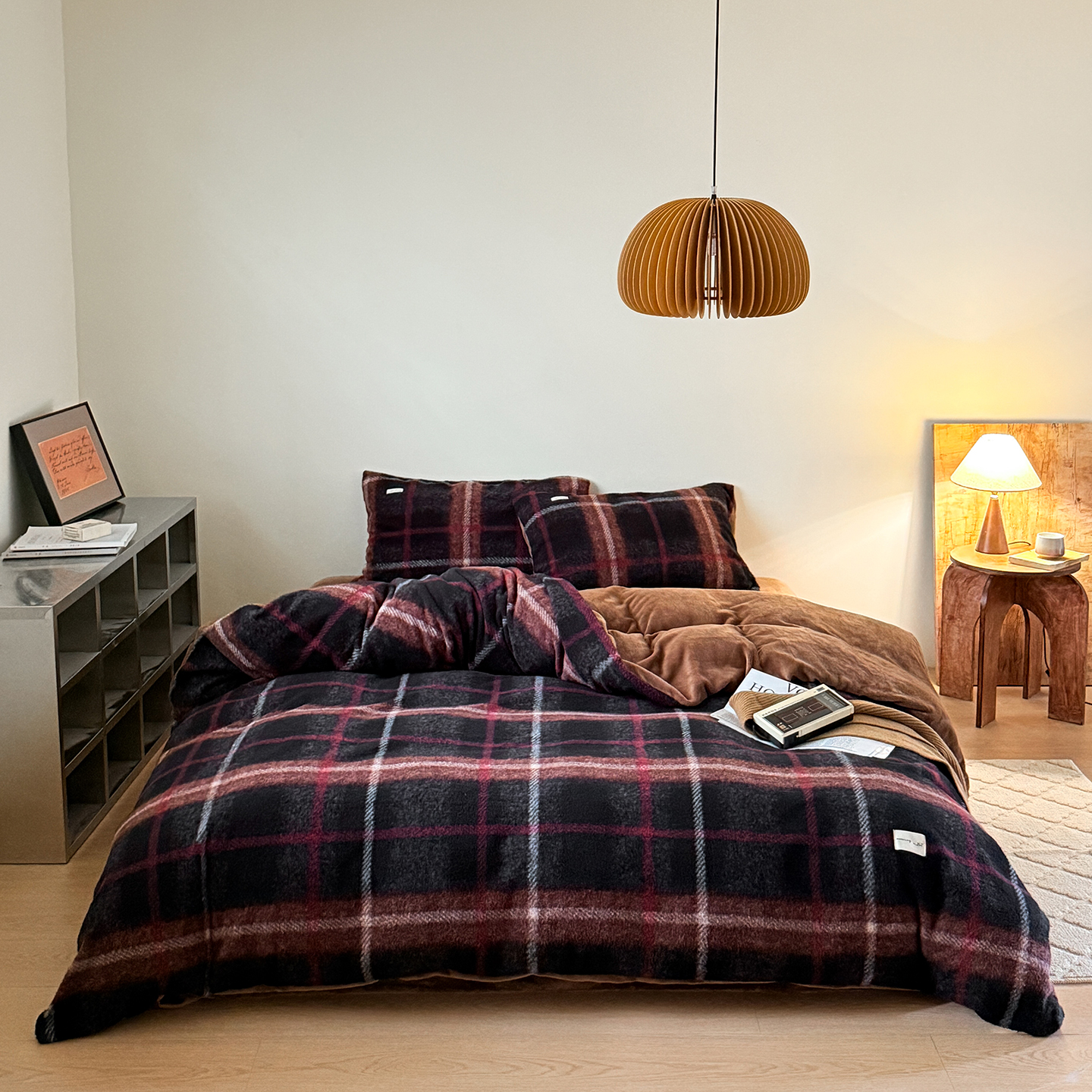 (总)小春日和 2025新款纯棉棉麻民宿中性风四件套高端全棉人字纹条纹被套加大纯色床单1.8床笠男士四件套,木笙-黑,木笙-米