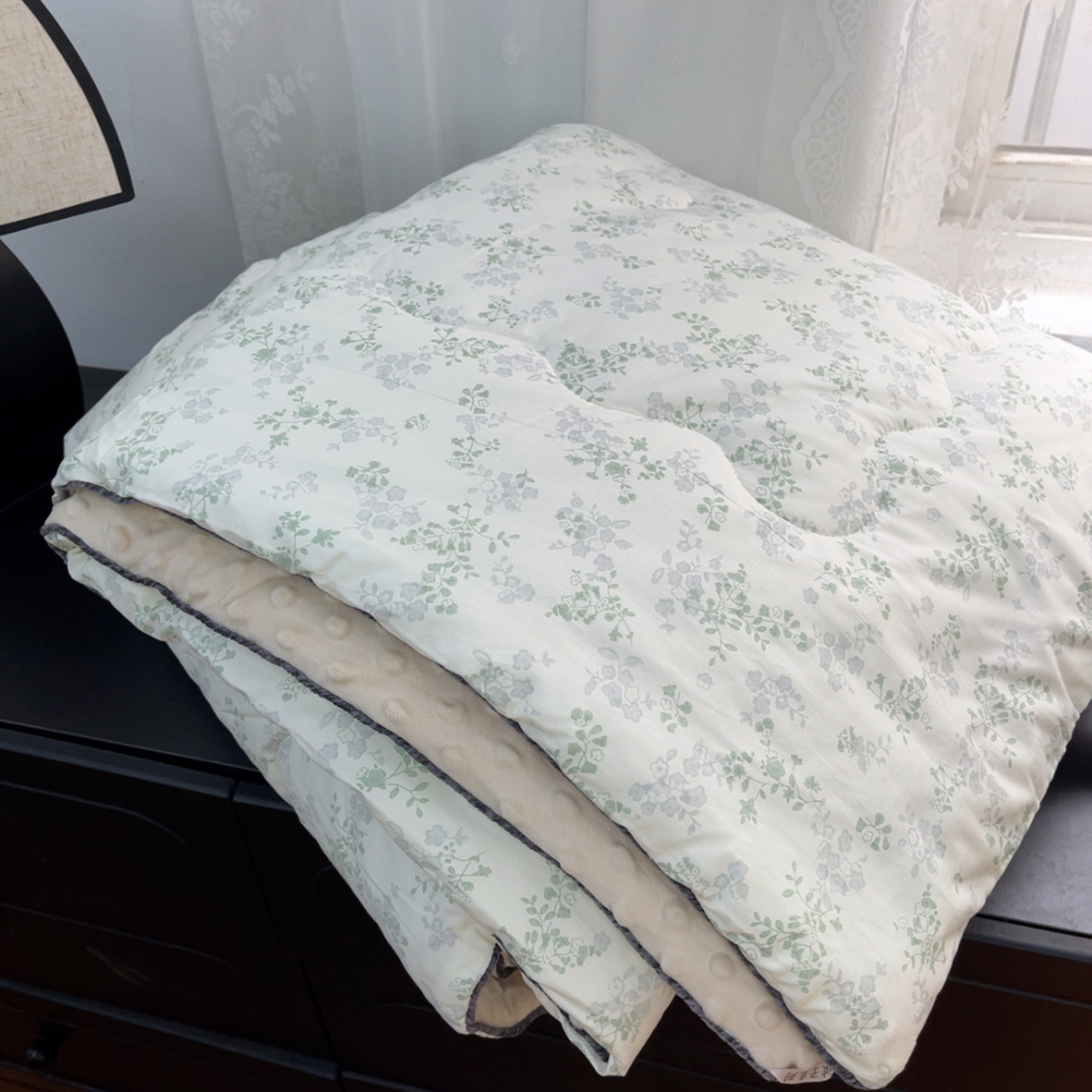 (总)暖居 2026新款一面纯棉一面绒床盖+同款纯棉豆豆被跑量,兰意,冰淇淋,绿芽,奶油波罗,森系绿野,疏影,樱桃密果,黑巧豹纹,小花,星月
