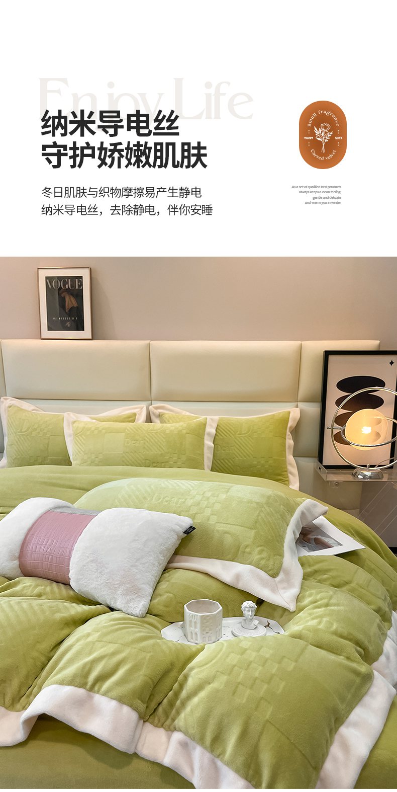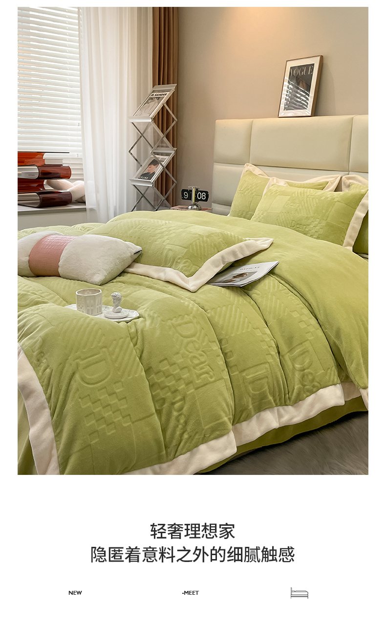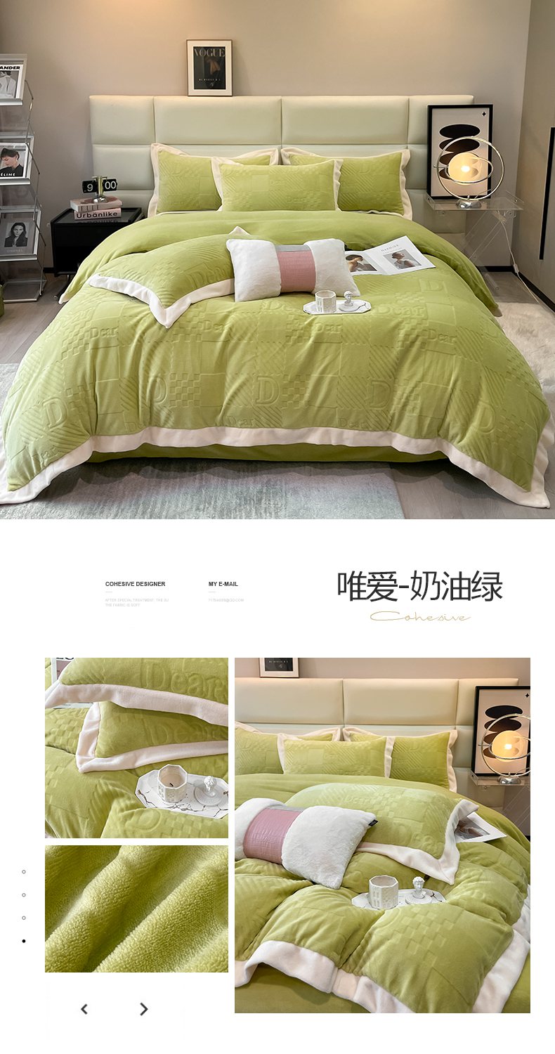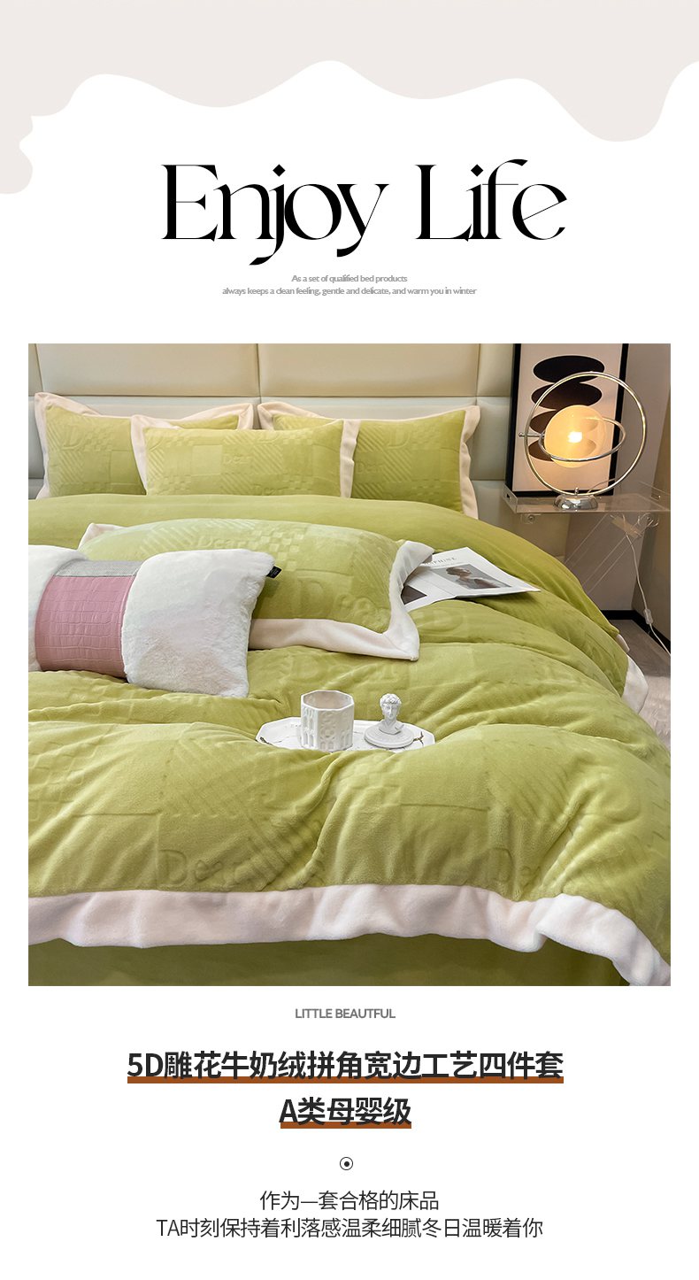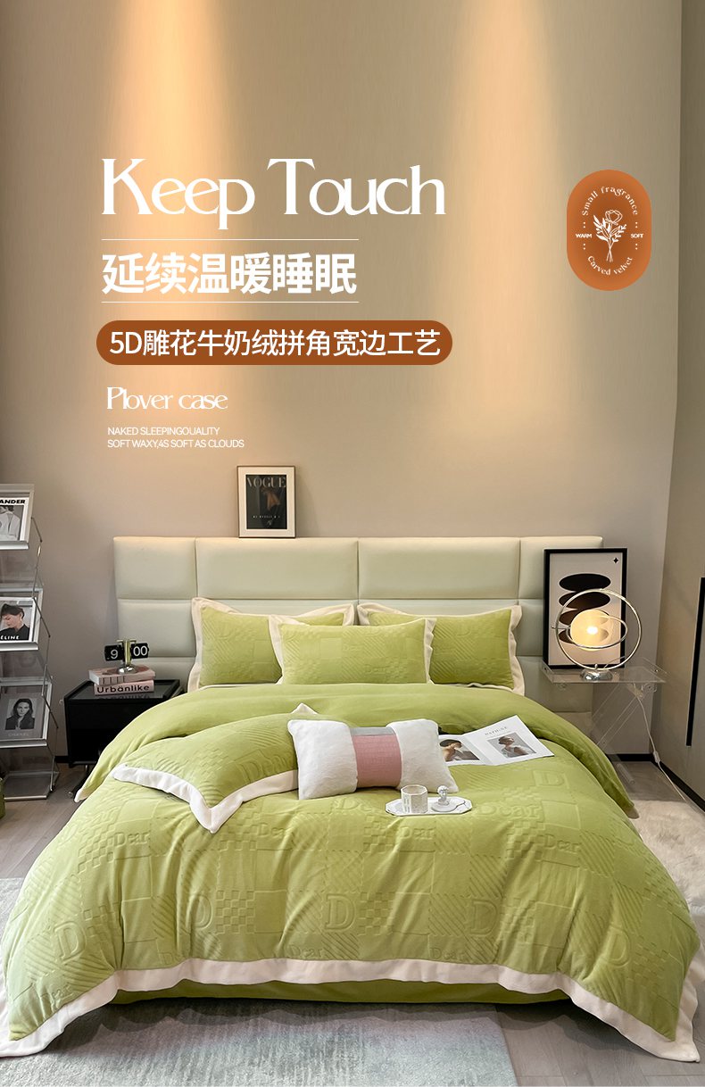 当前位置: 91家纺网 > 商品网购 > 床品套件 > 四件套 > 牛奶绒四件套 > 艾佳 2025新款5D雕花牛奶绒拼角宽边工艺四件套-唯爱系列 唯爱-奶油绿