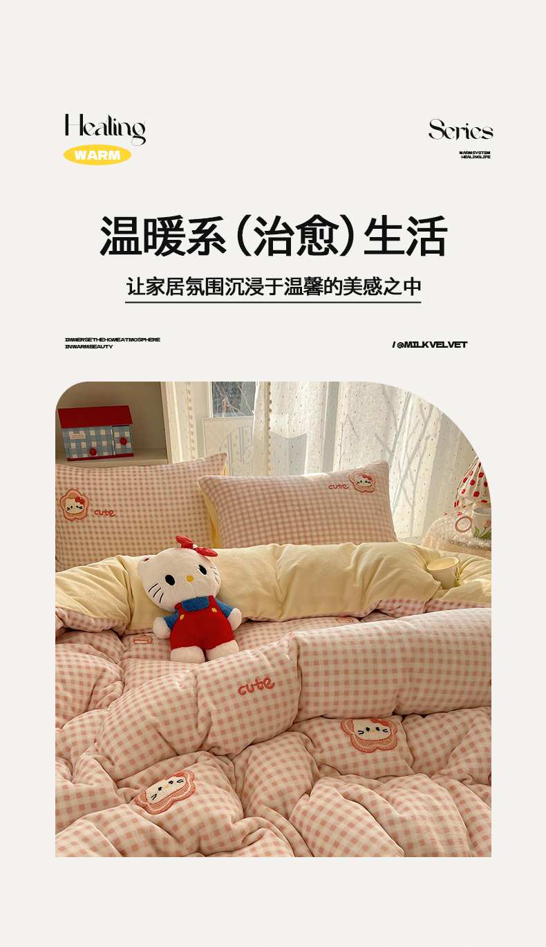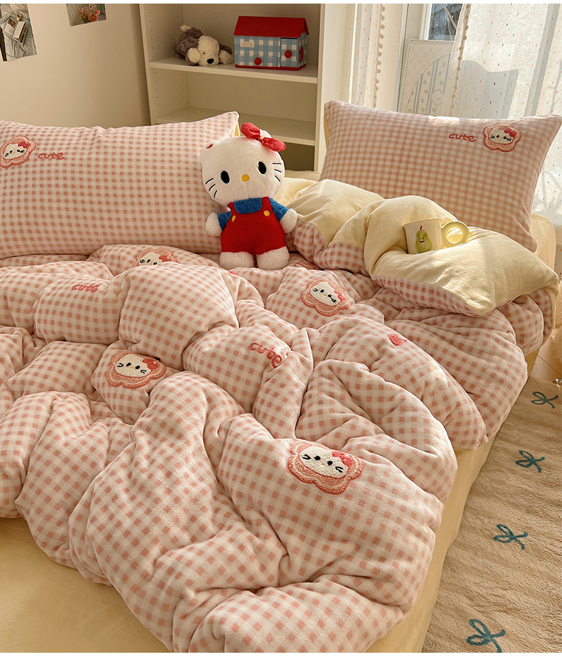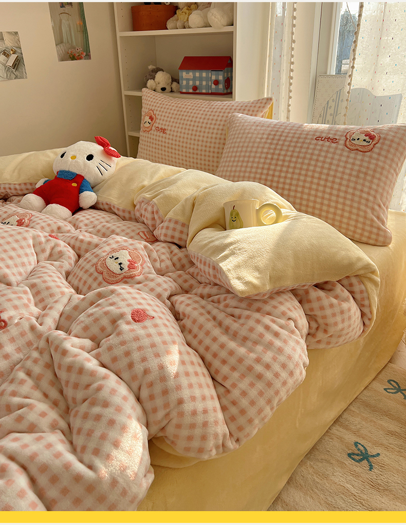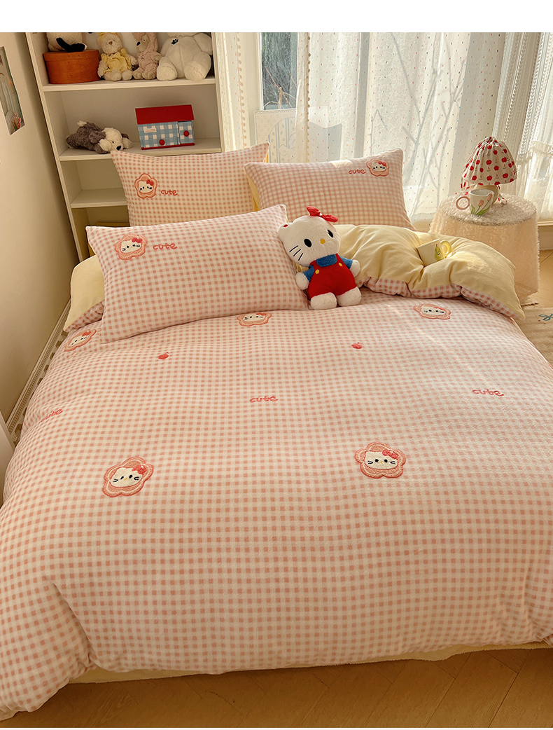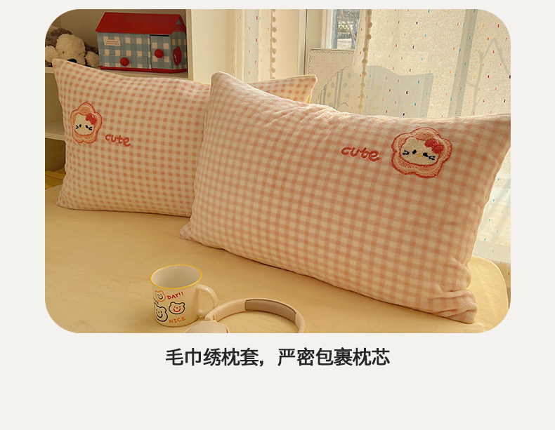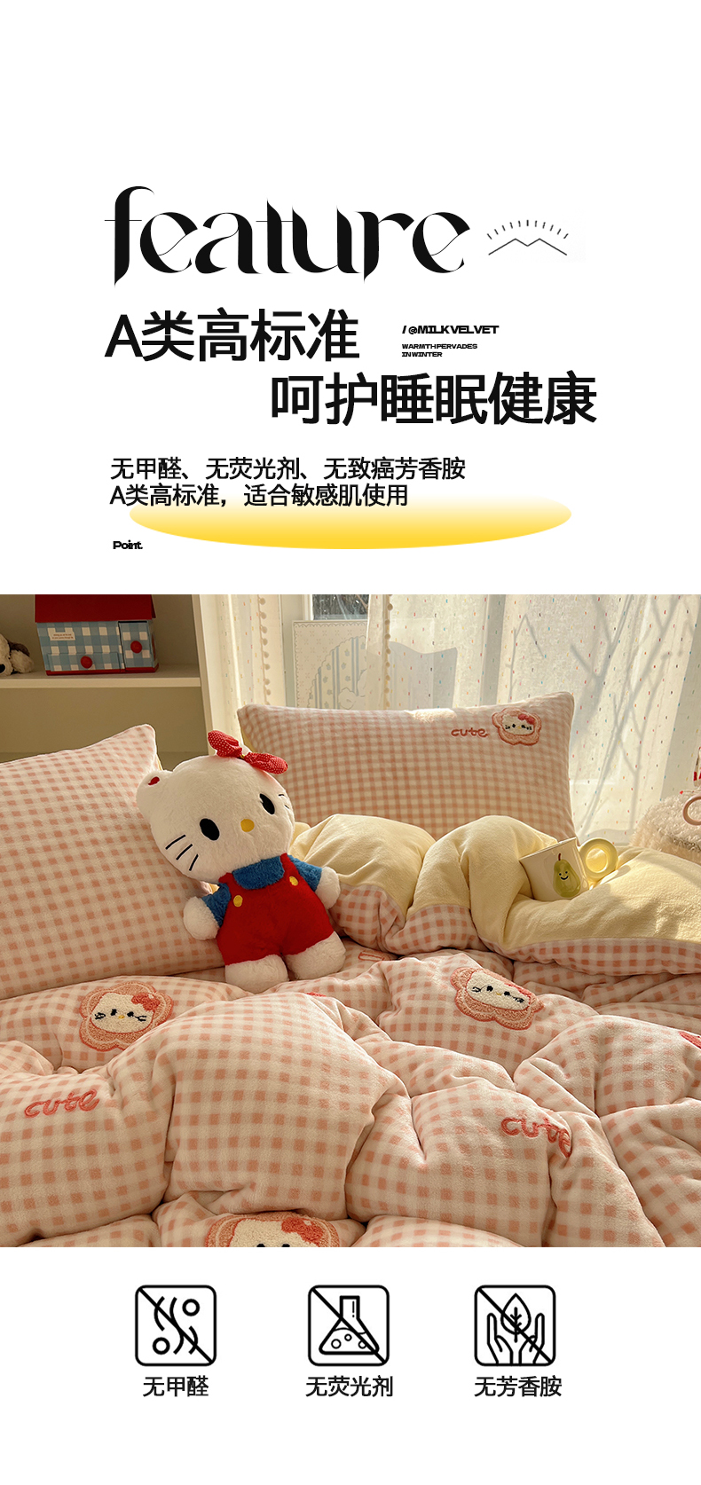当前位置: 91家纺网 > 商品网购 > 床品套件 > 四件套 > 牛奶绒四件套 > 桃子家居 2025新款A类ins毛巾绣少女猫咪可爱格子混搭加厚牛奶绒系列四件套 绒毛巾绣-花儿猫粉黄