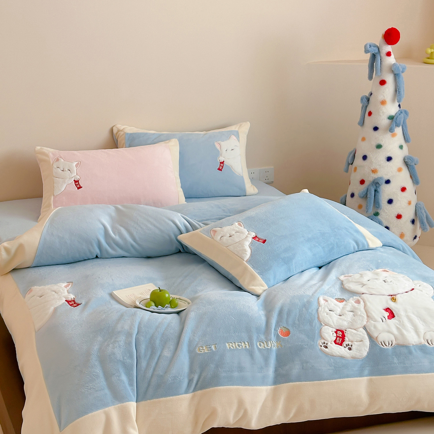(总)JUICY 橘滋家纺 2025新款高定敲可爱招财猫牛奶奢绒系列四件套 (线上控价 券后不低于368元)