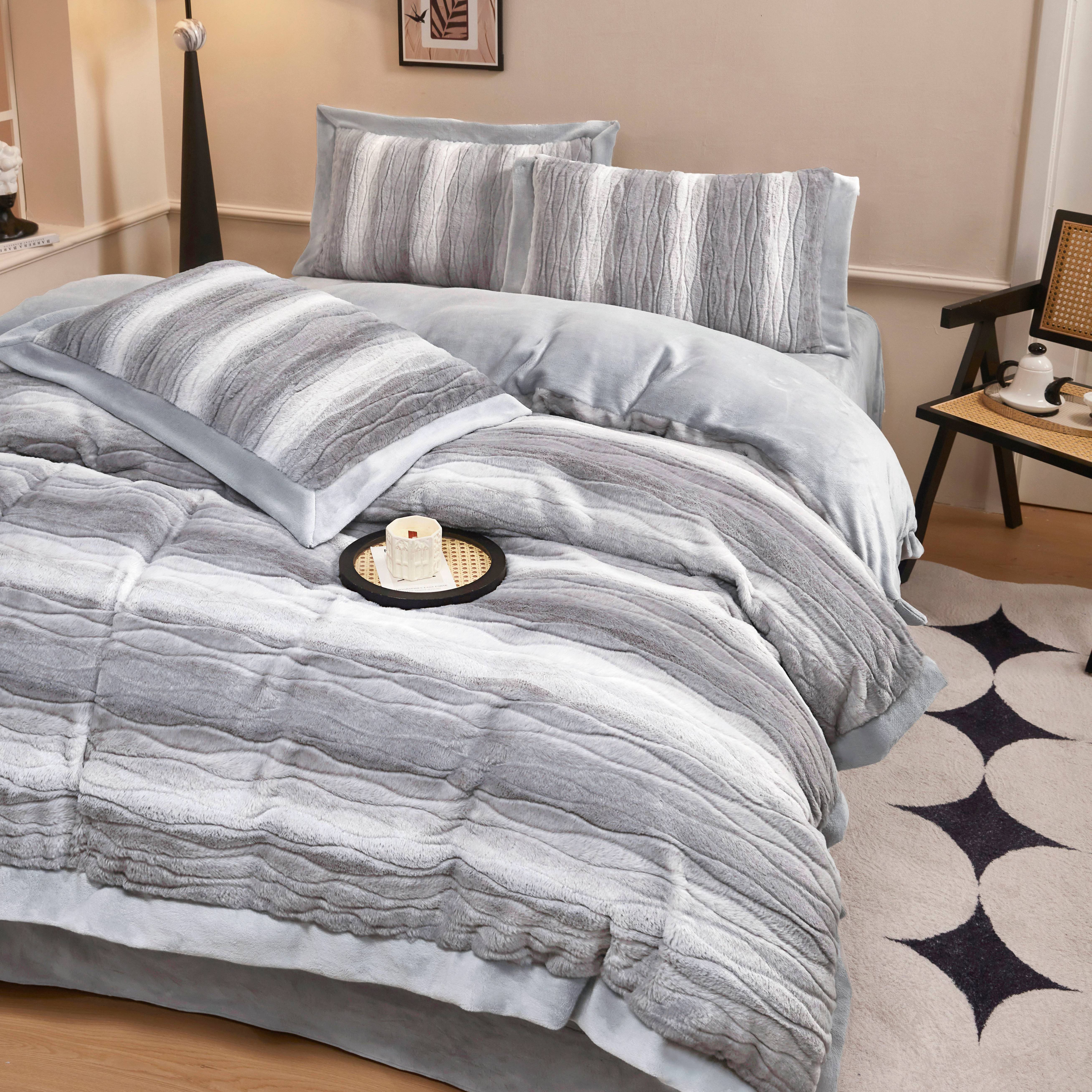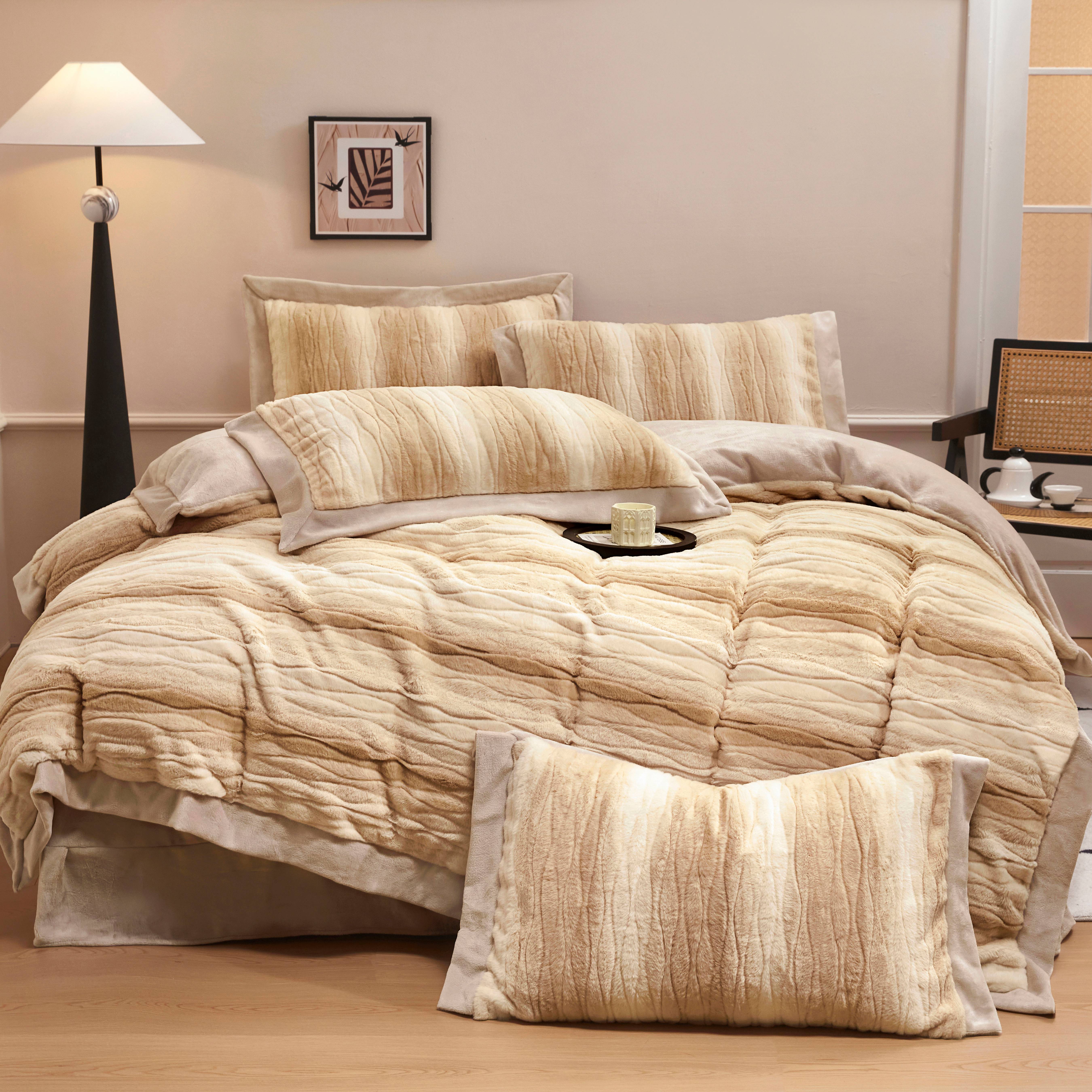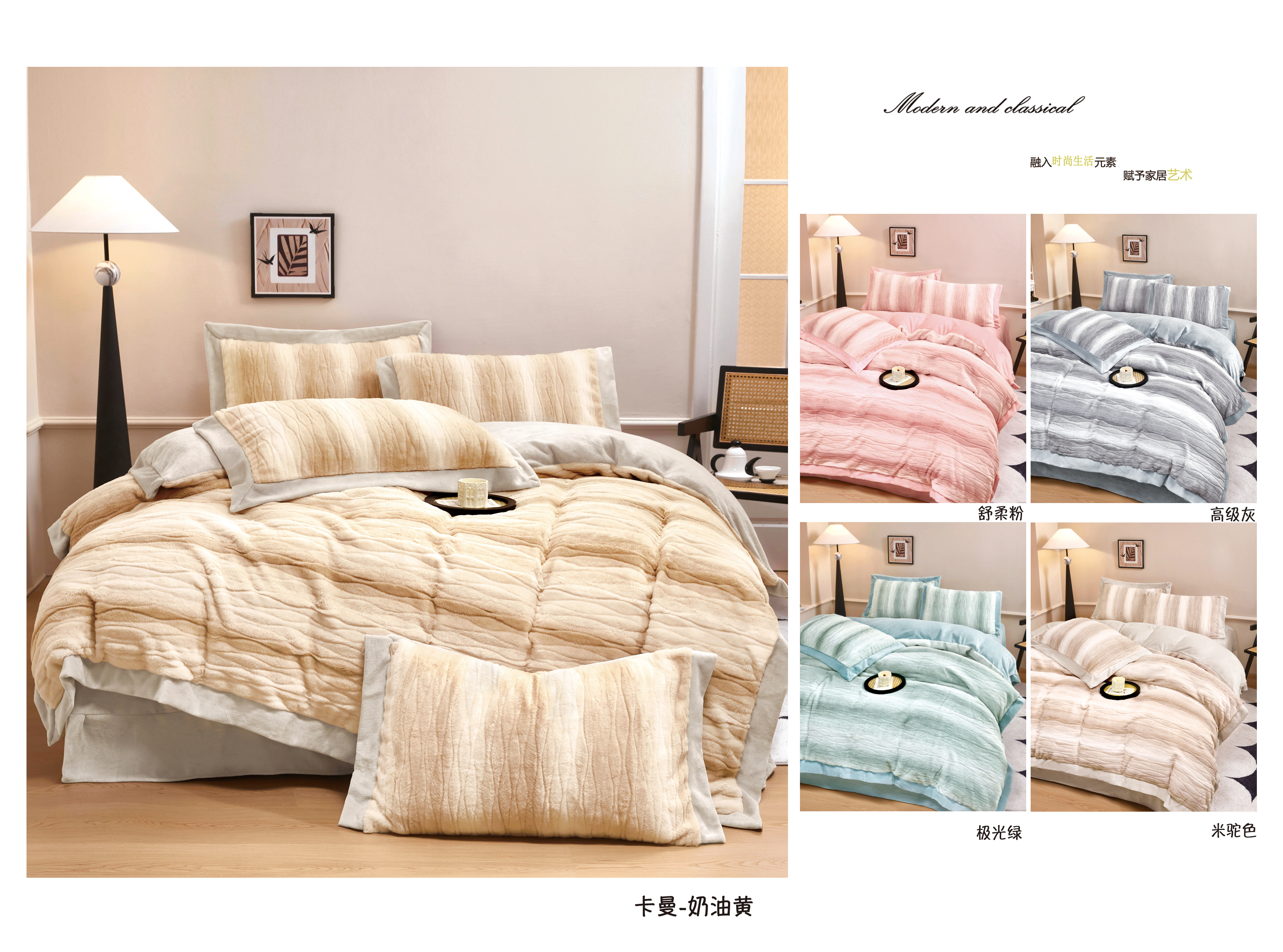 (总)苏木年华 2025新款兔毛绒双拼雕花绒四件套-卡曼,奶油黄,高级灰,极光绿,米驼色,舒柔粉