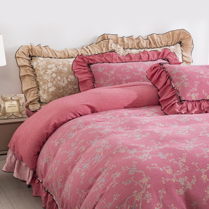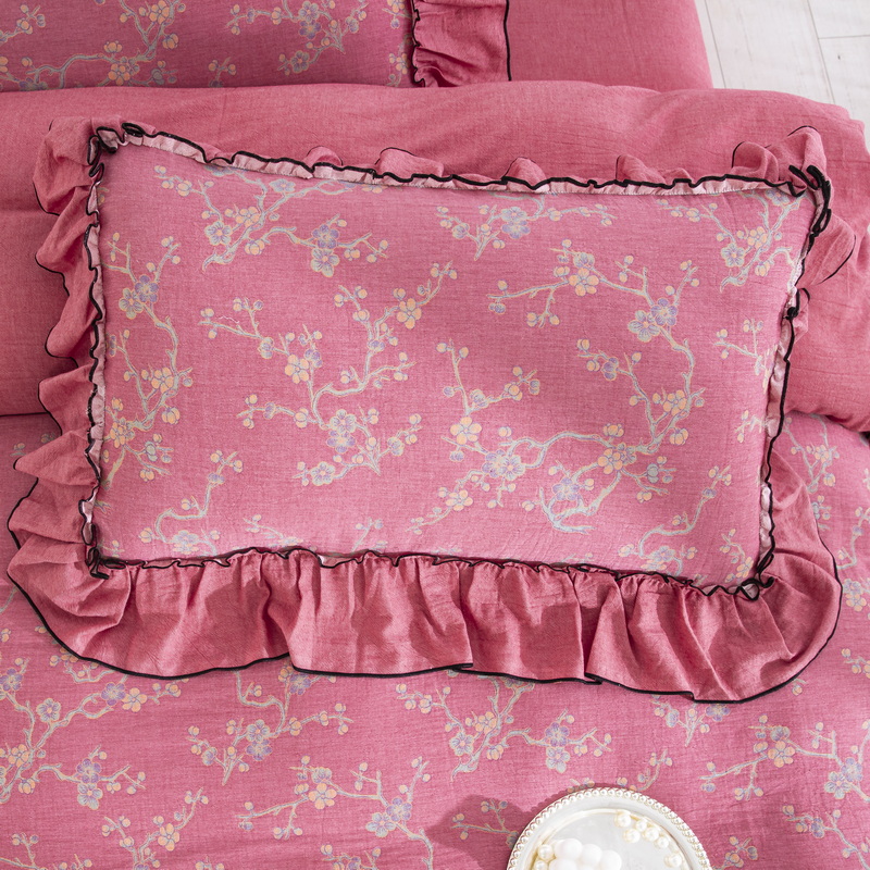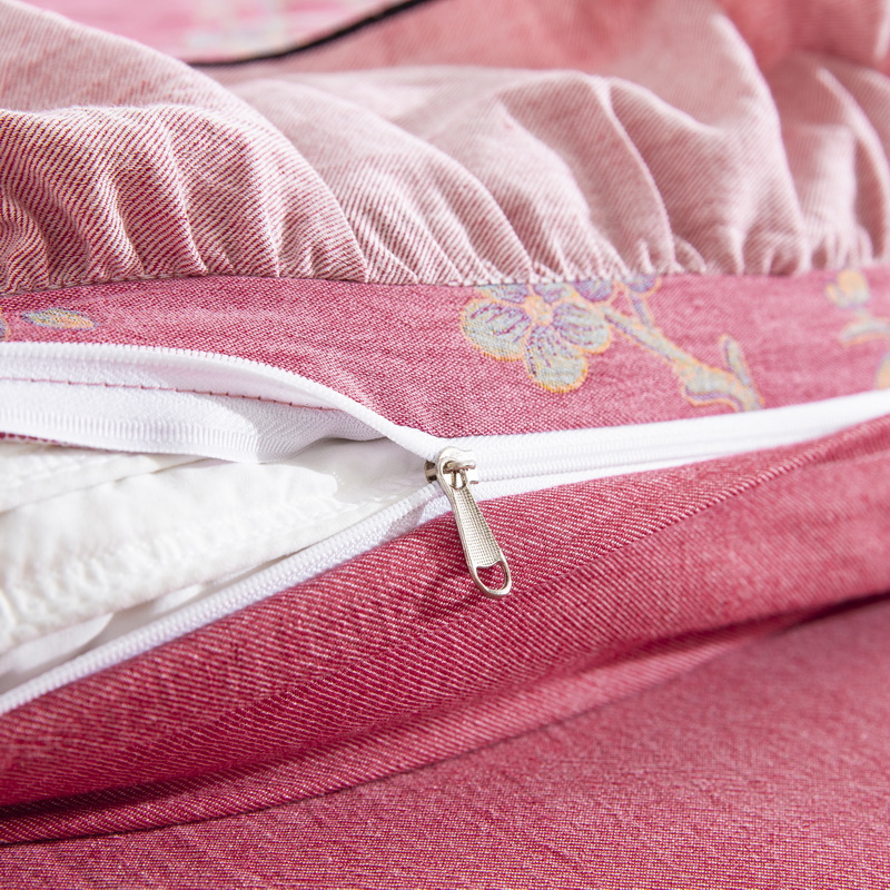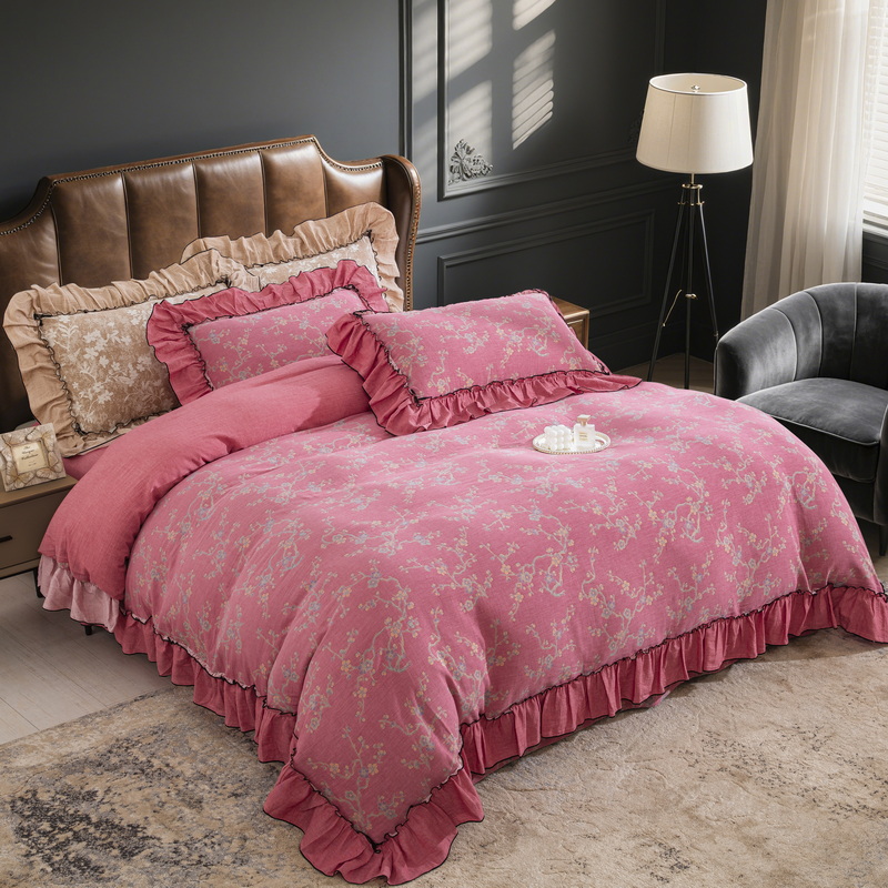 鲁爱家纺供货 2025新款韩版色织提花四件套 梅醉春秋-粉
