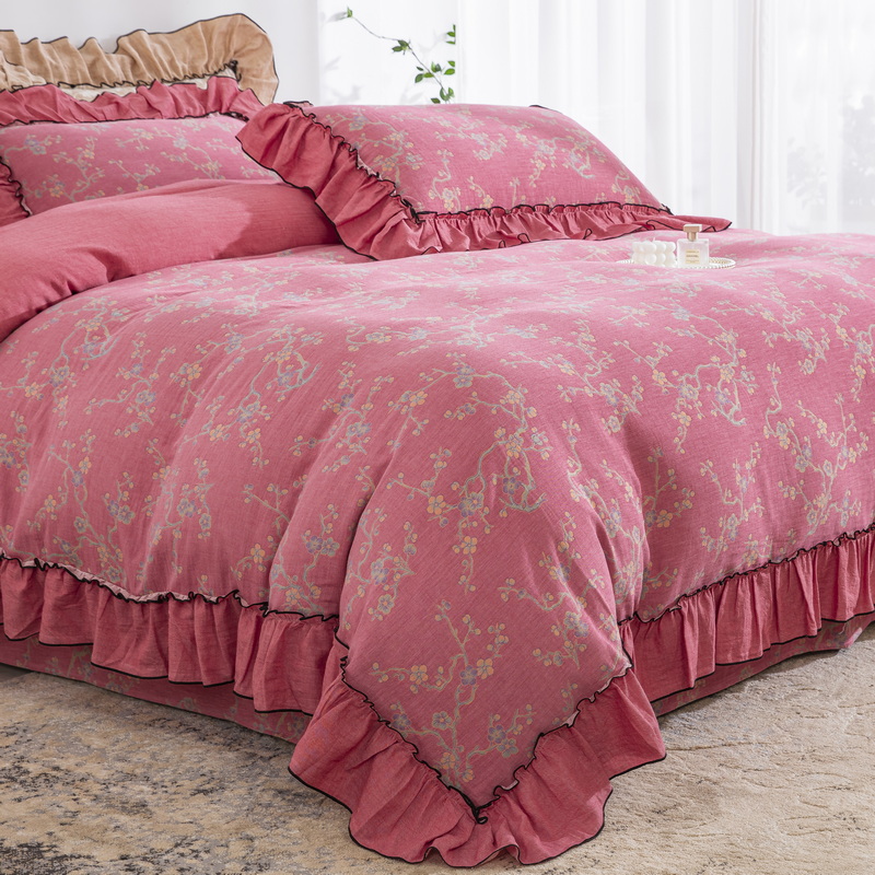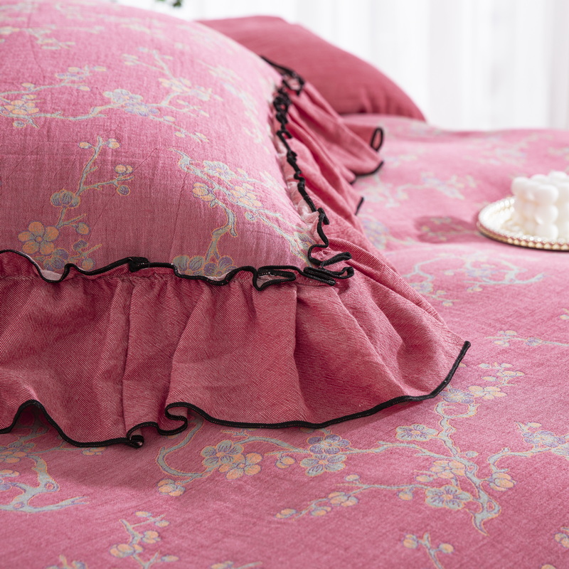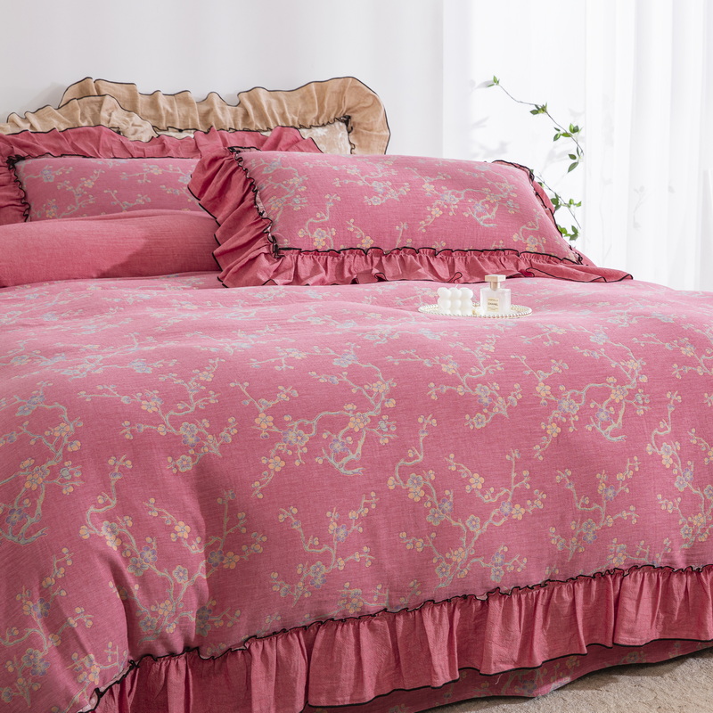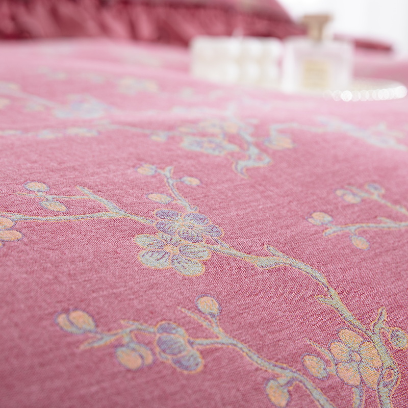 商品名称:鲁爱家纺供货 2025新款韩版色织提花四件套 梅醉春秋-粉