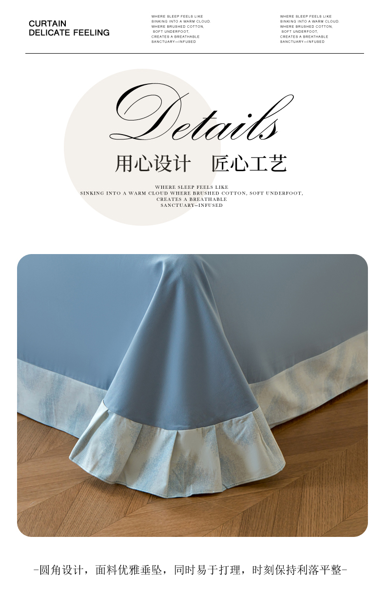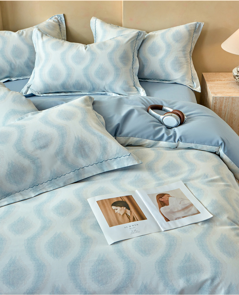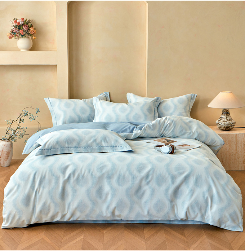 商品名称:洺兰家居 2025年新款秋冬加厚全棉磨毛四件套纯棉生态磨毛印花套件 雾里看花-蓝