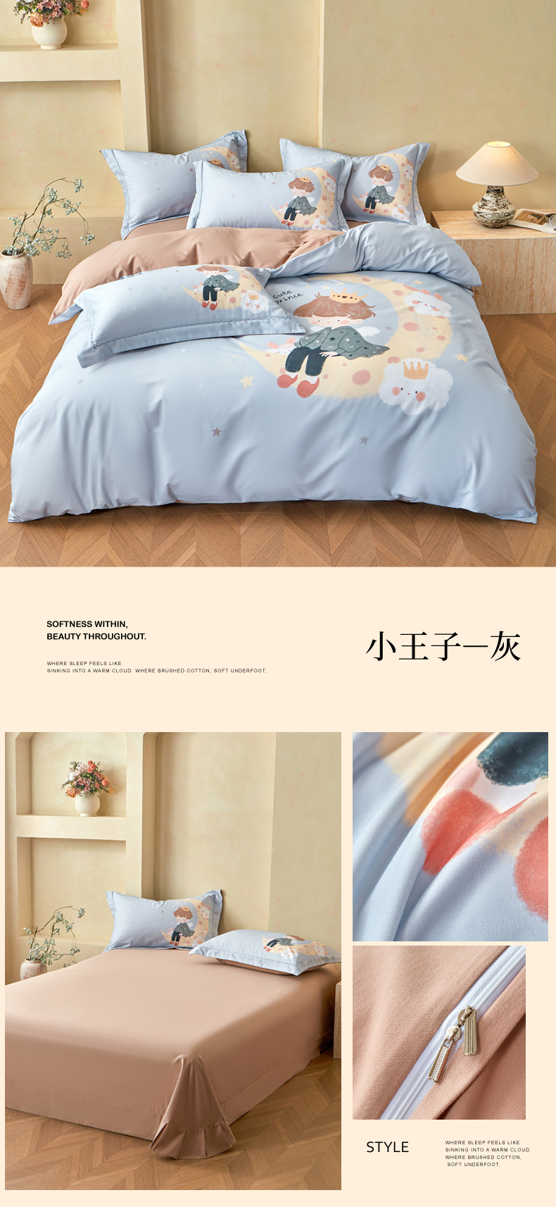 洺兰家居 2025新款13070全棉单被套,小王子