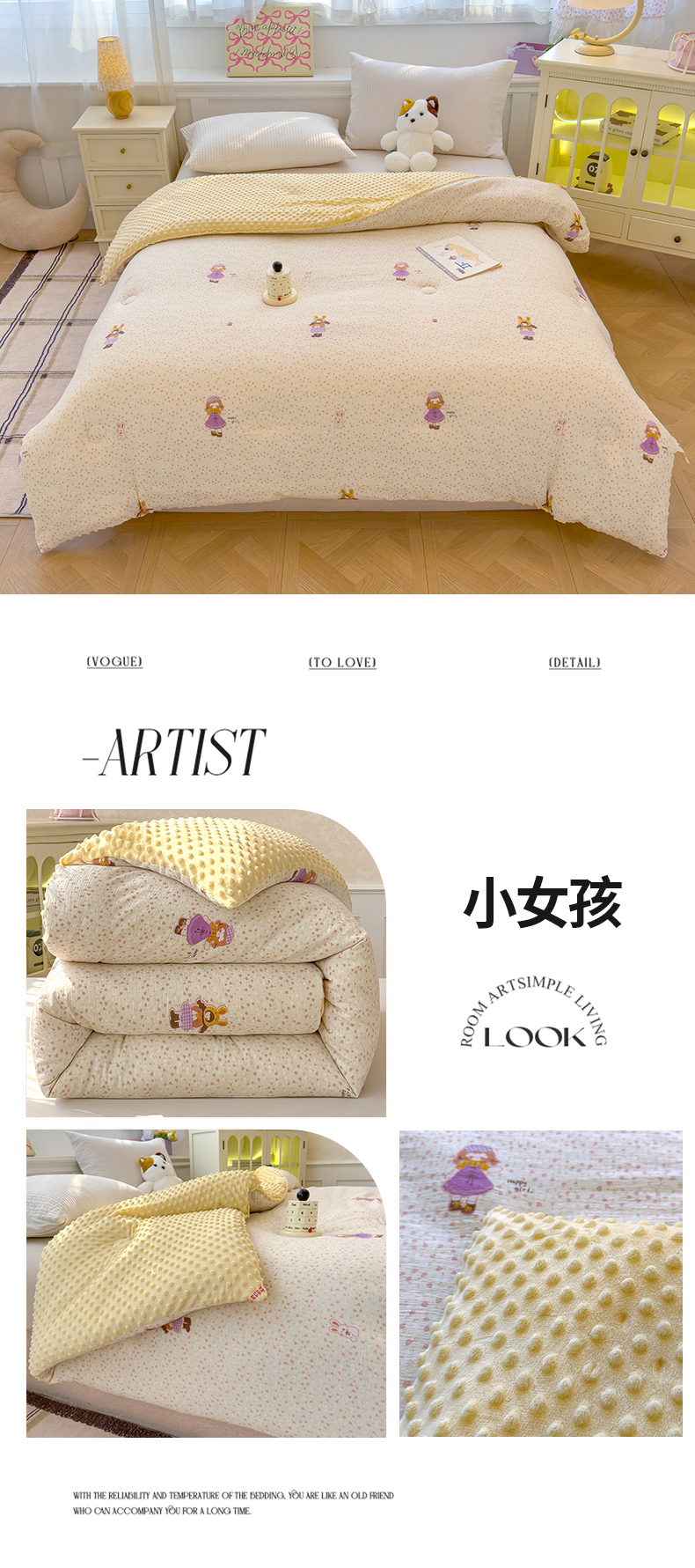 • 91家纺网 家纺一手货源 找家纺 好梦来家纺(原锦茂家纺) 2025新款水洗高克重双层纱豆豆被子加厚保暖被芯春秋被冬被 小女孩