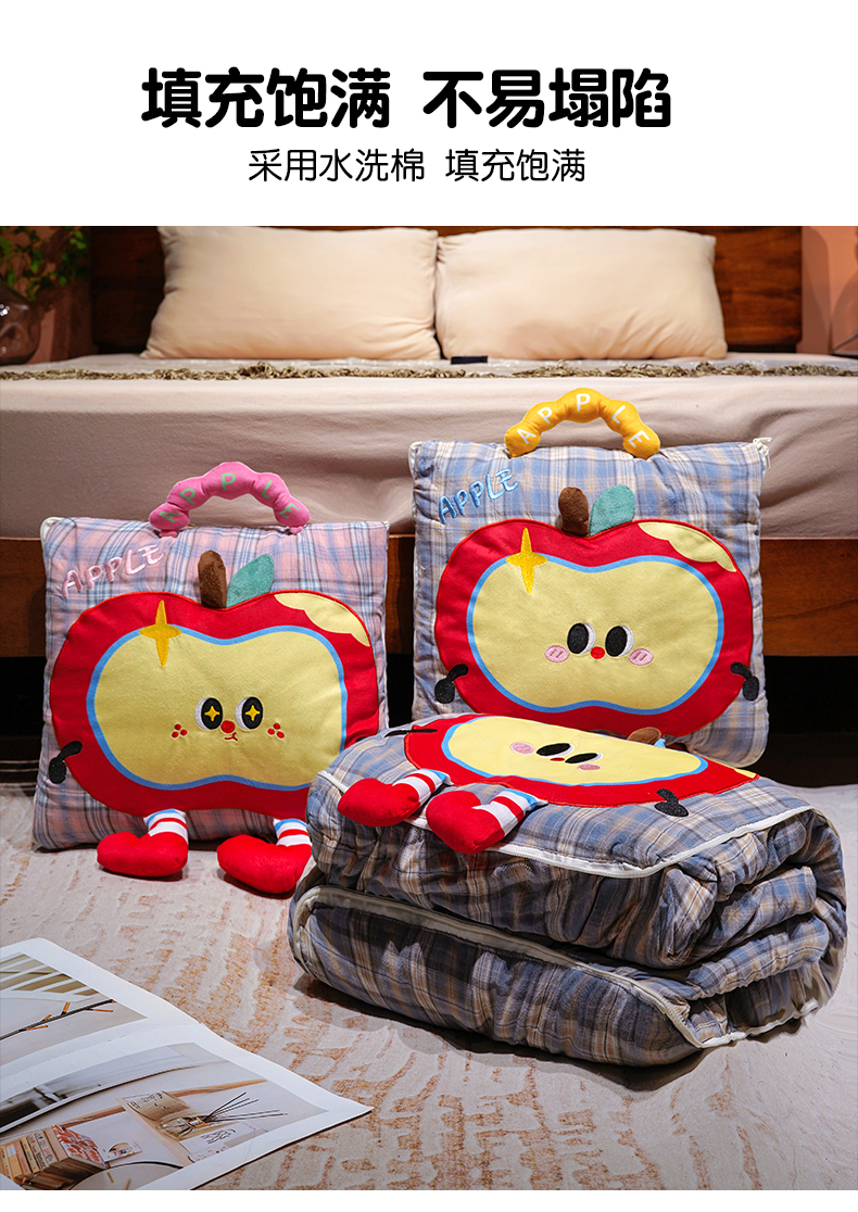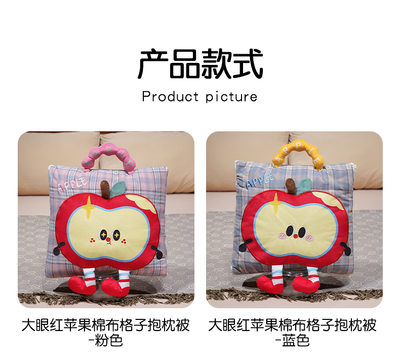当前位置: 91家纺网 > 商品网购 > 居家日用 > 靠垫/抱枕 > 仟亿莱 2025新款大眼红苹果格子布抱枕被 粉格机智大眼