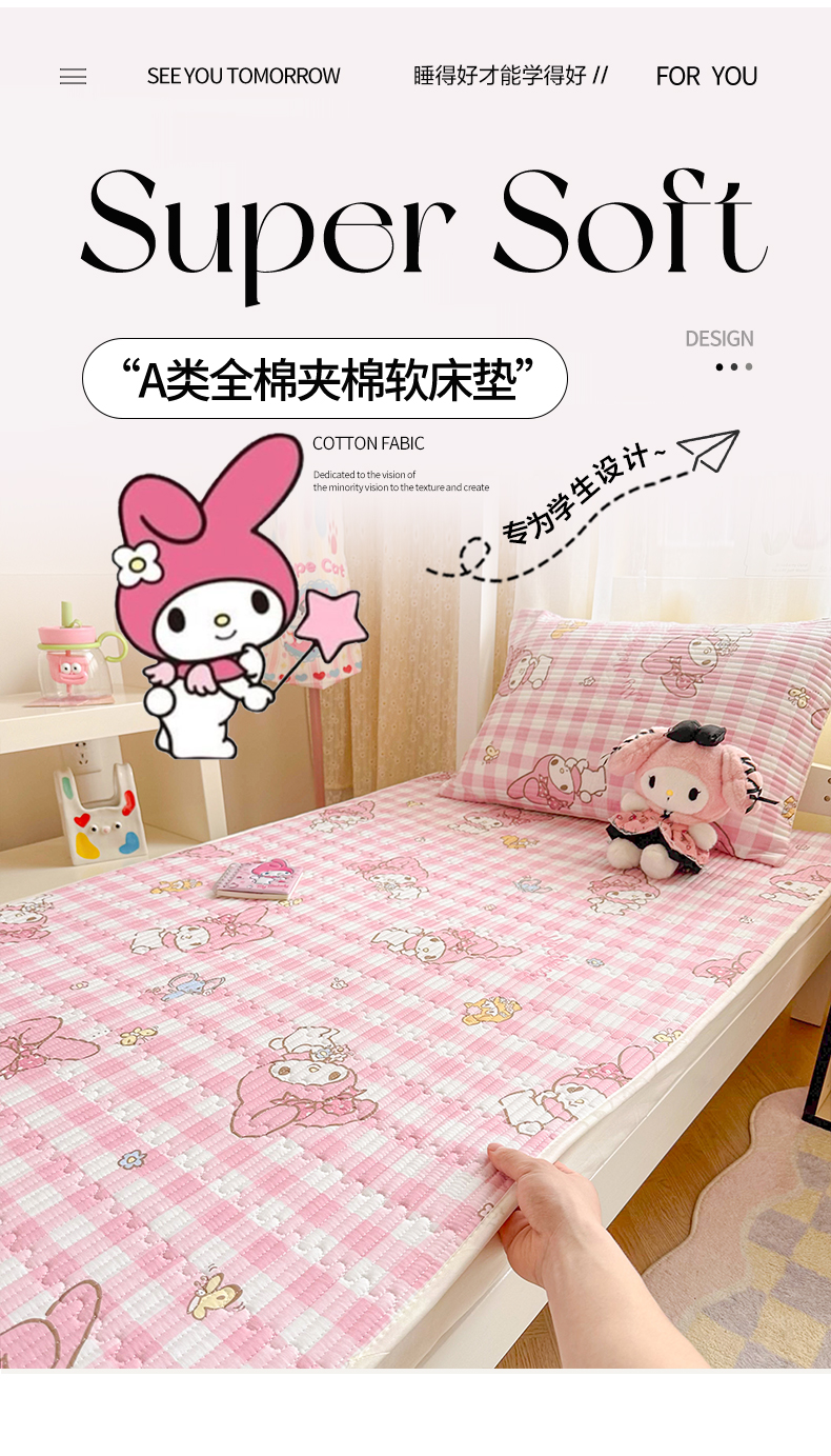 当前位置: 91家纺网 > 商品网购 > 床垫/床褥 > 普通床垫 > 妮可 2025热款学生床全棉夹棉多功能床垫-床盖 粉格美乐蒂