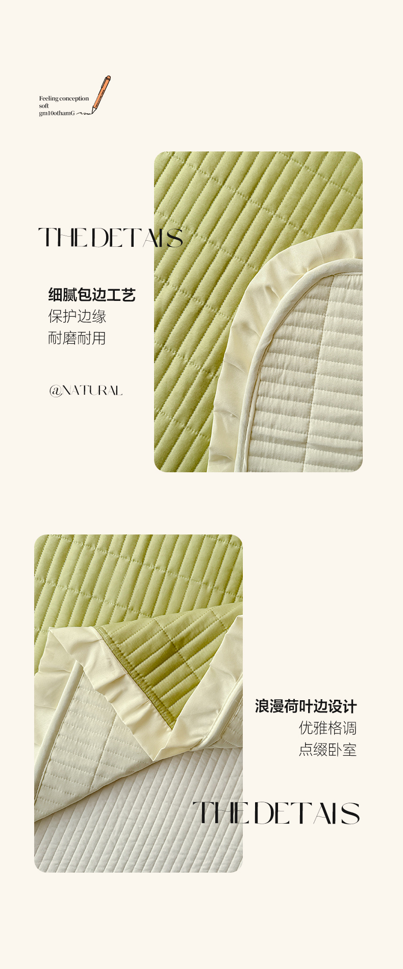 • 91家纺网 家纺一手货源 找家纺 (总)妮可 2025新款荷叶边纯棉绗缝四季款多功能床盖,奶油黄,冰湖蓝,豆豆沙,梦幻粉,气质灰,森林绿,芝兰紫