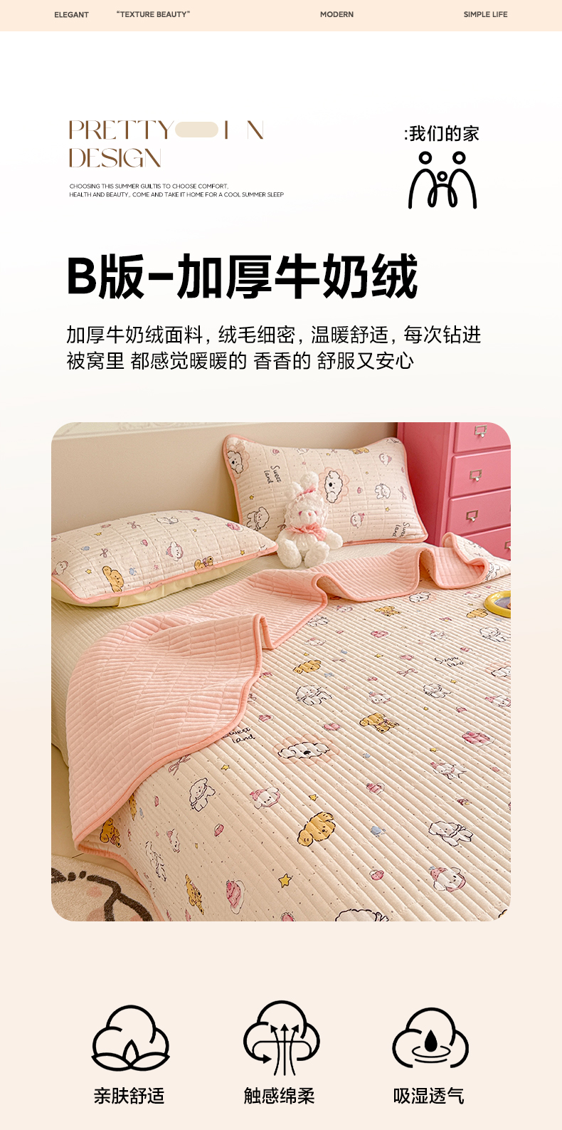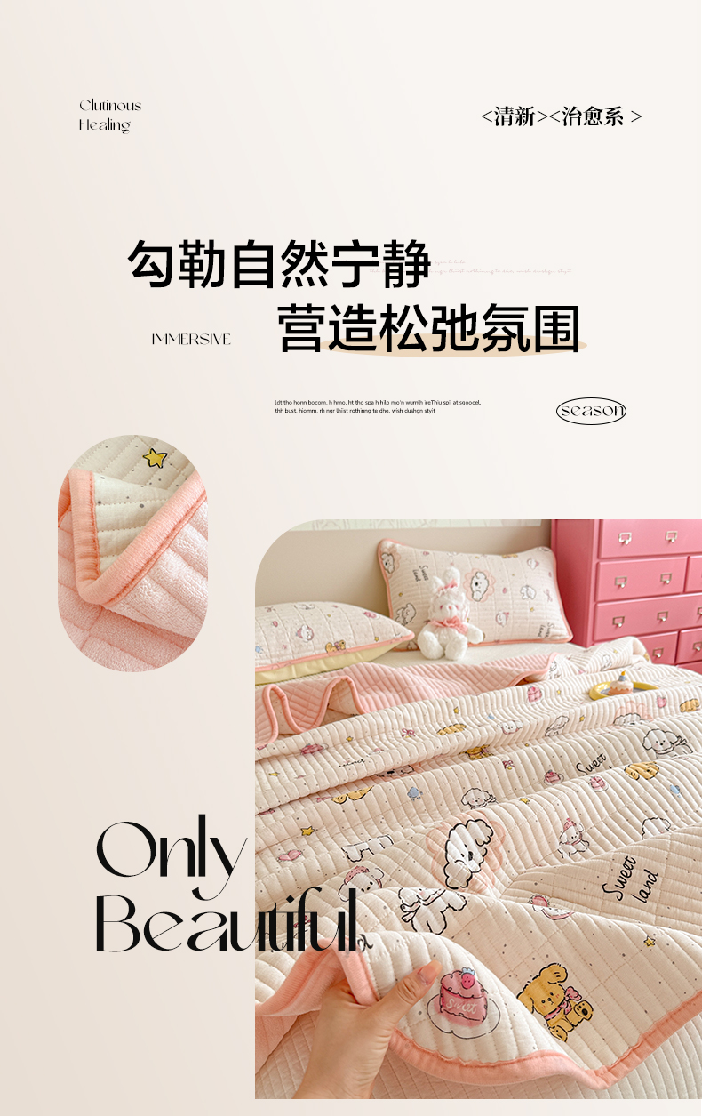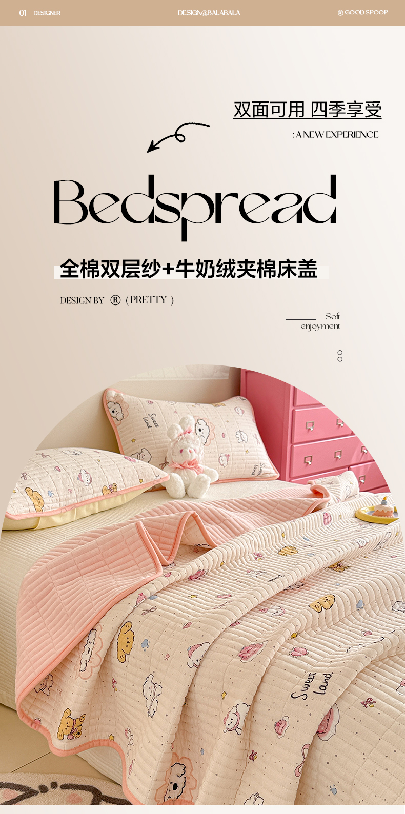 • 91家纺网 家纺一手货源 找家纺 妮可 2025新款跑量款全棉双层纱绒四季可用床盖系列 甜心乐园