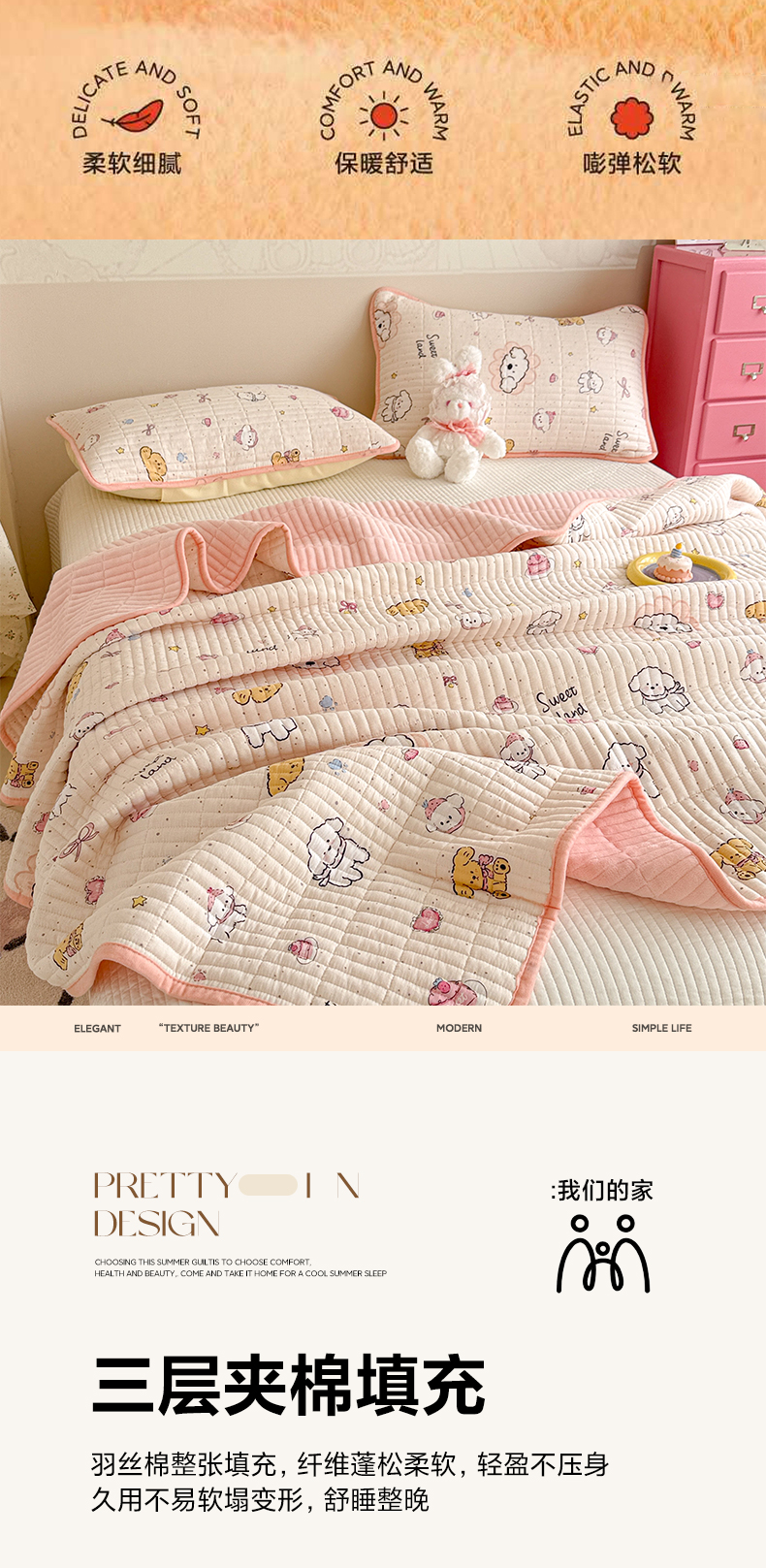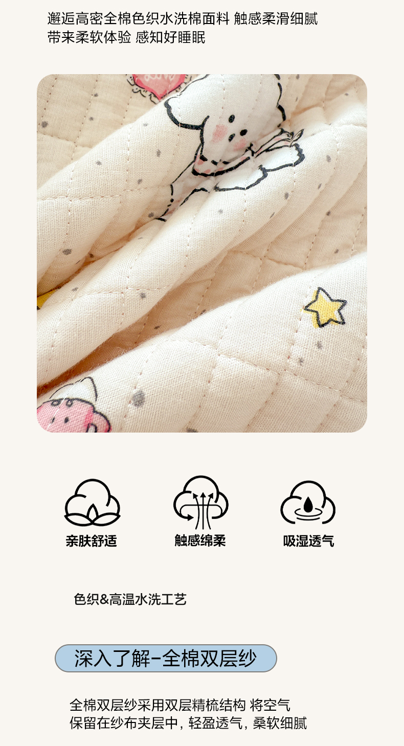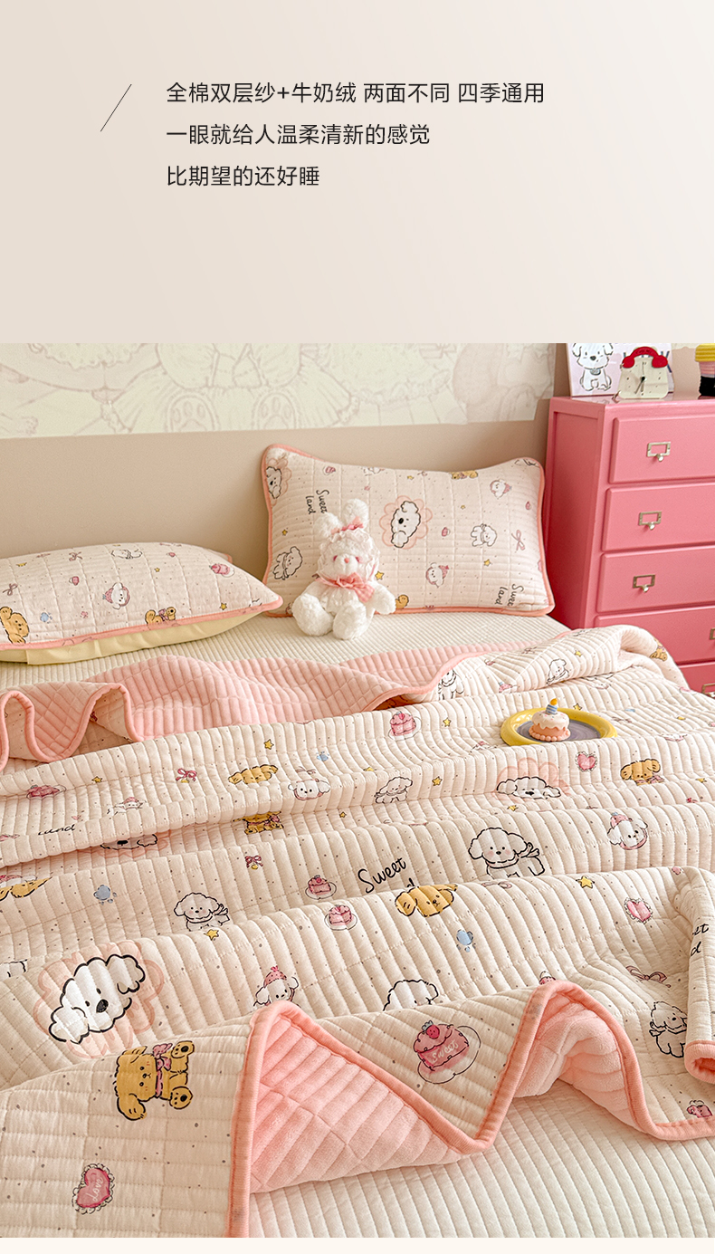 妮可 2025新款跑量款全棉双层纱绒四季可用床盖系列 甜心乐园