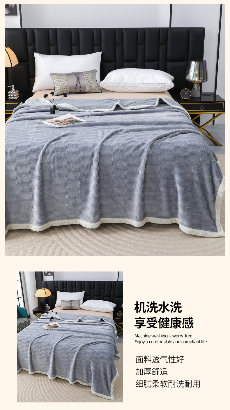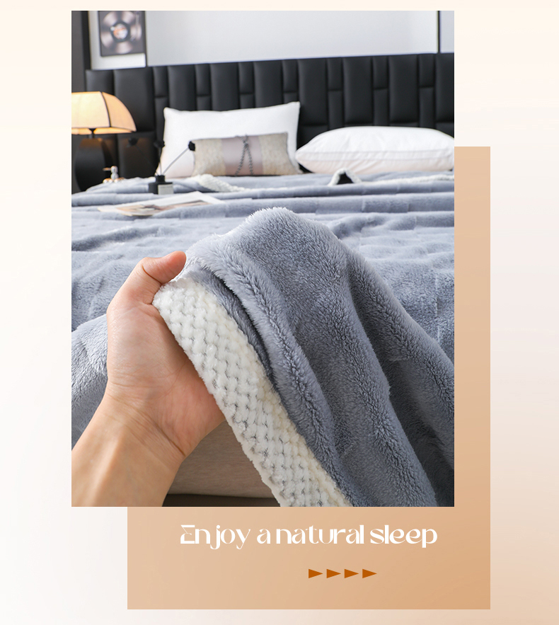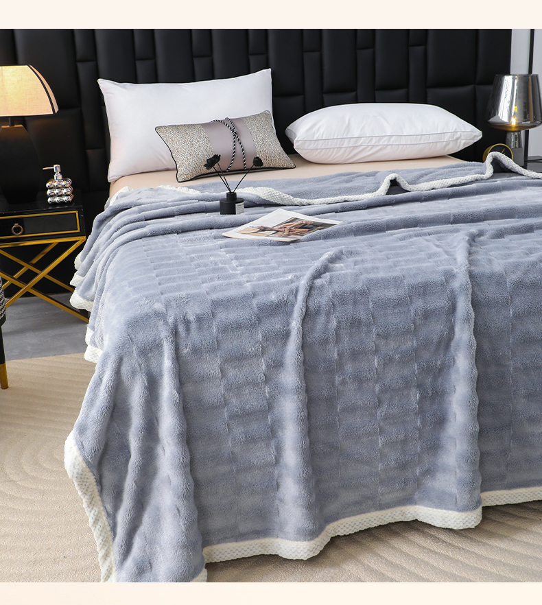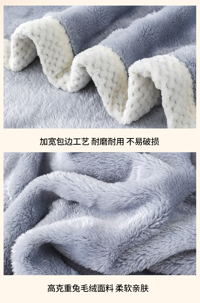 (总)梦洋家纺 2025新款双面兔毛绒毛毯,豆沙色,灰色,桔色,蓝色,紫色