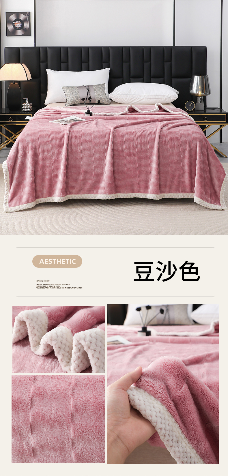 梦洋家纺 2025新款双面兔毛绒毛毯 豆沙色