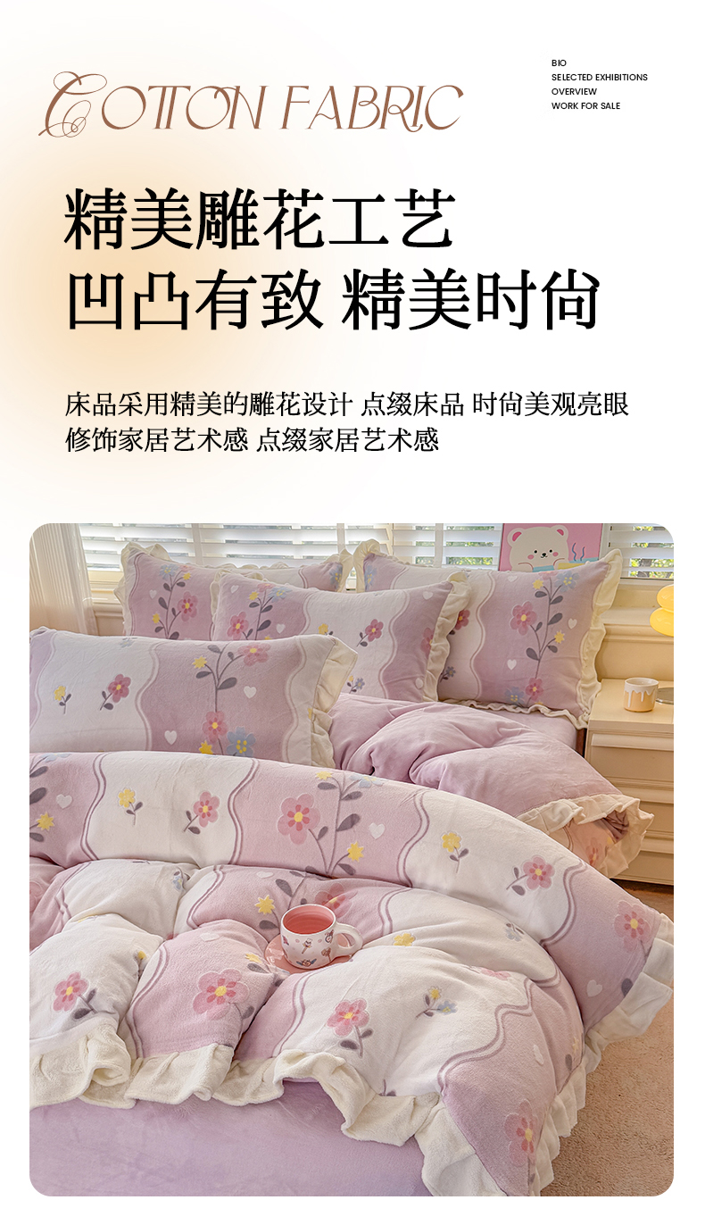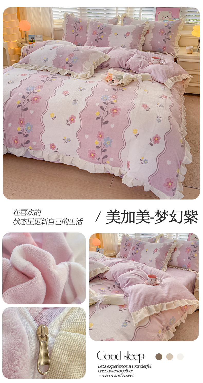 (总)爱家(原缔乐家纺) 2025新款牛奶雕花绒四件套-香香公主,香香公主-公主粉,香香公主-梦幻紫,香香公主-奶油黄
