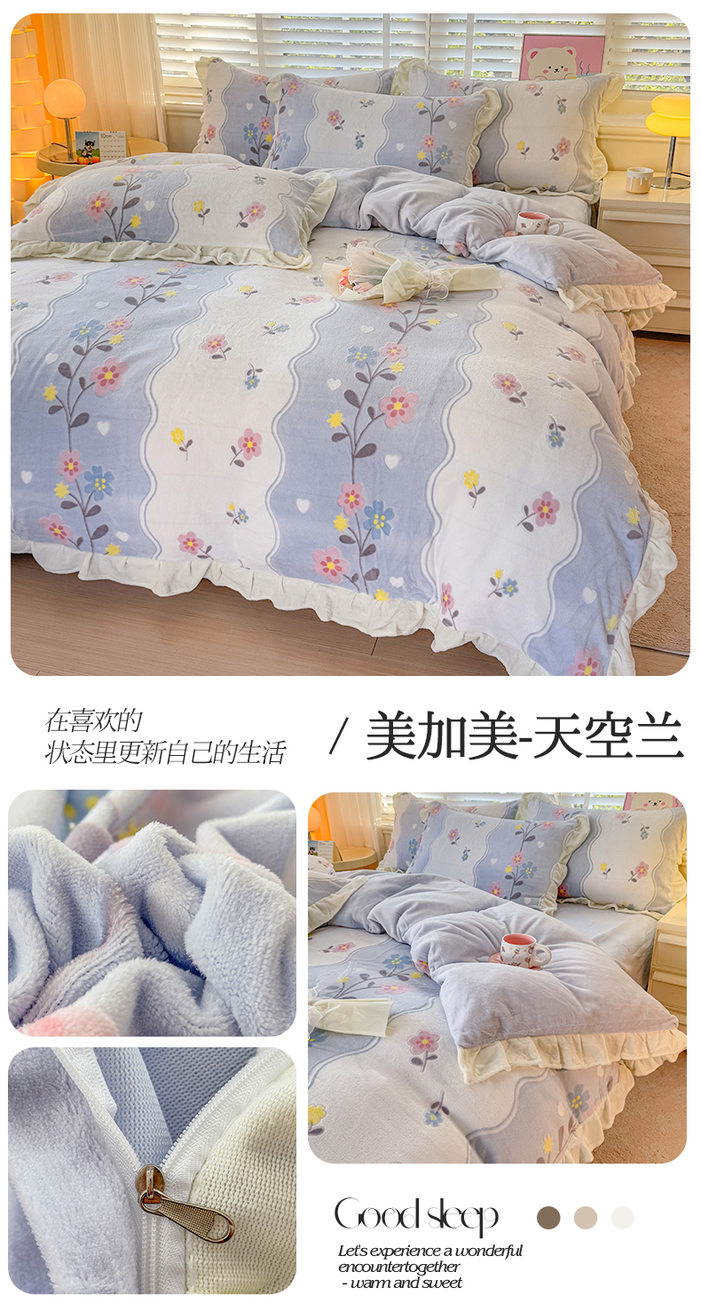 (总)爱家(原缔乐家纺) 2025新款牛奶雕花绒四件套-小雏菊,小雏菊-公主粉,小雏菊-奶昔白,小雏菊-天空兰