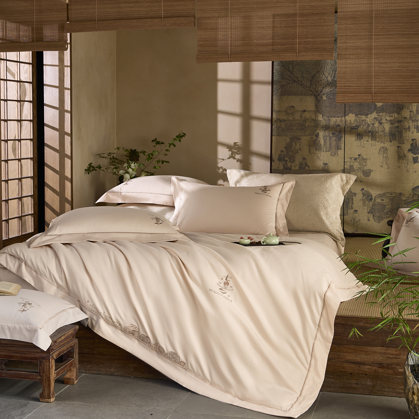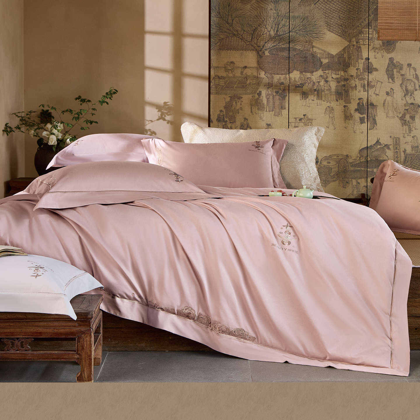 (总)玖玖爱家纺 2025秋冬新品植物甄丝3星系列奢选新疆阿瓦提长绒棉四件套,栖岚玛瑙绿,栖岚摩卡棕,栖岚绅士灰,栖岚香芋紫,栖岚樱花粉