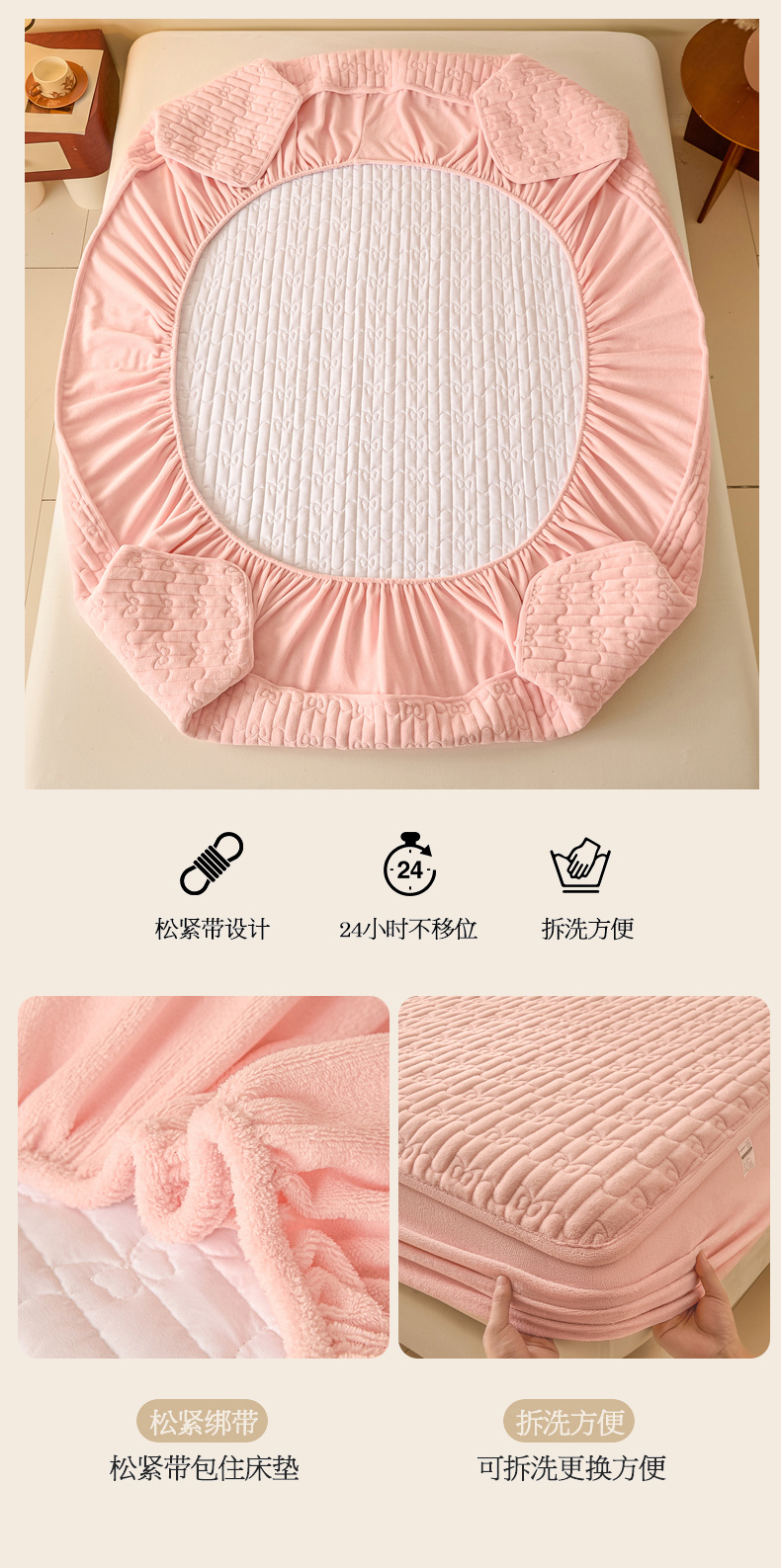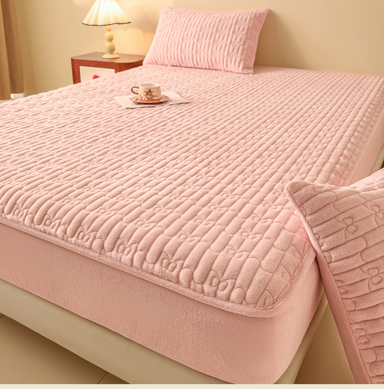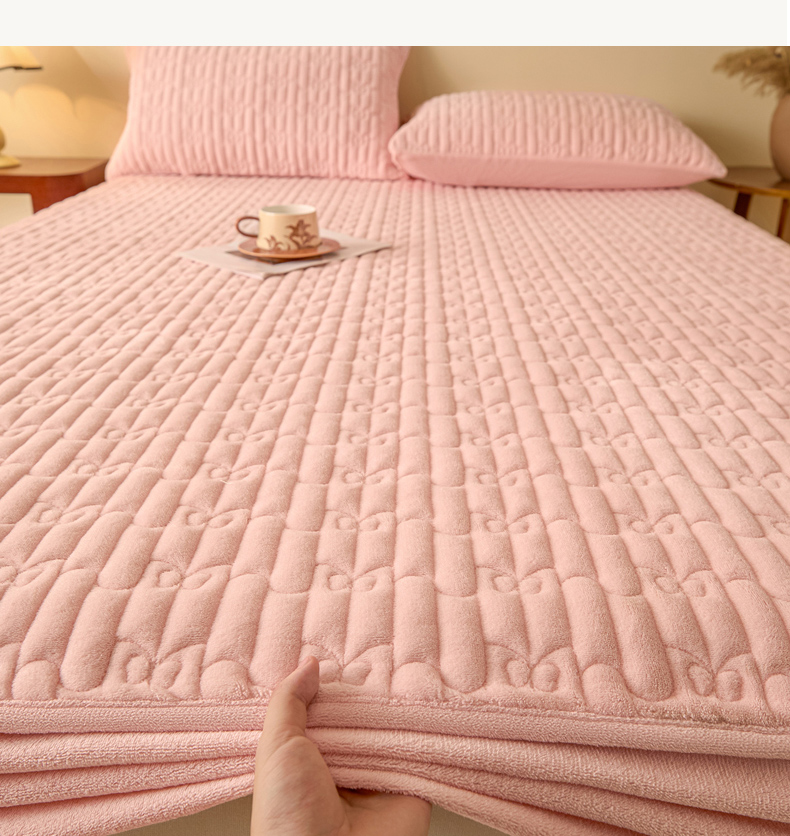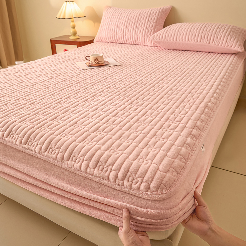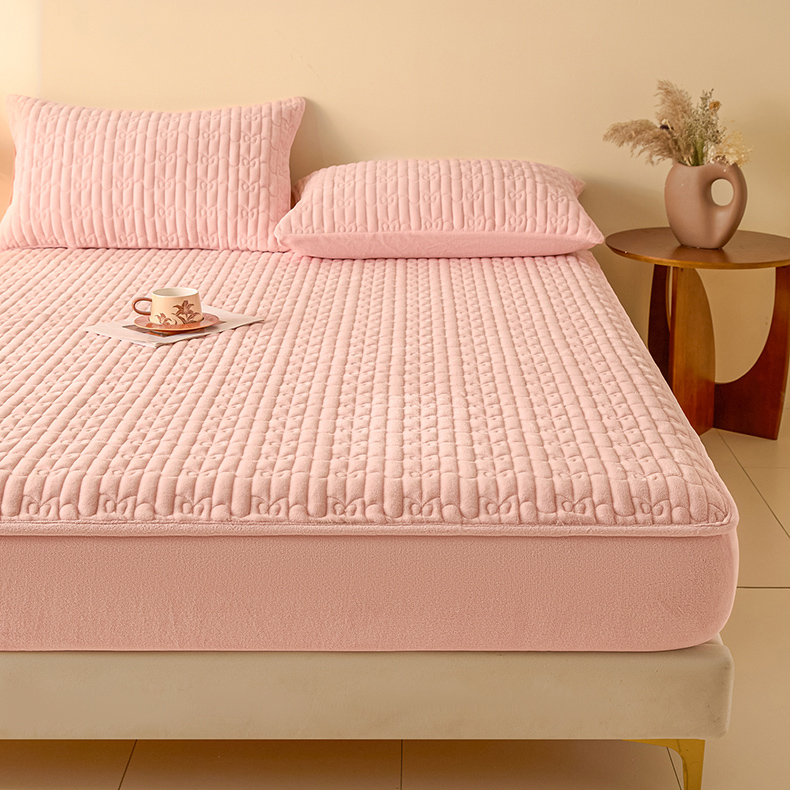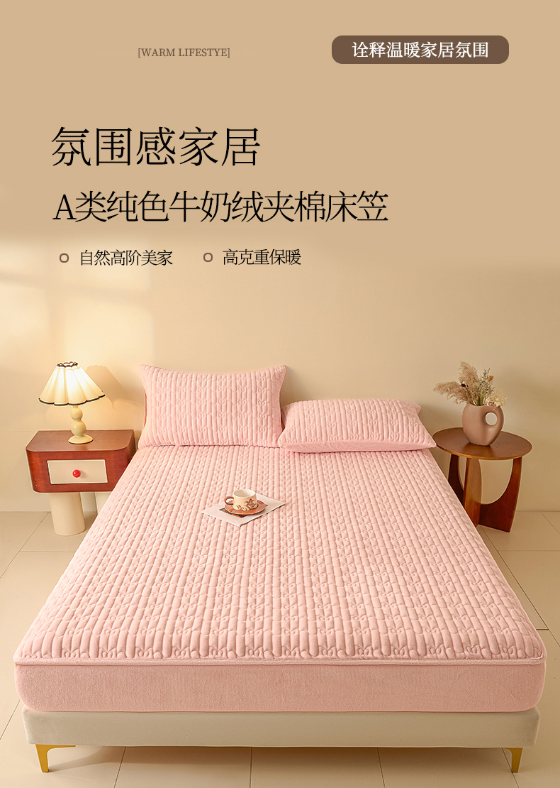 • 91家纺网 家纺一手货源 找家纺 Sweet dreams甜梦 2025新款A类纯色牛奶绒夹棉床笠 粉玉